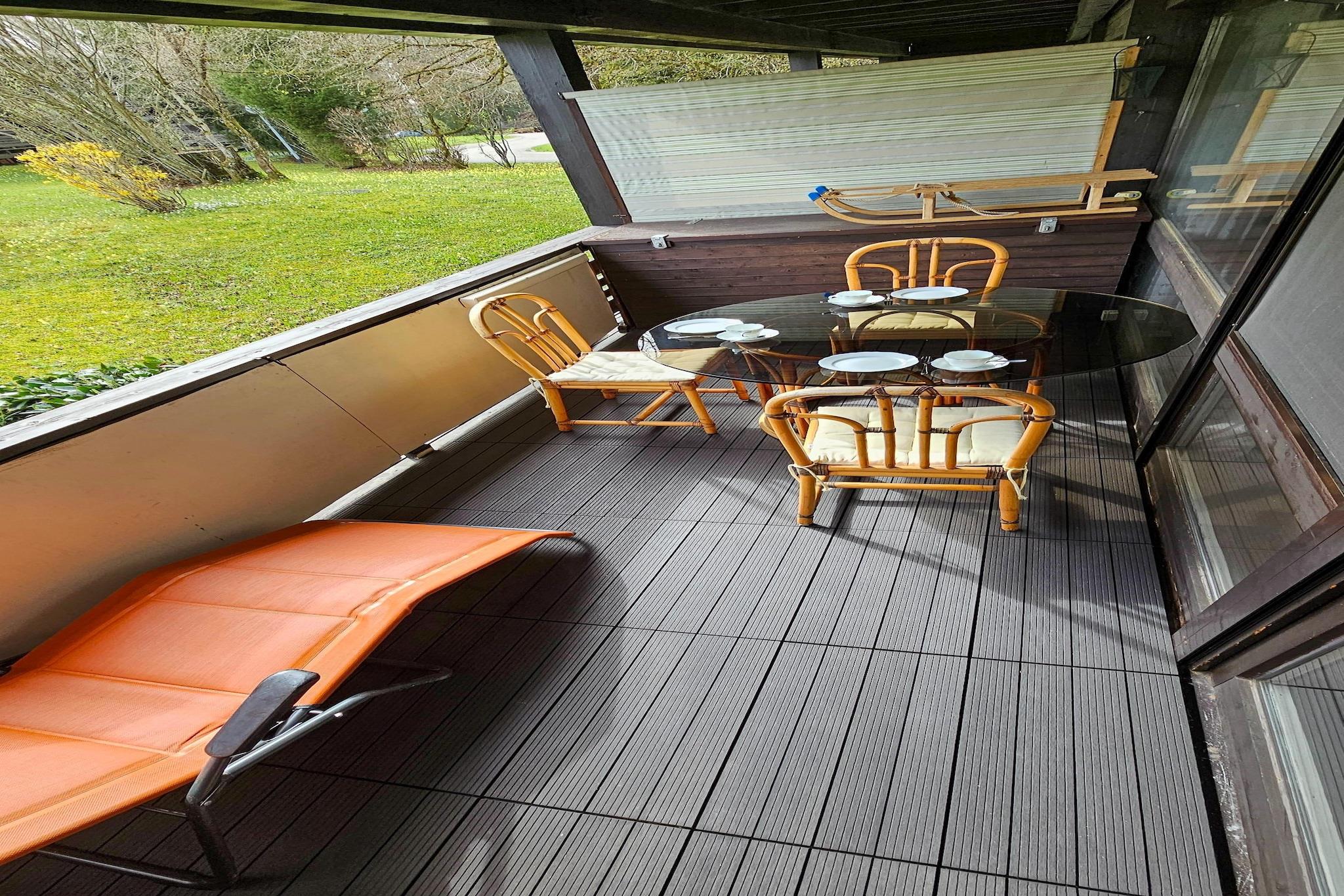 Stueetage: (Køkken(komfur, kaffemaskine, ovn, mikrobølgeovn, opvaskemaskine ), Stue/soveværelse(enkeltsovesofa(140 x 180 cm), dobbeltseng, Fjernsyn, spisebord, sofahjørne), badeværelse(bruser, håndvask, toilet, bidet), balkon) parkering