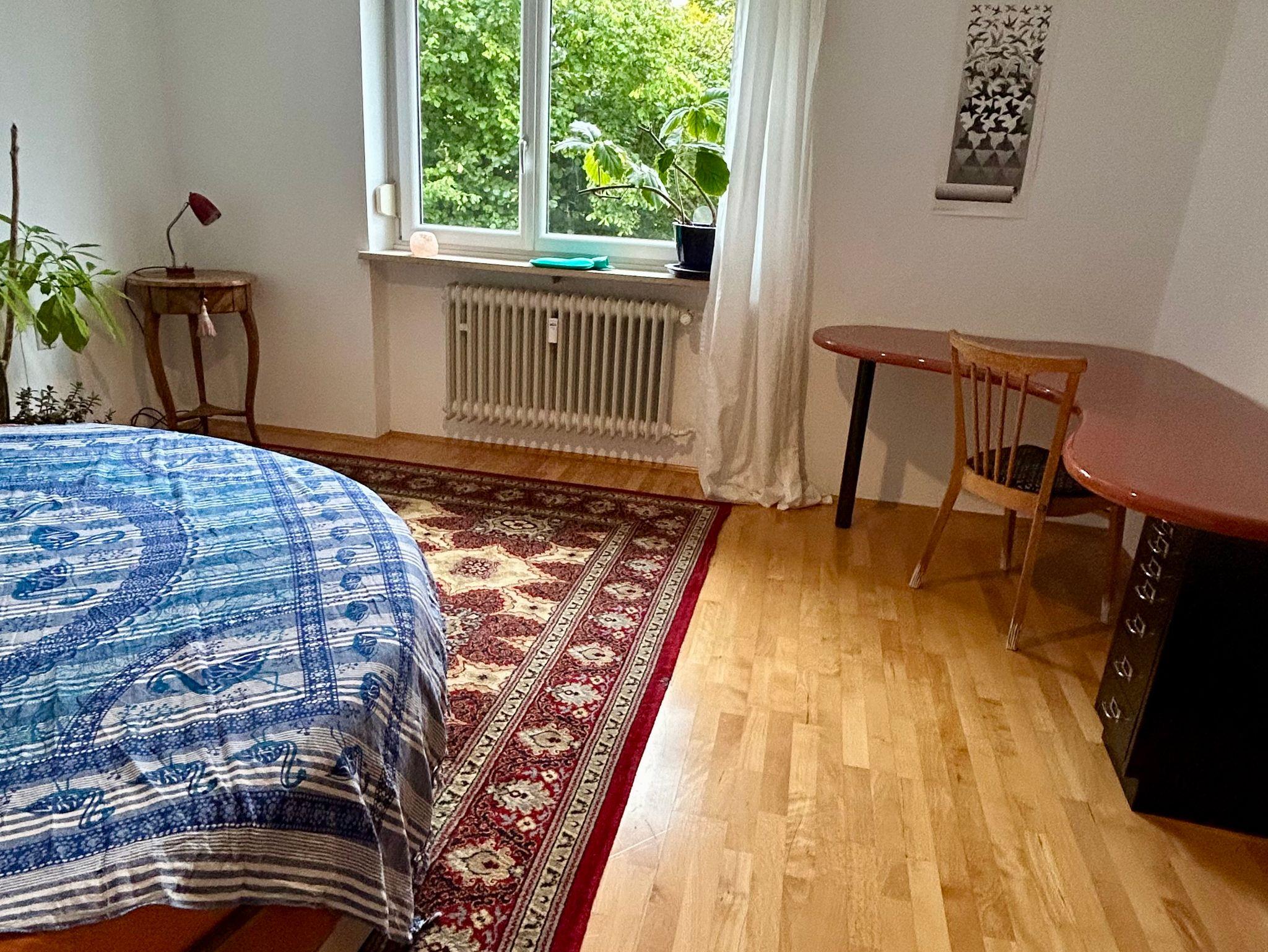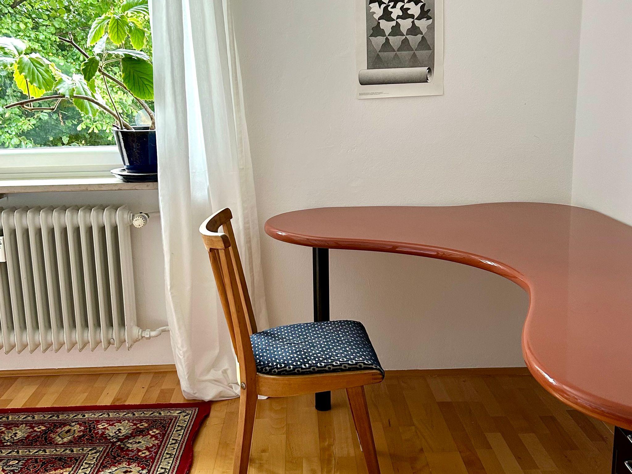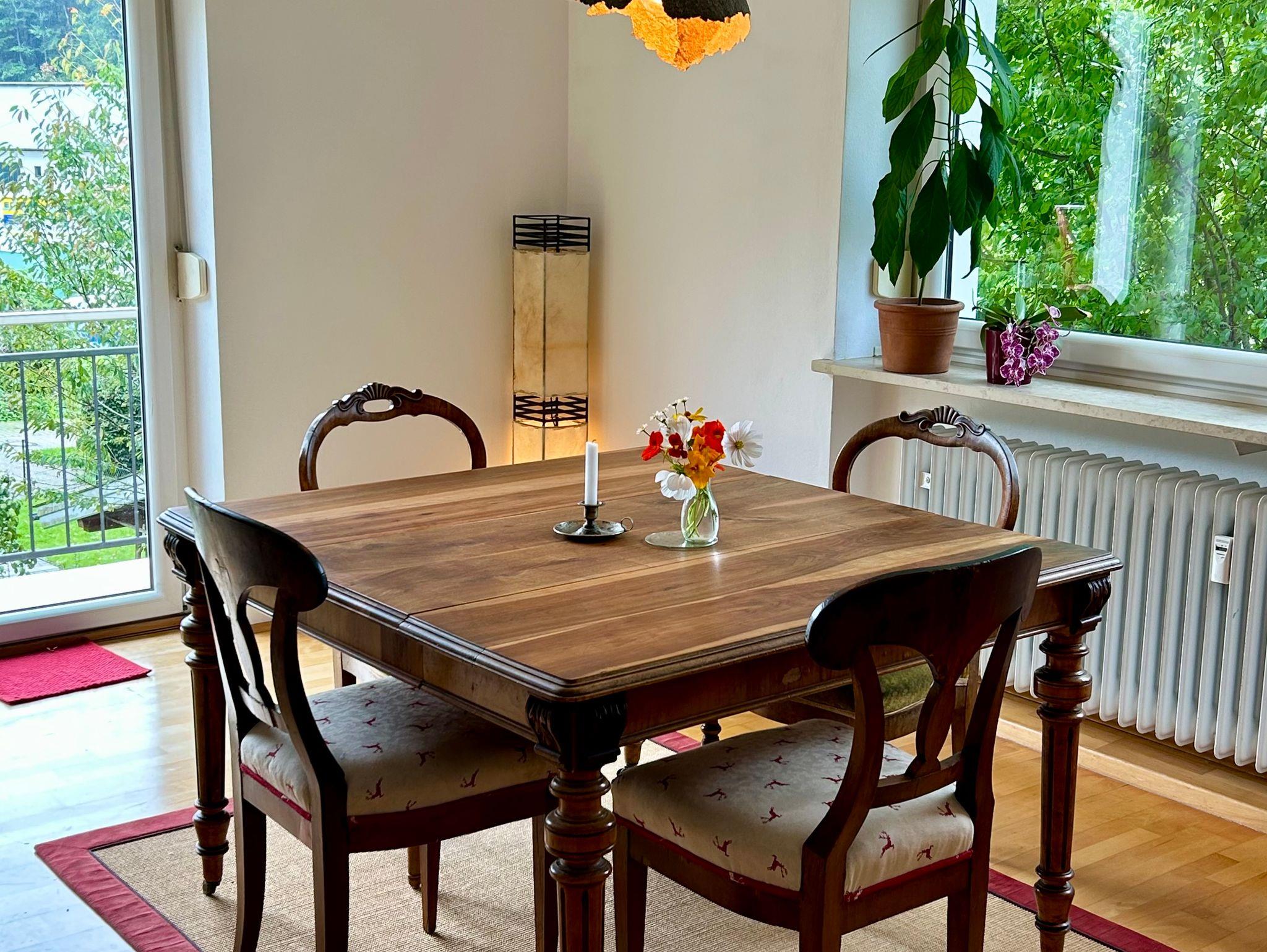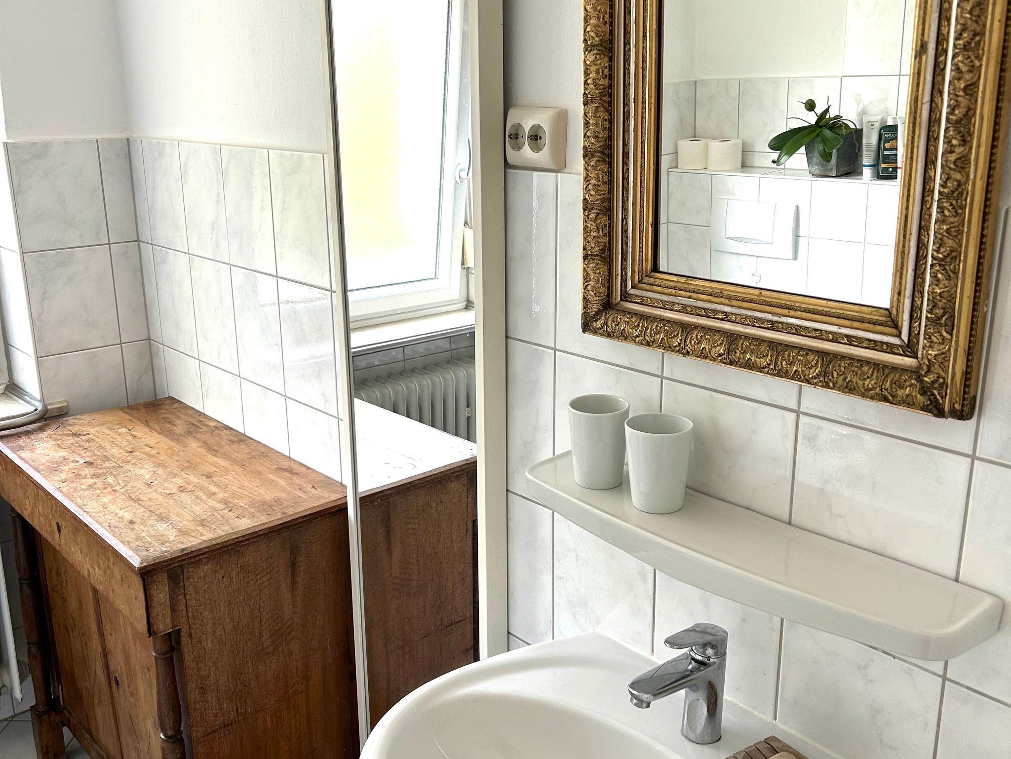 Das Möbeliar ist z.T. antik, einiges sehr individuell. Es ist geplant passende Bilder einer lokalen Künstlerin in der Wohnung als winwinProjekt für Gäste, Künstler, Vermieter auszustellen.
