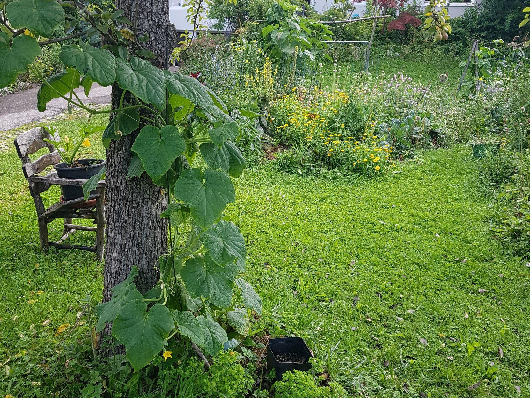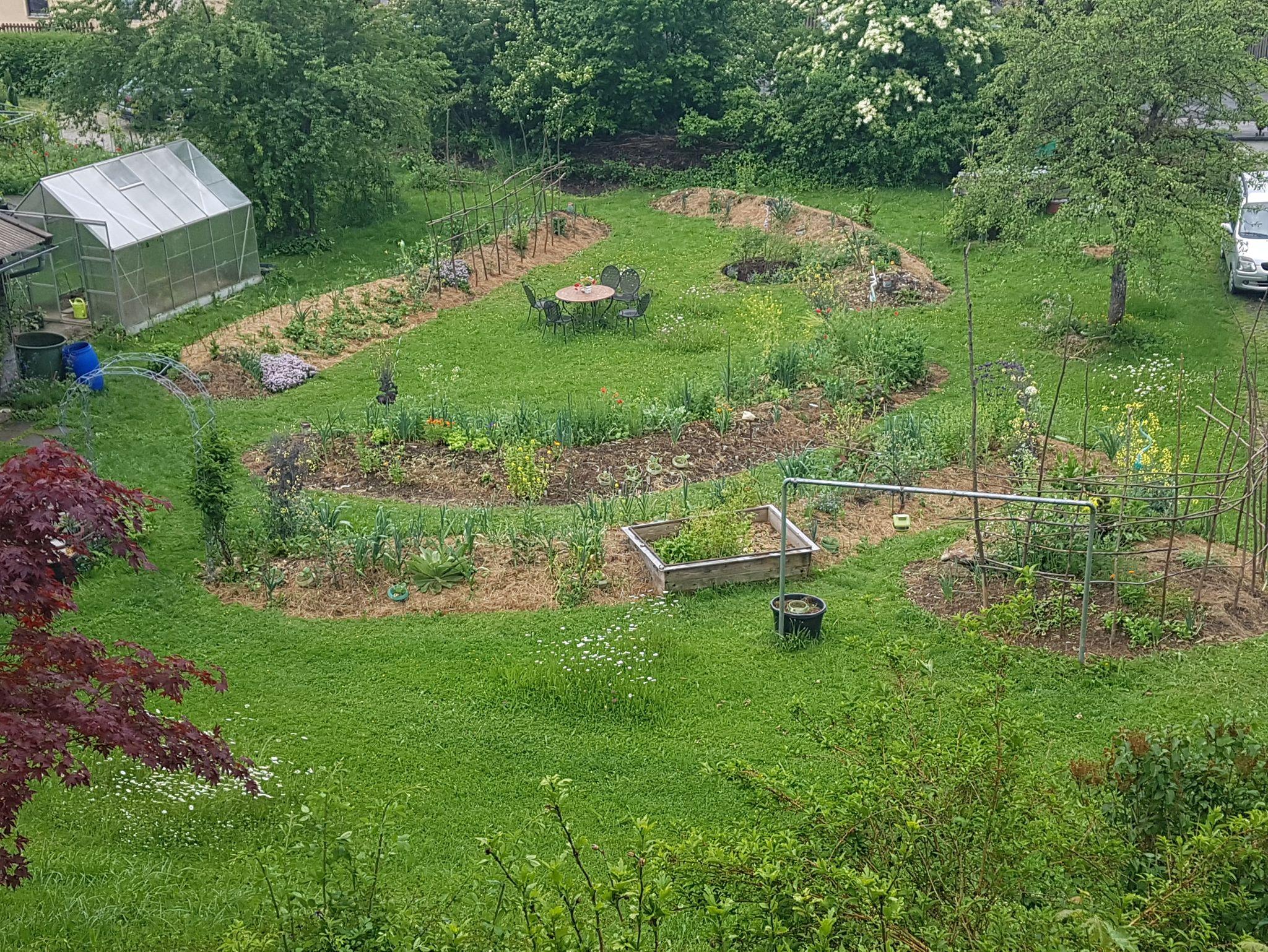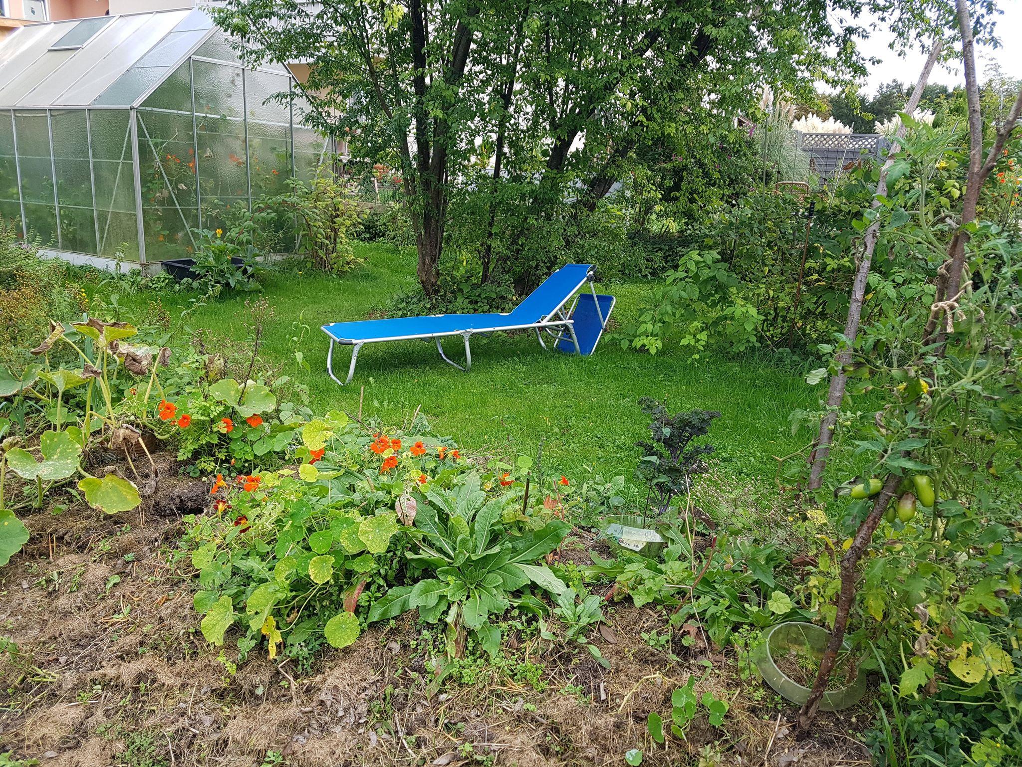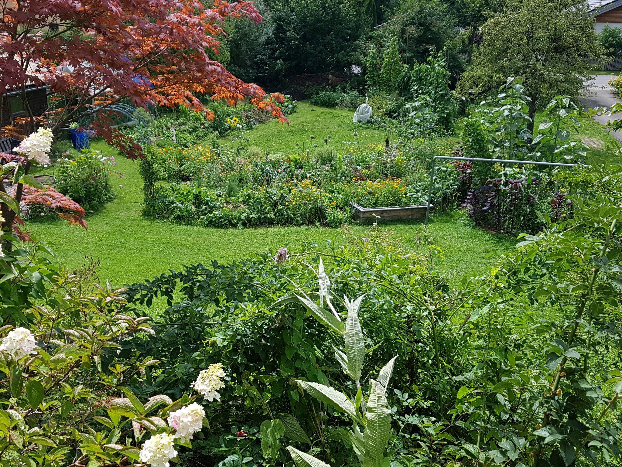 Der große Garten kann von Gästen gerne mitgenutzt werden. Er ist als Permakultur- Gemeinschaftsgarten angelegt. Bei Lust und Laune kann auch mitgegärtnert werden.