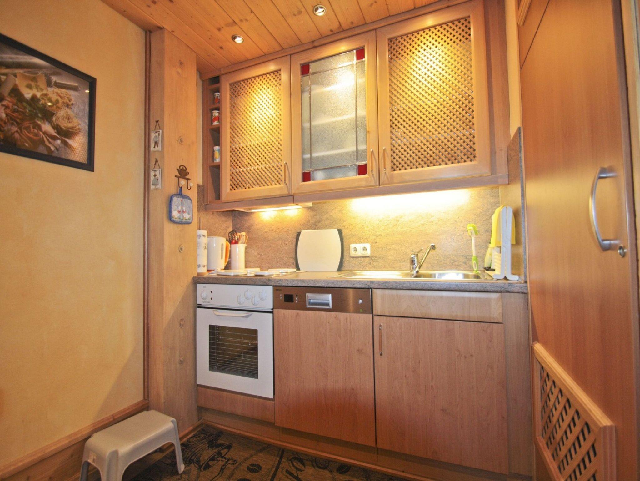 Im oberen Bereich der Wohnung befinden sich 2 Schlafzimmer, eines davon mit Doppelbett und eines mit 2 Einzelbetten; in diesem Schlafzimmer steht noch eine erhöhte Bettinsel für eine weitere Person. Vor jedem Schlafzimmer ist genügend Platz in den großzügigen Einbauschränken. Im Eingangsbereich befinden sich Diele, Garderobe und Badezimmer mit Dusche/WC. In der unteren Ebene befindet sich der geräumige Wohn-/Essbereich; hier kann man relaxen, Musik hören und fernsehen. Von hier aus gelangt man auch zum großzügigen Südbalkon mit einem beleuchteten Deckenventilator. Die offene Küche im Wohn-/Essbereich ist zweckmäßig ausgestattet mit einem 4-Platten-E-Herd mit Backofen, Geschirrspüler, Mikrowelle, 2 Kaffeemaschinen (Pad- und Filtermaschine), Eierkocher, Toaster, Wasserkocher und ausreichend Geschirr, Besteck und Gläser.Aufgrund der Maisonette-Lage ist die Wohnung für Kinder unter 4 Jahren nicht geeignet.