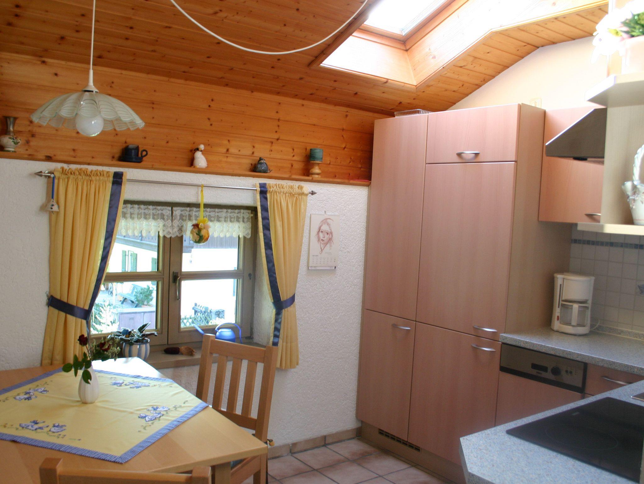 Einbauküche extra. Ausgestattet mit Kaffeemaschine, Toaster, Herd mit Ceranfeld und 4 Kochplatten sowie Backofen, Geschirrspülmaschine, Wasserkocher, Brotschneidemaschine, Kühlschrank, Radio, Sitzecke.