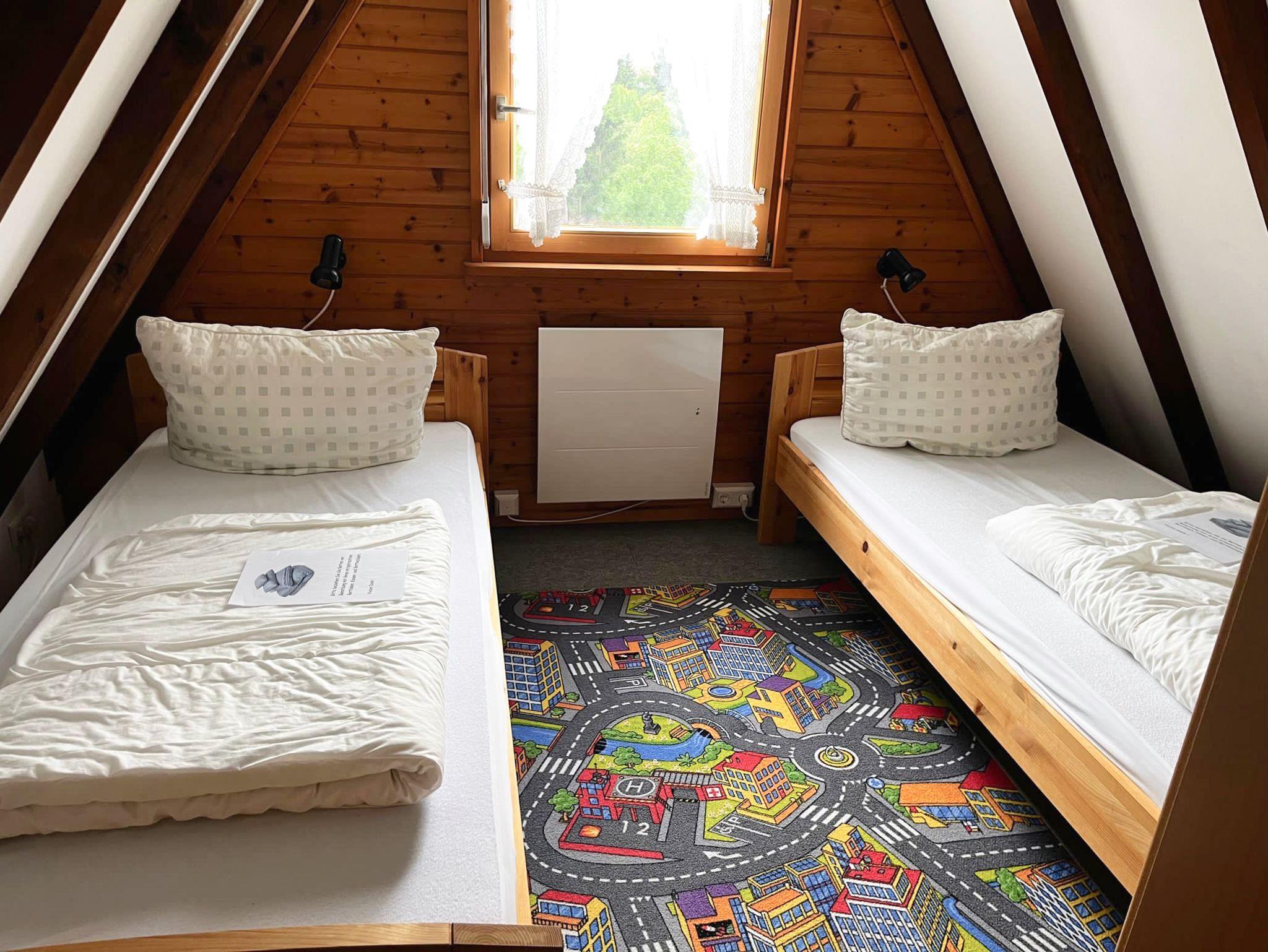 Im Dachgeschoss befinden sich zwei Schlafzimmer mit je zwei Betten.