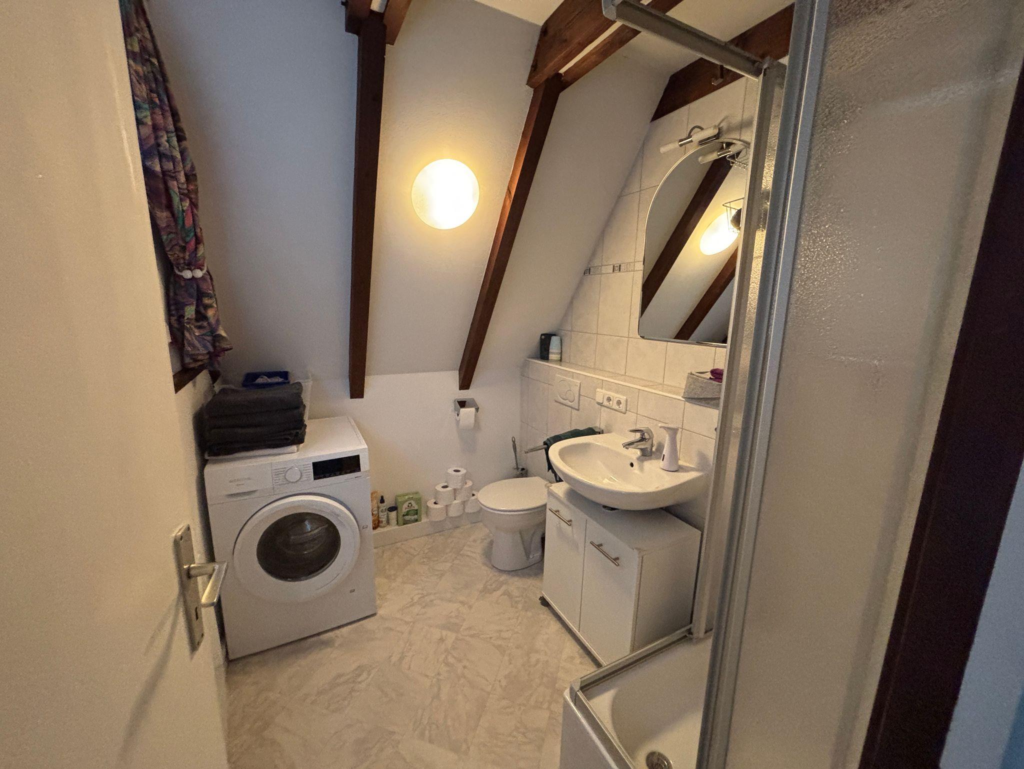 Flur mit Garderobe, sowie ein Schlafzimmer mit Doppelbett und Einbauschrank. Bad mit Dusche und Wasch/Trockner.
