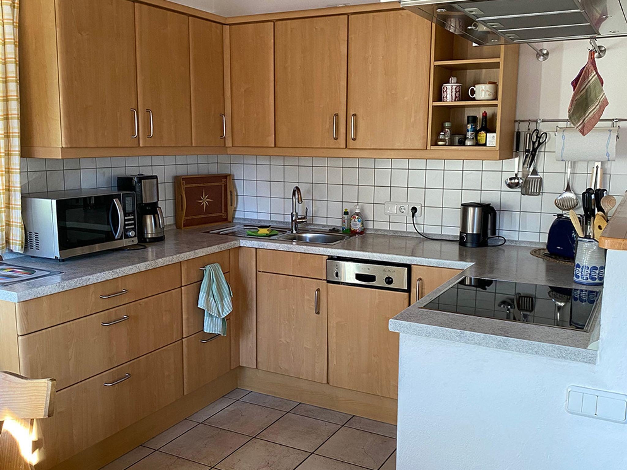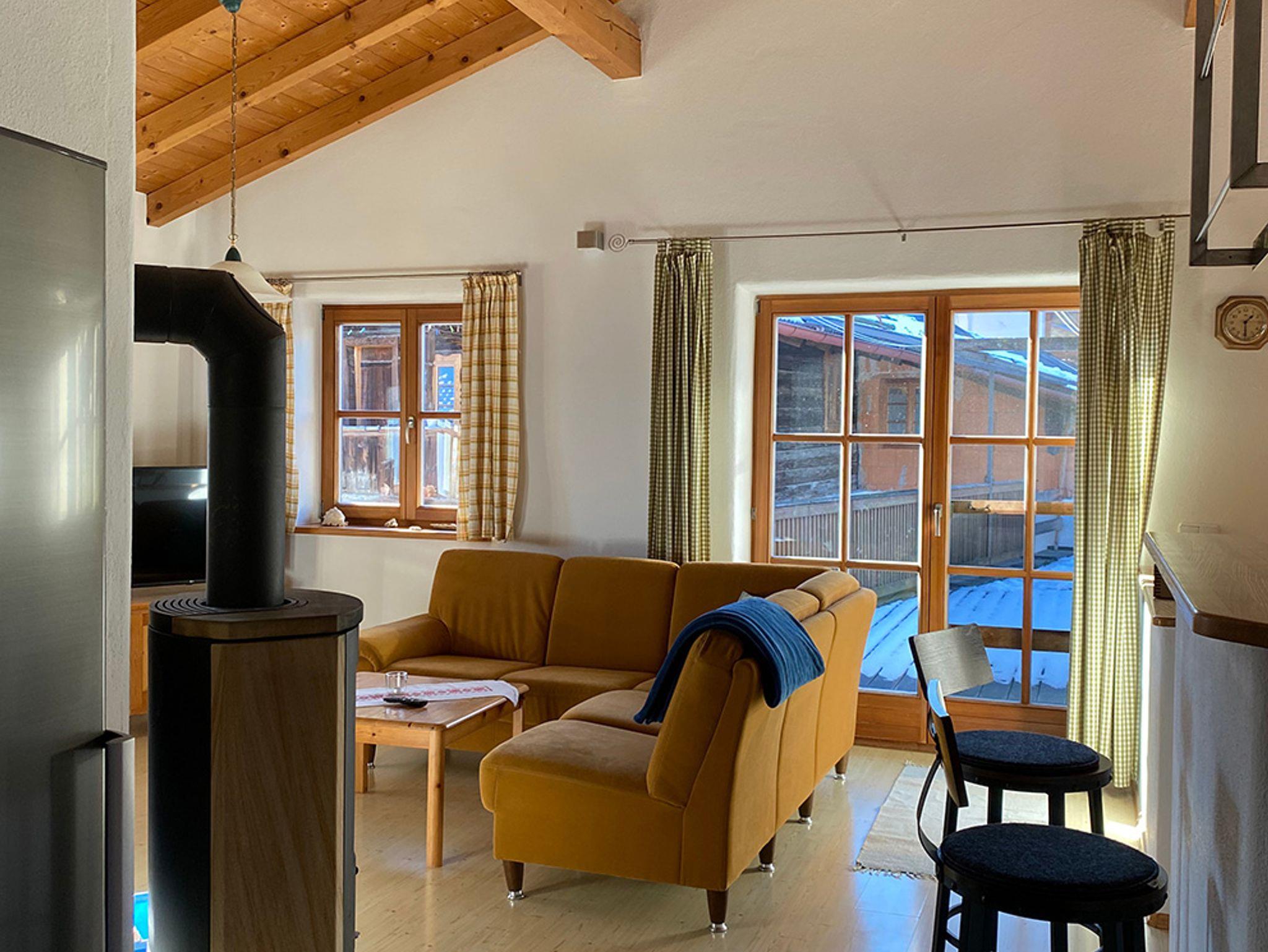 Die helle und freundliche Wohnung hat 75 qm, aufgeteilt in 2 Schlafzimmer, einen großen Koch-, Ess- und Wohnbereich und ein großzügiges Badezimmer mit Dusche und Badewanne. Sie befindet sich im 1. Obergeschoss mit sichtbarem Dachstuhl und verfügt über einen Ostbalkon und eine Westterrasse mit Gartenmöbeln. Das Schlafzimmer ist mit einem Doppelbett (180x200) und einem großen Schrank ausgestattet. Das zweite Schlafzimmer hat ein Etagenbett, ein Einzelbett und einen Schrank. Der Wohnbereich verfügt über eine Couch mit Platz für bis zu 5 Personen, einen Fernseher und einen Kaminofen. Die Küche ist ausgestattet mit Filterkaffeemaschine, Wasserkocher, Toaster, Elektroherd mit Ceranfeld und Spülmaschine. Guter Ausgangspunkt für Wanderungen und Radtouren. Guter Ausgangspunkt für Winterwanderungen. Abstellraum für Ski und Schlitten und Fahrräder vorhanden.