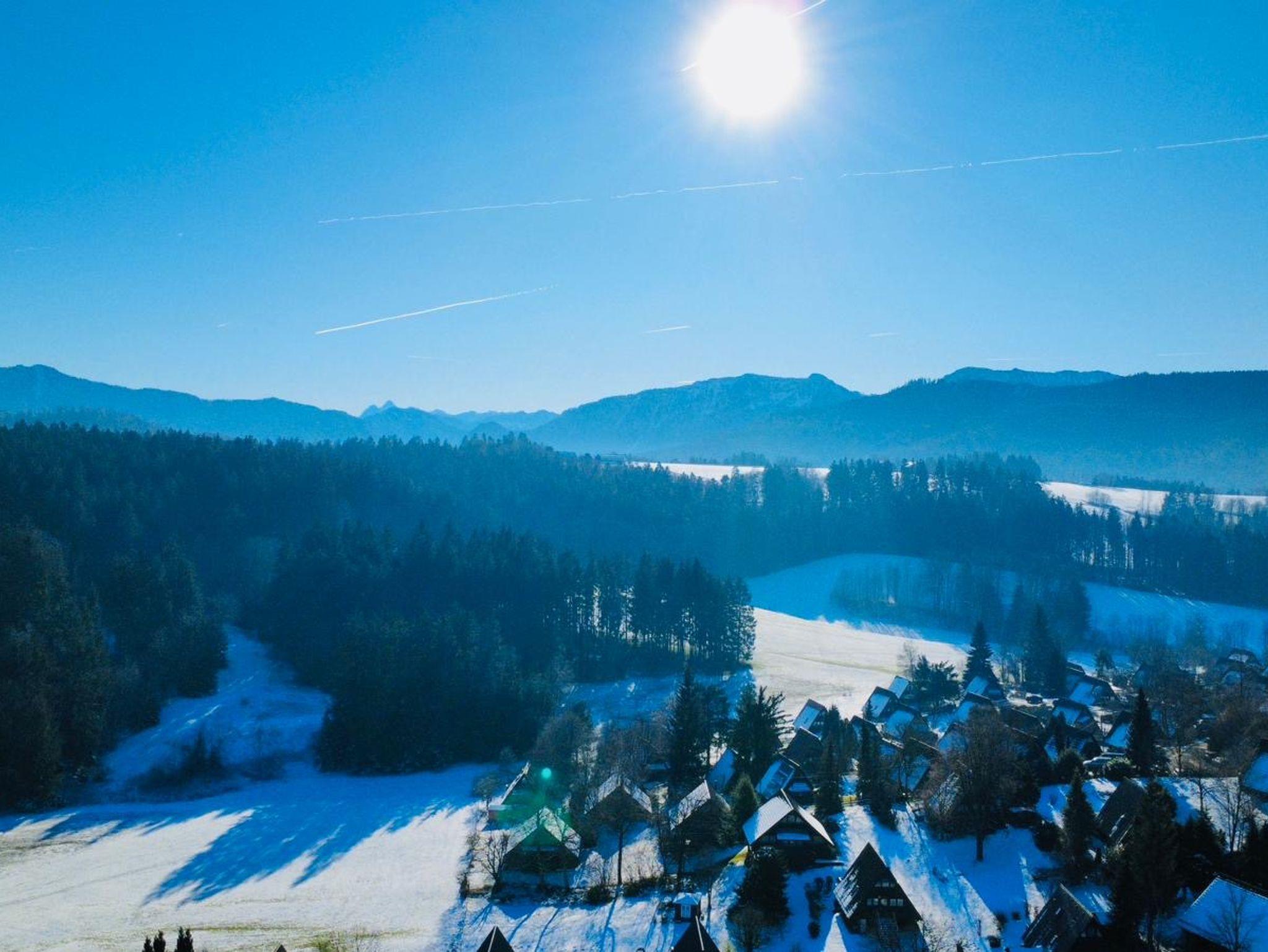 Idyllisch, ruhig und zugleich verkehrsgünstig gelegen, ist das Ferienhaus in einer guten Autostunde von München aus erreichbar. Gemeinsam mit vier weiteren, von einem ortsansässigen Architekten geplanten Häusern bildet es ein für sich eigenständiges Ensemble am Rand des Feriendorfs Vorauf im Ortsteil Feichten. Das für sein Quellwasser oder das Mammutmuseum überregional bekannte Siegsdorf liegt ca. 10 Autominuten entfernt und kann auch gut in einer Wanderung zu Fuß oder mit dem Fahrrad erreicht werden. Es bietet Einkaufsmöglichkeiten und einen Bahnanschluss. Weitere 10 Autominuten entfernt befindet sich die Kreisstadt Traunstein mit zahlreichen Kultureinrichtungen und Restaurants. Das Zentrum von Salzburg ist in gut einer halben Stunde zu erreichen. Die Wintersportorte Ruhpolding, Inzell und Reit im Winkel sind ebenfalls im unmittelbaren Umkreis gelegen.