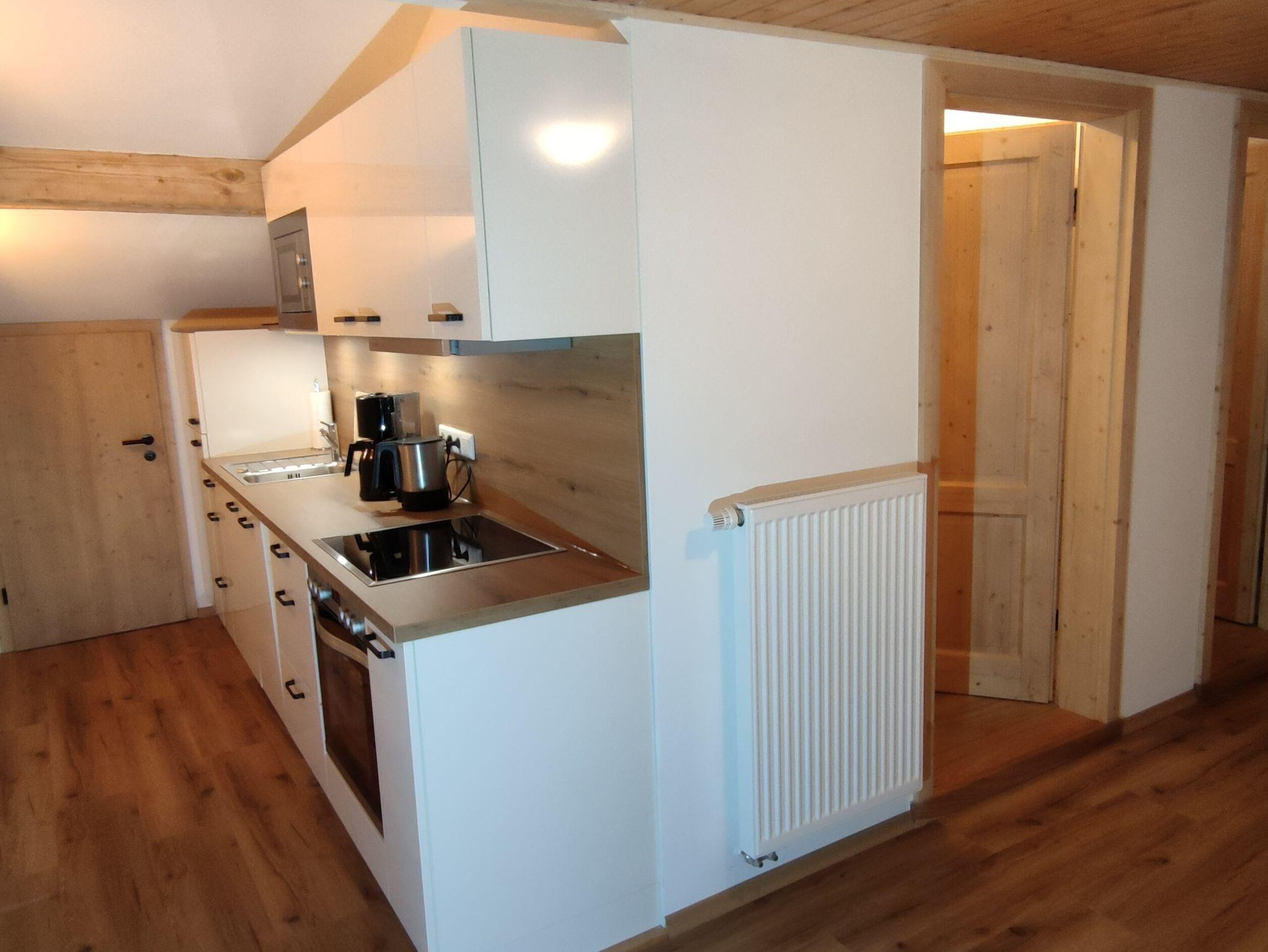 Die neu gestaltete Mansardenwohnung befindet sich im 2. Obergeschoß des Bauernhofes und hat eine Größe von ca. 60 qm. Sie verfügt über ein kombiniertes Wohn-/Esszimmer mit Schlafcouch und Flachbildfernseher, die Küchenzeile ist modern und komplett ausgestattet (inkl. Geschirrspüler und Mikrowelle). Desweiteren ist ein Schlafzimmer mit Doppelbett, eine Dusche und ein separates WC vorhanden. Vom Ost-Balkon genießen Sie die Morgensonne mit einem wunderbaren Blick auf die Chiemgauer ttwäsche und Handtücher werden gestellt. Auf Anfrage ist ein weiteres Schlafzimmer im 1. Obergeschoß für bis zu 2 weitere Personen ist zubuchbar. Haustiere sind nicht erlaubt.