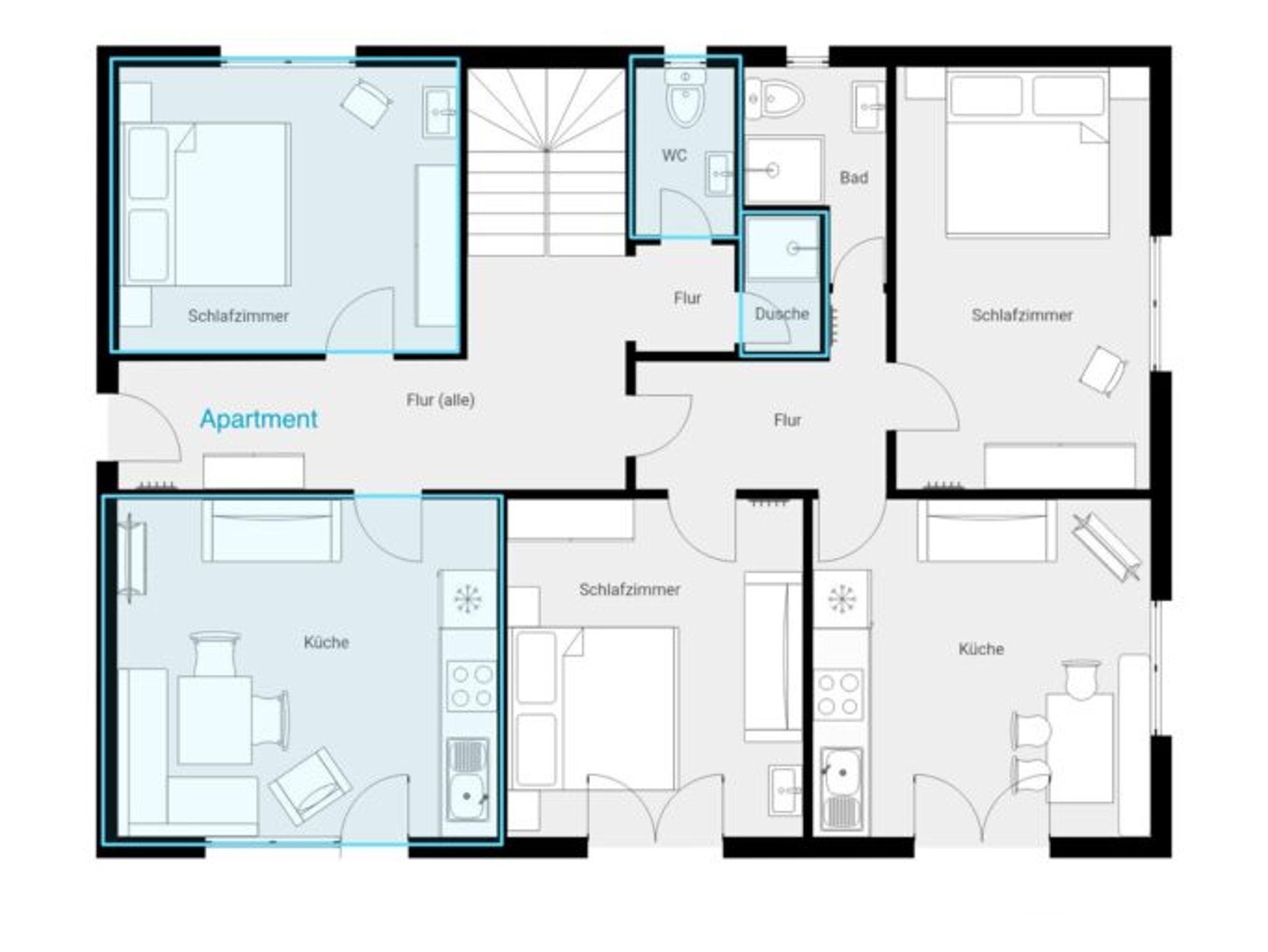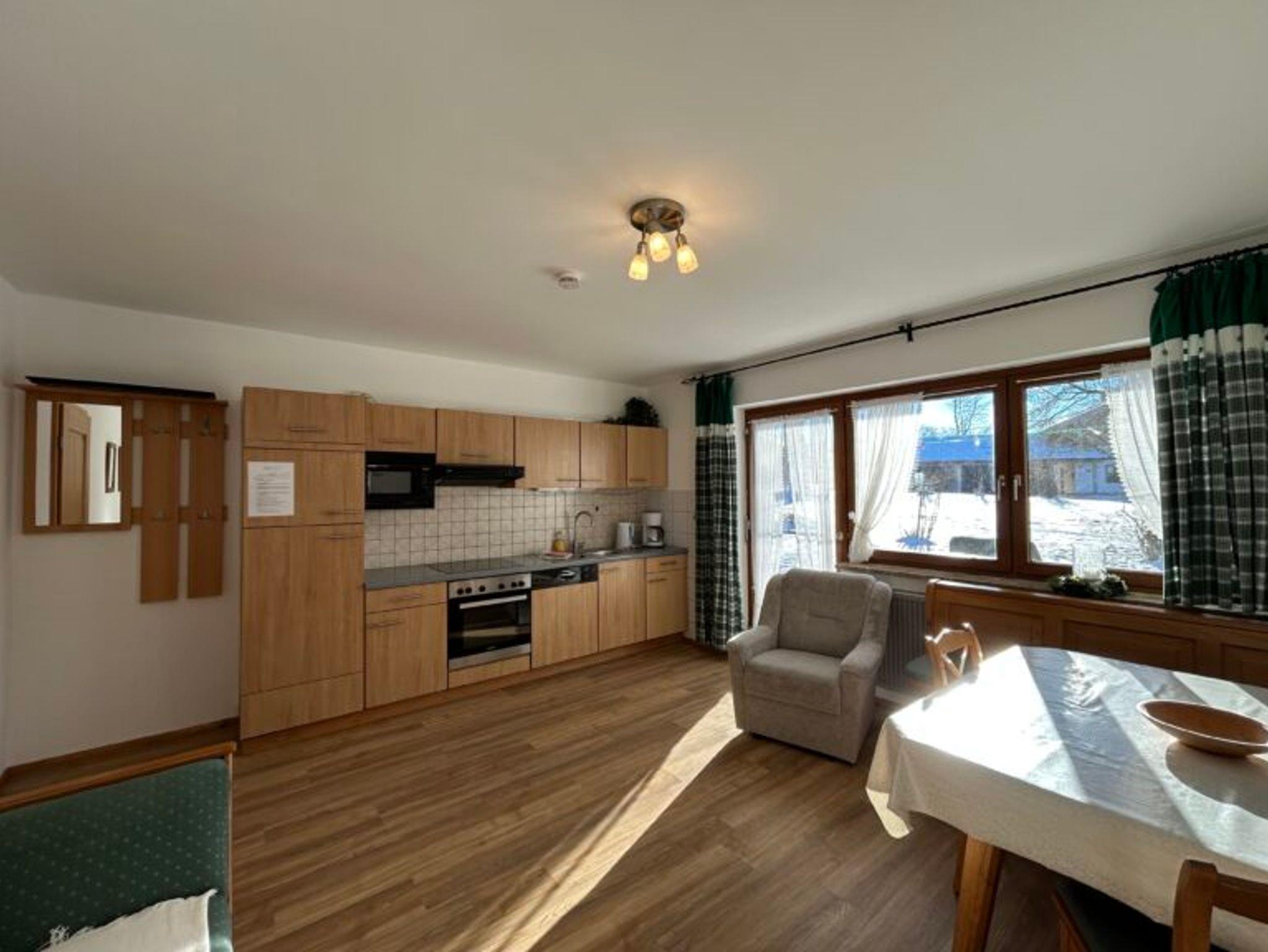 Das kleine, gemütliche Erdgeschoss-Appartement bietet eine Wohnküche und ein separates Schlafzimmer und ist für ein bis zwei Personen gut geeignet. Die Dusche und das WC ereicht man über den Gemeinschaftsflur, wird aber von Ihnen allein benutzt. Auf der Süd-Terrasse können Sie die Ruhe und die schöne Aussicht genießen.