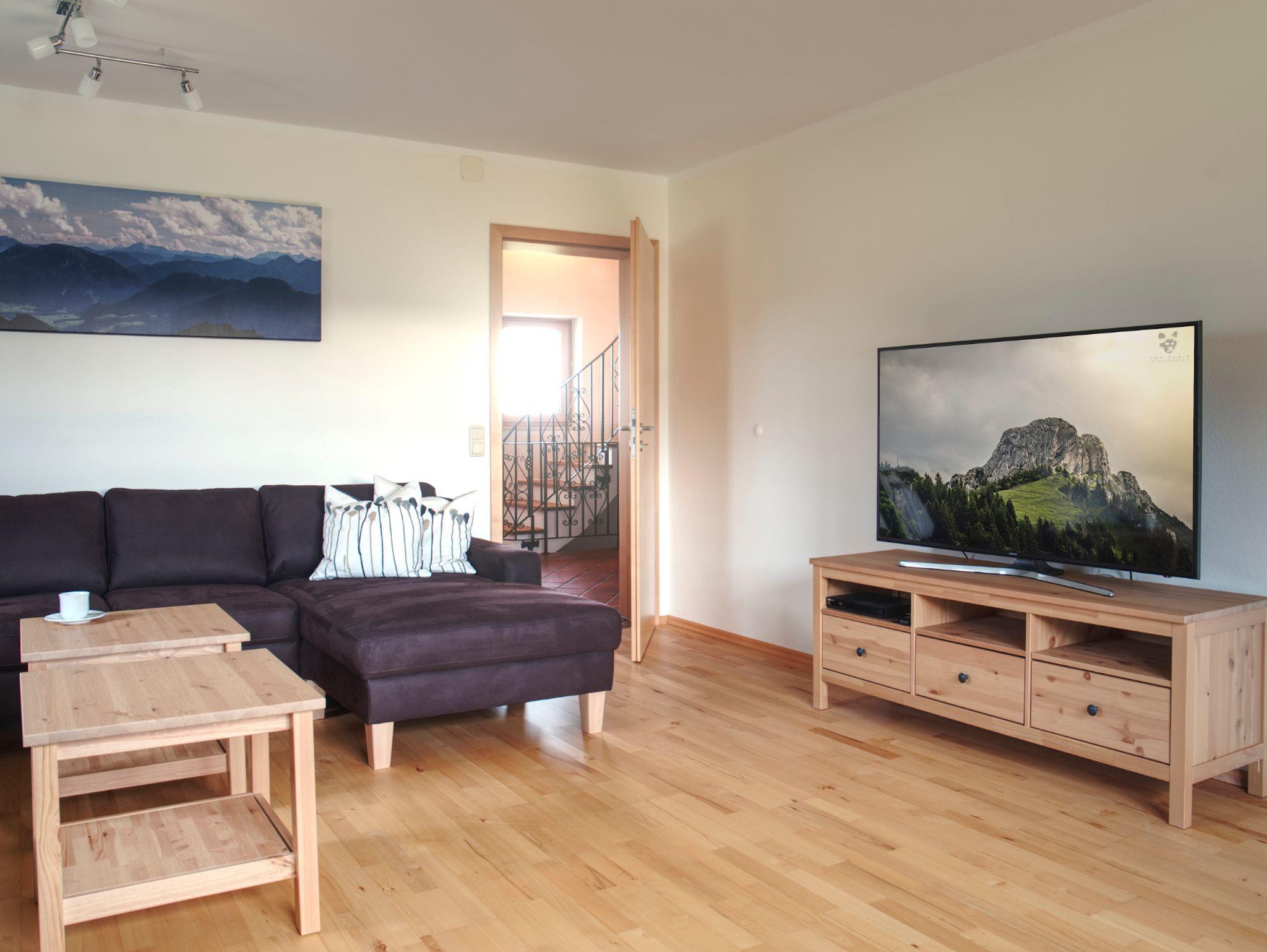 Großzügige Ferienwohnung für 4 Personen in Alleinlage, ca. 6 km vom Ortszentrum Siegsdorf entfernt, am Berg auf 750m Höhe bietet einen einzigartigen Blick auf die Chiemgauer Berge. Die Wohnung ist eine Ruhe-Oase mit Panoramablick über den Chiemgau und darüber hinaus.