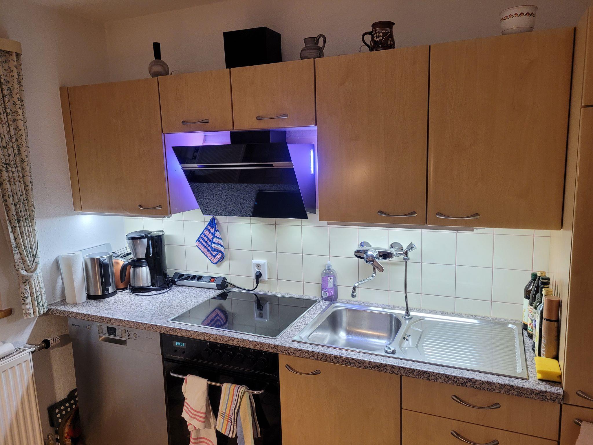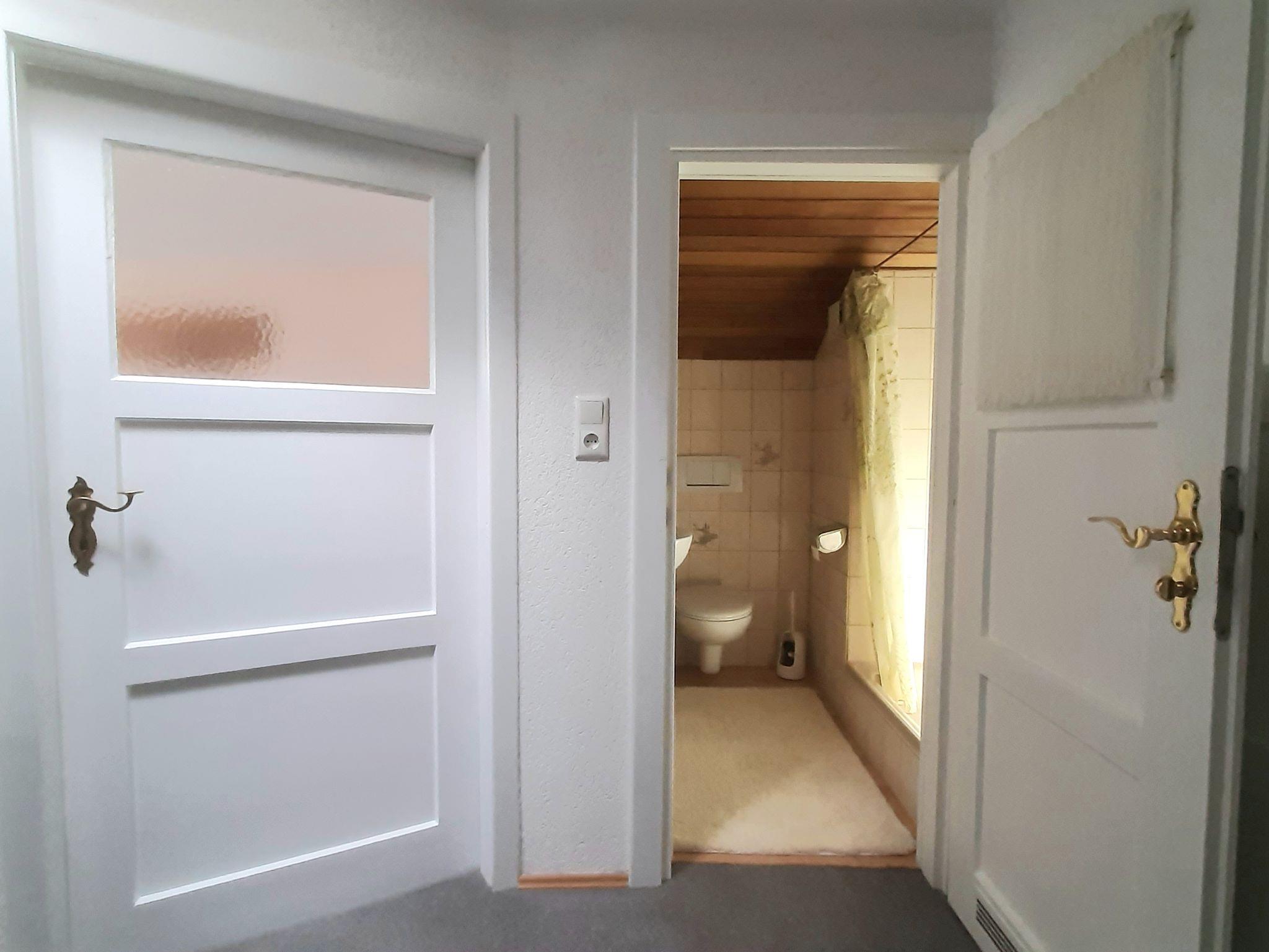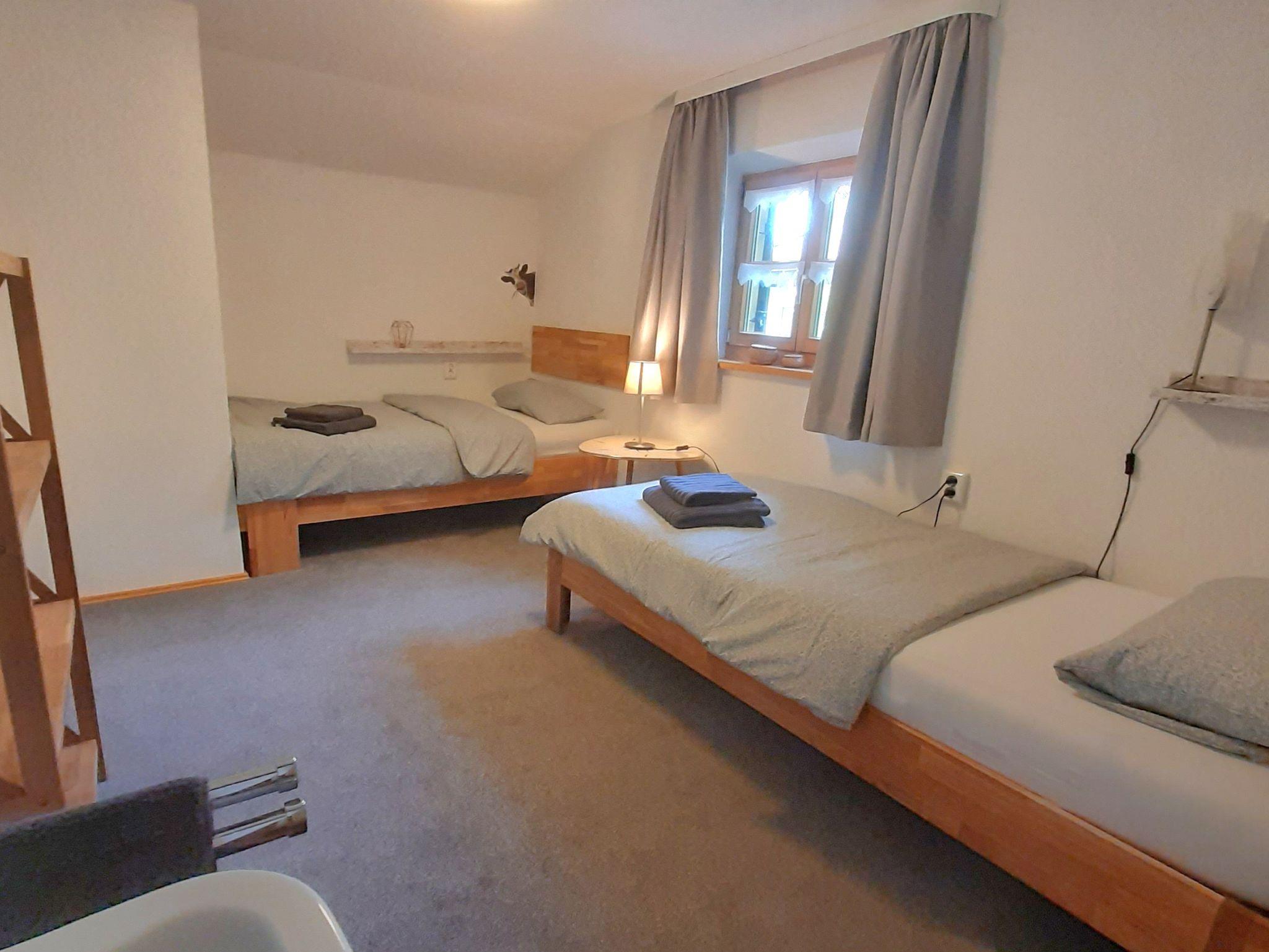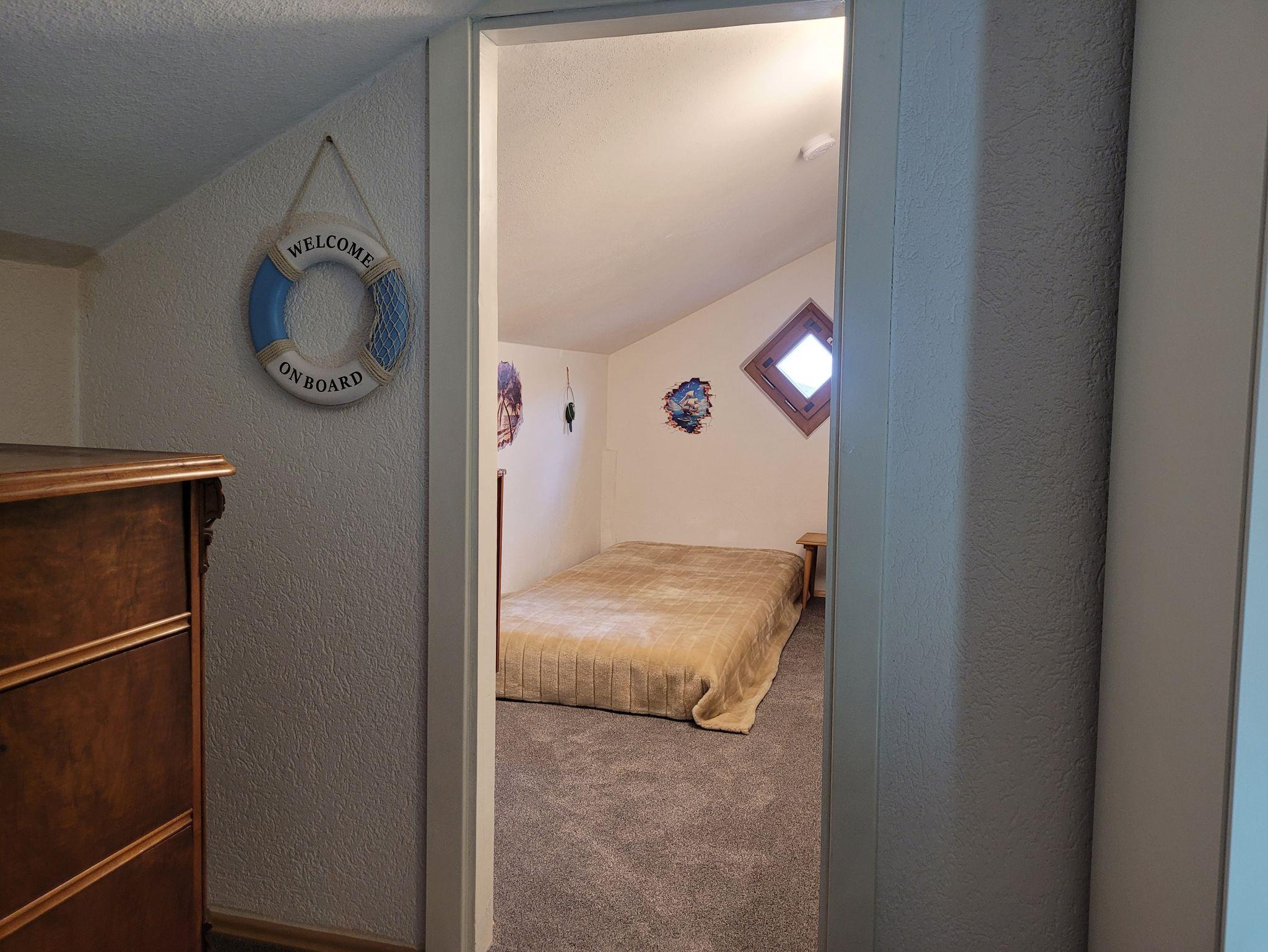 Im Erdgeschoss befinden sich die top ausgestattete Küche mit Essecke (inkl. Kinderhochstuhl), das Wohnzimmer mit Couch und TV, ein Schlafzimmer mit Einzelbett sowie Bad mit Waschmaschine und seperate Toilette. Das helle Balkonzimmer im Obergeschoß ist ausgestattet mit einem 1,80m-breiten Doppelbett, Waschbecken, Kofferablage und Garderobe sowie Sitzgelegenheit für 2 Gäste. Ein weiteres Zimmer mit zwei Einzelbetten (1m-breit) und Waschbecken befindet sich neben dem zweiten Bad (mit Dusche und Toilette). Ideal zum Spielen und Schlafen für ein Kind ist die Piratenhöhle mit 1,90m-langer Matratze (max. Raumhöhe 1,80m, Breite 1,35m). Für ein Kleinkind ist ein Reisebett vorhanden und kann in jedem Schlafzimmer aufgestellt werden. Kissen, Bettwäsche und Handtücher sind vorhanden. In jedem Zimmer befindet sich ein Heizkörper der Zentralheizung (ausgenommen Piratenzimmer).
