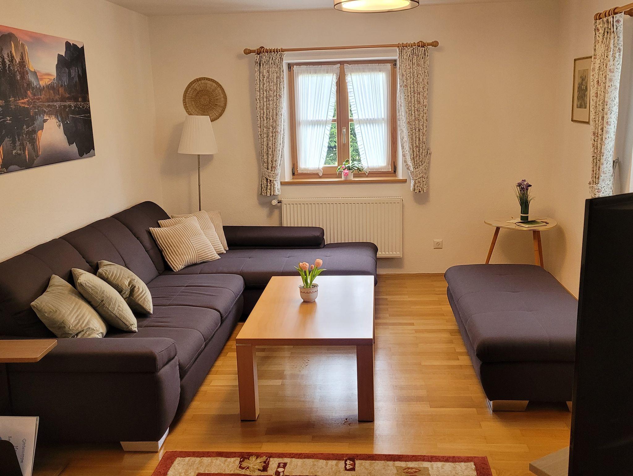 Zentral in Siegsdorf finden Sie unser ruhig gelegenes Ferienhaus mit großem Naturgarten in sonniger Lage. NEU: Die Chiemgaukarte ist kostenlos für unsere Feriengäste. Ihr frisch renoviertes Feriendomizil bietet Platz für 5 Erwachsene und 2 Kinder (darunter ein Kleinkind bis 3 Jahre). Ein überdachter Carport und Stellplätze direkt am Haus stehen kostenlos zur Verfügung. WLAN ist ebenfalls gebürenfrei im ganzen Haus nutzbar. Ein Südbalkon mit Sitzbank und Klapptisch lädt zum gemütlichen Aufenthalt ein. Im Aussenbereich in der Nähe der Haustür befinden sich ein geschützter Essplatz und an der Südseite eine Terrasse mit Bestuhlung und Markise. Siegsdorfs Bahnhof (Bayerische Regiobahn), Rathausplatz und diverse Geschäfte und Apotheken sind in wenigen Minuten zu Fuß erreichbar. Viele Ausflugsziele in der Nähe machen Ihren Urlaub zu einem Erlebnis. Im 8km entfernten Ruhpolding befinden sich unter anderem ein Klettergarten, Sommerrodelbahn, ein Golf- und Mingolfplatz und ein Freizeitpark. Die Hochfellnseilbahn bringt Sie vom nahegelegenen Bergen auf den Gipfel in fast 1.700m Höhe um. Mit dem PKW sind Sie in 10 Minuten am Chiemsee, der zum Baden, Wassersport und Entspannen einlädt. Für Tagesausflüge bieten sich die Königsseeregion, Salzburg (30 Min.) und Rosenheim an. Haustiere und Partys sind nicht gestattet, im Haus darf nicht geraucht werden.