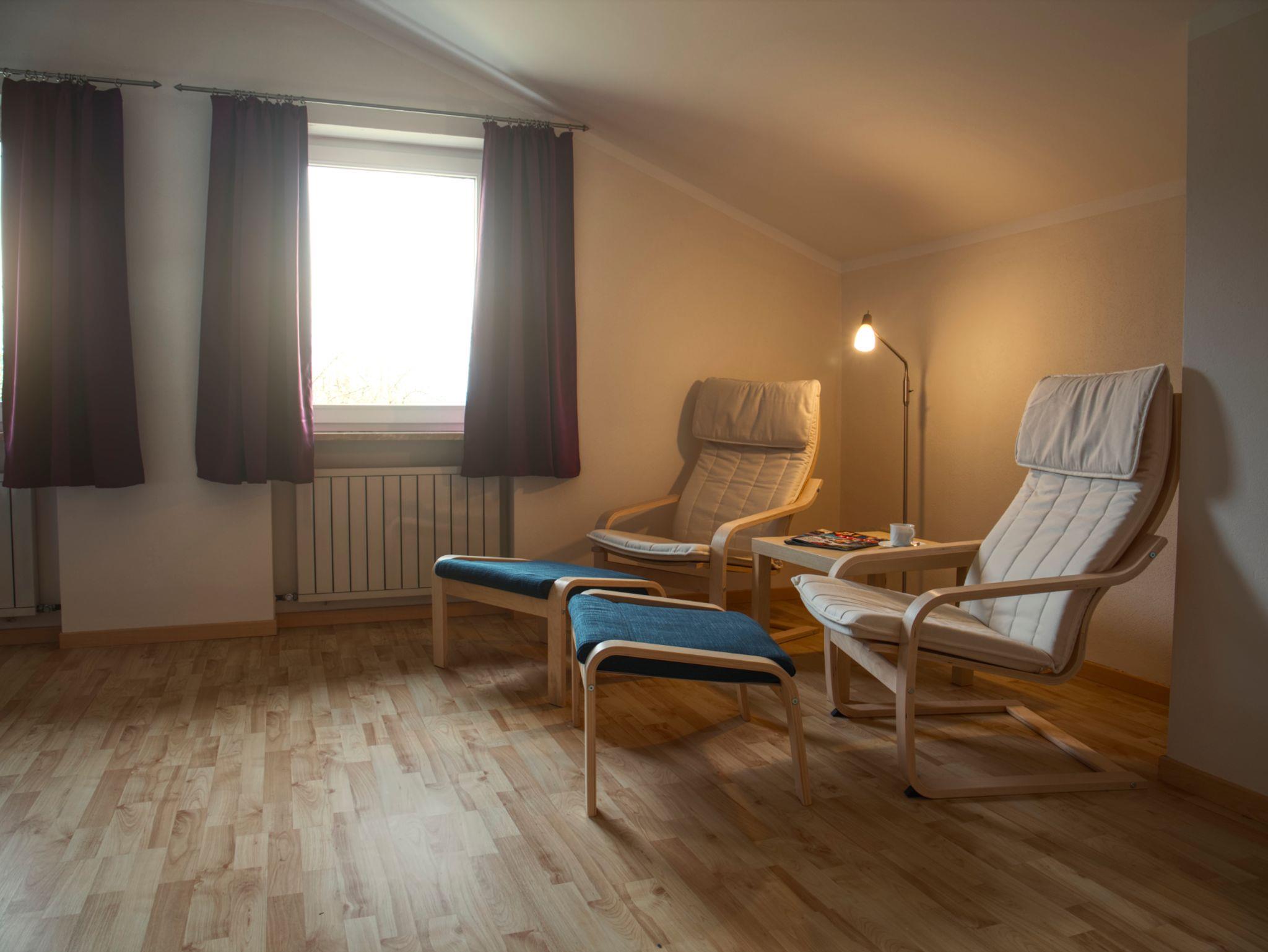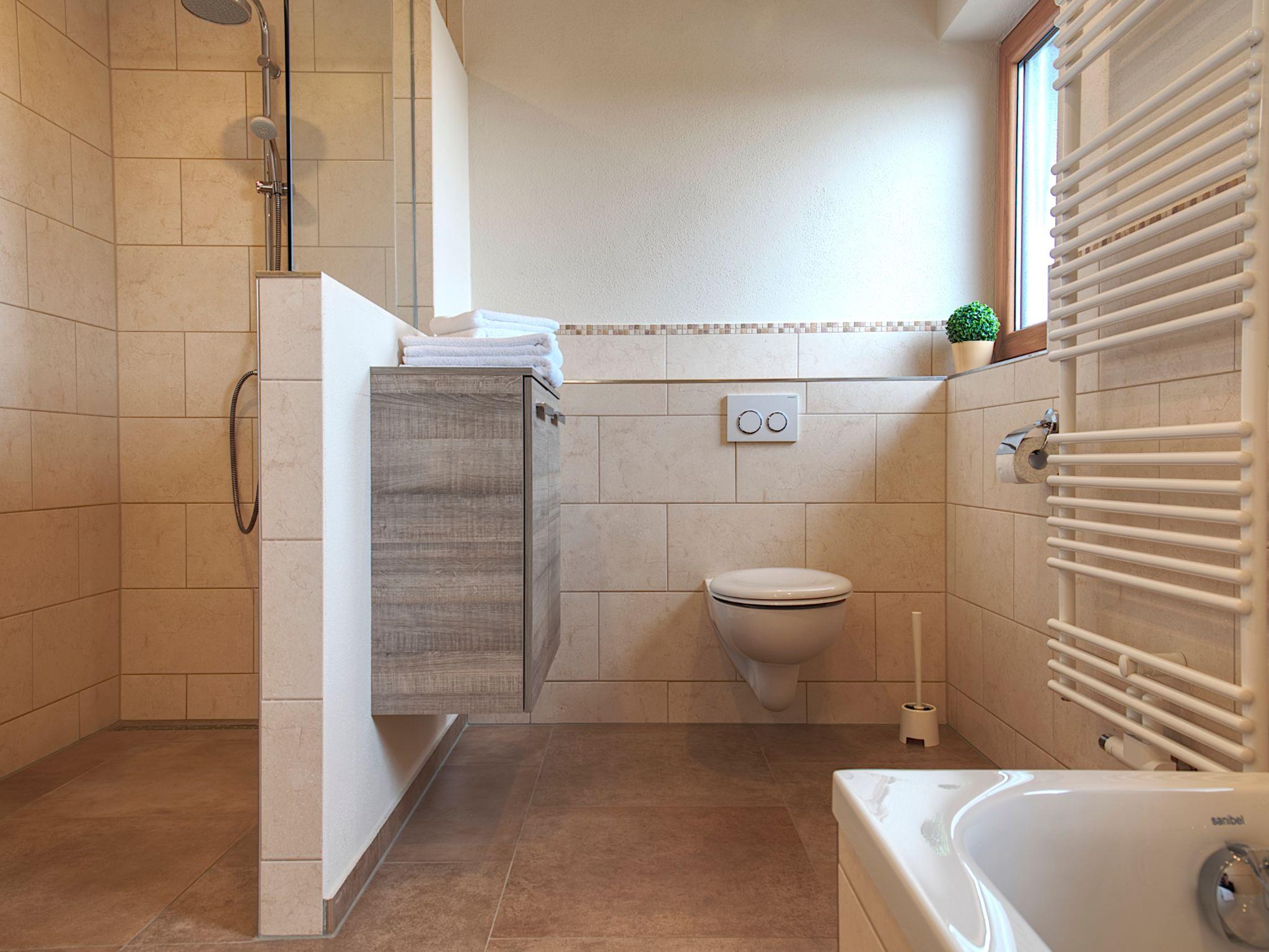 ERDGESCHOSS: Großes lichtdurchflutetes Wohnzimmer mit Sat TV + DVD und gemütlicher Couchlandschaft, voll ausgestatteter Küche mit Essbereich, ein Schlafzimmer mit Doppelbett, ein Schlafzimmer mit zwei Einzelbetten, sowie ein neues Bad mit Badewanne/Dusche/WC. OBERGESCHOSS: Zwei Schlafzimmer mit Doppelbett (Baby- oder Zustellbett möglich), ein neues Bad mit Dusche/WC. WEITERE AUSSTATTUNG: Garage und Parkplätze am Haus, abschließbarer Nebenraum für Ski oder Fahrräder, geschützte Terrasse mit Grillgelegenheit, Spiel- und Liegewiese, Waschmaschine und Bügeleisen, WLAN inklusive.
