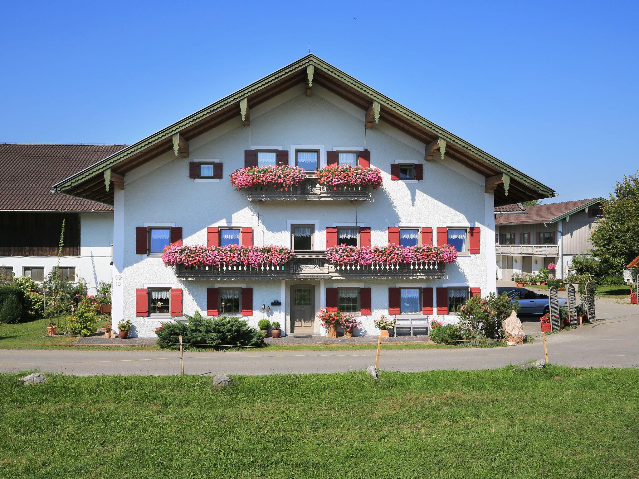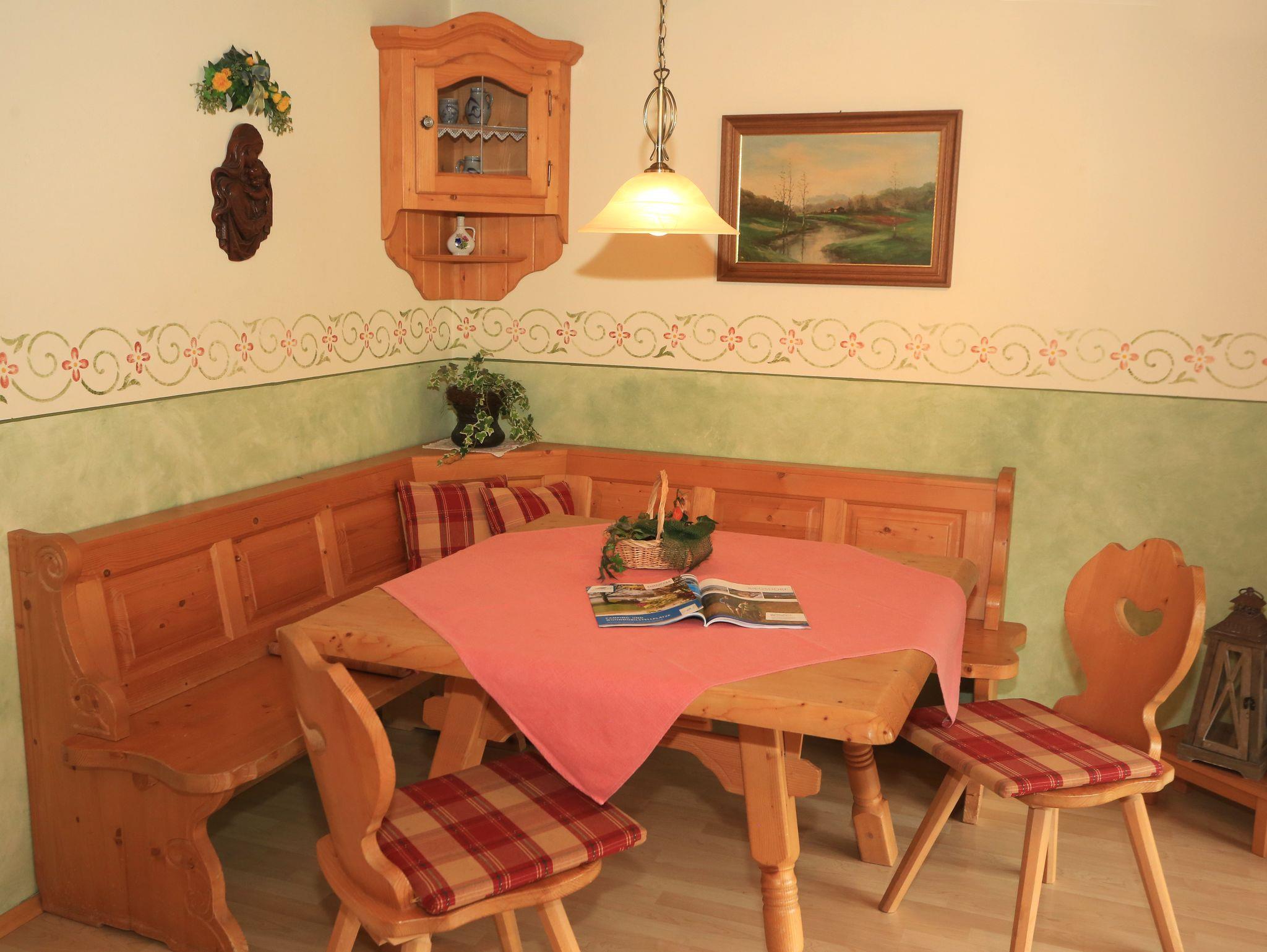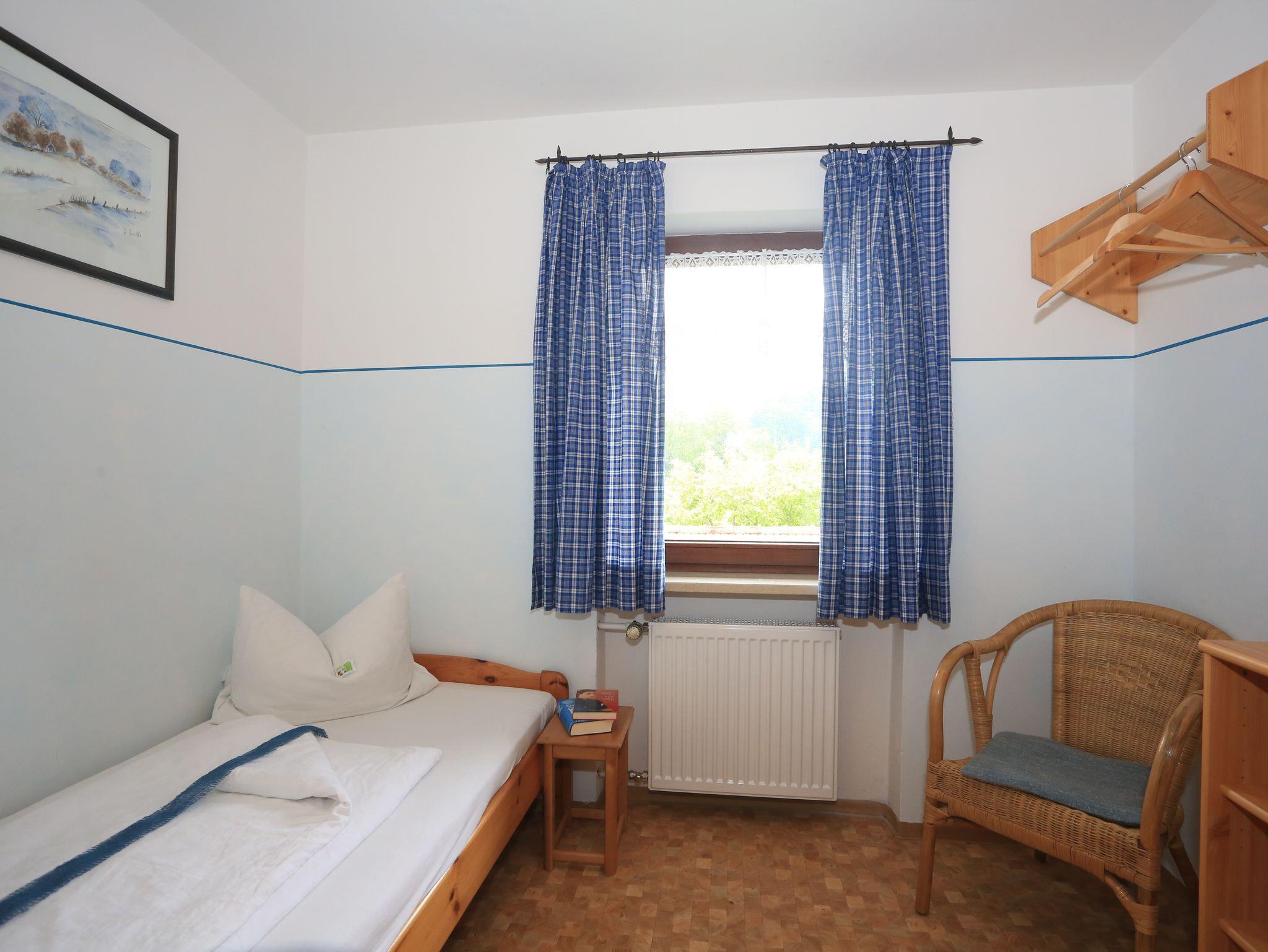 Unsere schöne, große Ferienwohnung befindet sich im Nebenhaus und ist gemütlich im ländlichen Stil eingerichtet. Die Wohnung hat 2 Doppelzimmer und 1 Einzelzimmer und einen großen Südbalkon auf dem Sie sich ideal entspannen können. Die Wohnung ist perfekt geeignet für Familien mit Kindern. Nach einem erlebnisreichen Urlaubstag sorgen eine sonnigen Liegewiese mit Liegestühlen oder unsere Sauna mit Solarium für Wohlbefinden und Entspannung. Für unsere ganz kleinen Gäste stellen wir kostenlos unsere Kinderausstattung zur Verfügung (Kinderbett, Hochstuhl, Wickelauflage, Hocker, Kindertrage etc.).