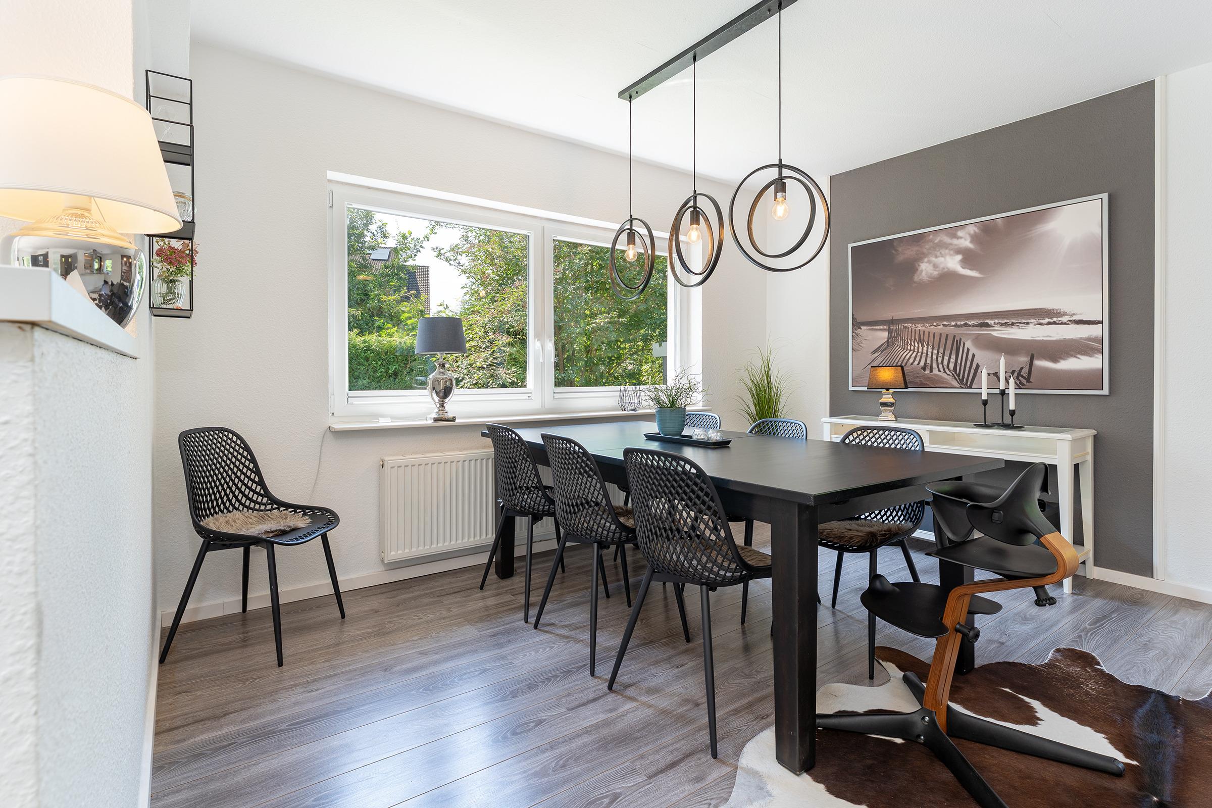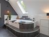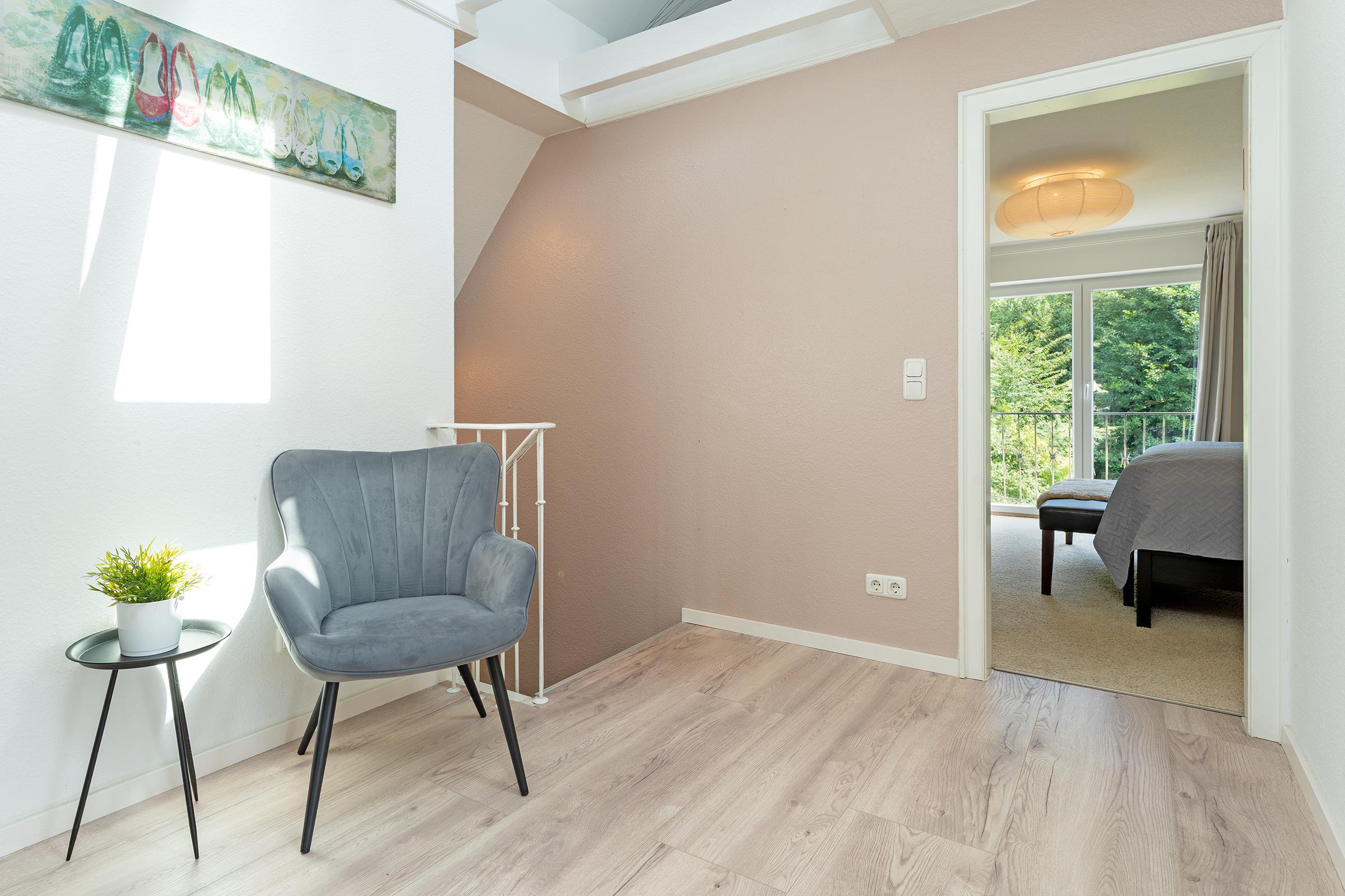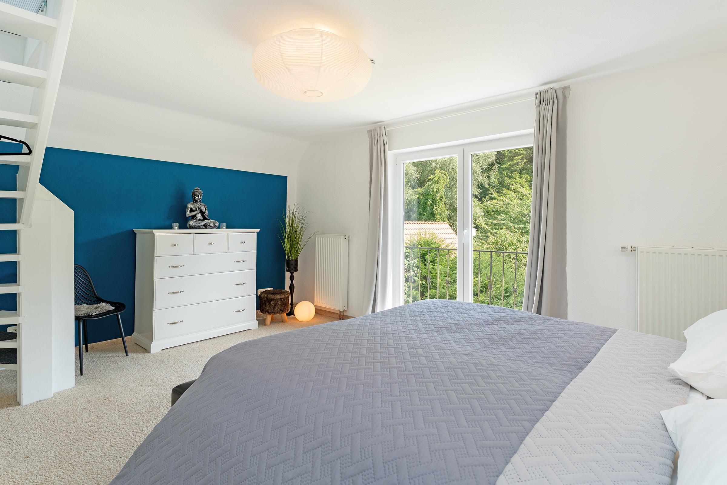 Im Obergeschoss befinden sich drei gemütlich eingerichtete Schlafzimmer: Das erste Schlafzimmer ist mit einem komfortablen Doppelbett (180×200?cm) ausgestattet. Im zweiten Schlafzimmer steht ein weiteres Doppelbett (2x 80×200?cm) zur Verfügung. Das dritte Zimmer bietet ein Schlafsofa (140×200?cm) und eignet sich ideal für Kinder oder flexible Schlafmöglichkeiten. Im Erdgeschoss befindet sich ein weiteres Schlafzimmer mit einem Doppelbett (2x 90×200?cm) – ideal für Gäste, die auf eine ebenerdige Unterkunft angewiesen sind oder einfach mehr Rückzugsmöglichkeiten wünschen. Ihre Urlaubsgarderobe verstauen Sie mühelos im jeweiligen Kleiderschrank. Im Obergeschoss erwartet Sie ein modern ausgestattetes Vollbad. Zusätzlich befindet sich im Erdgeschoss ein praktisches Gäste-WC.