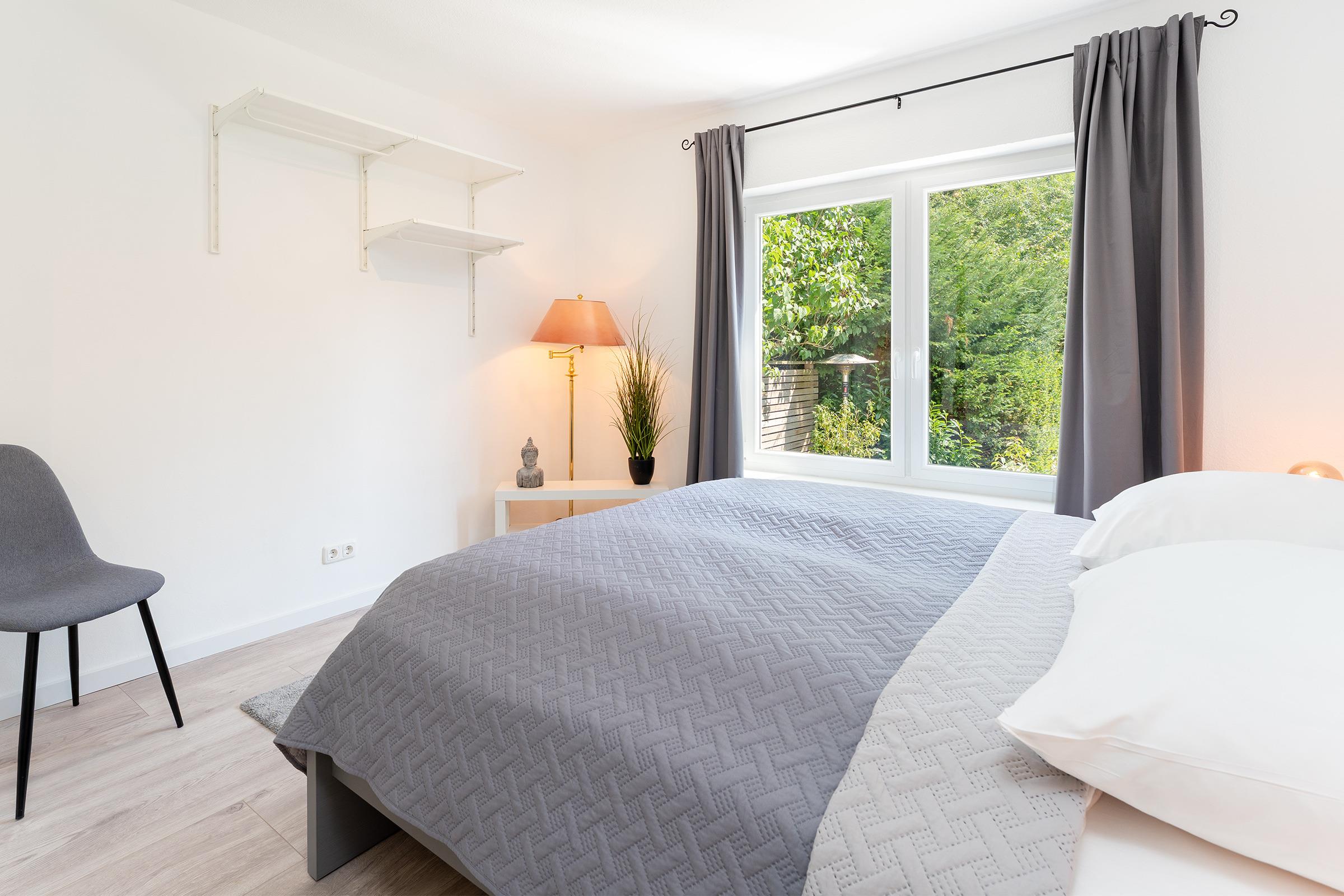 Schlafzimmer 4 (EG): 1 Doppelbett (2x 90x200 cm), Kleiderschrank, Verdunkelung: Gardine