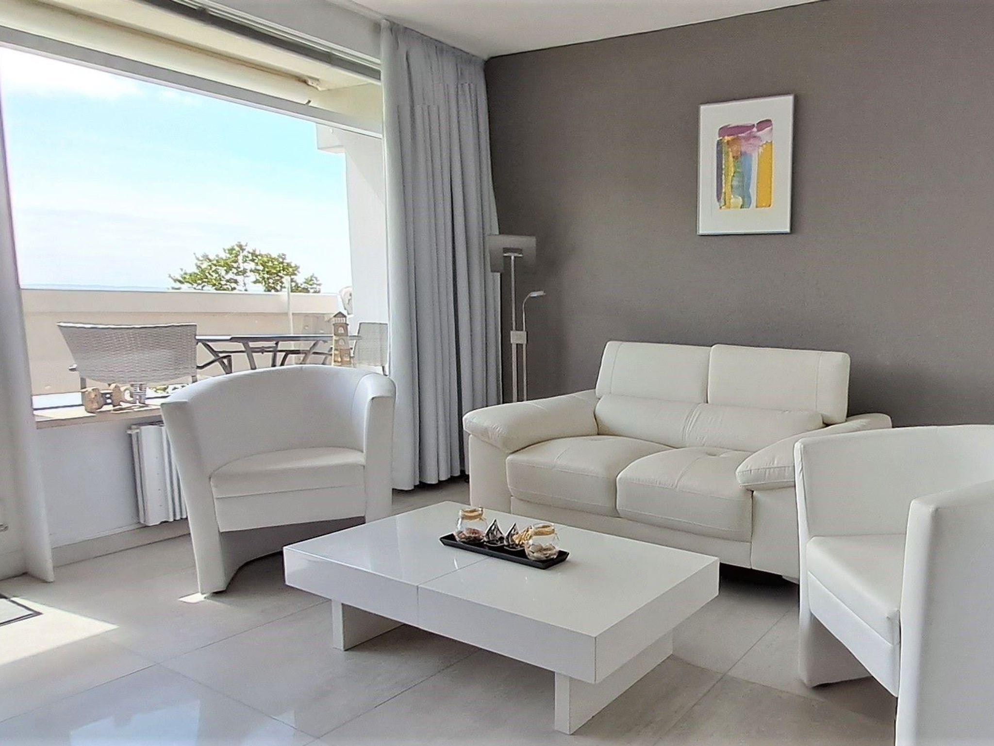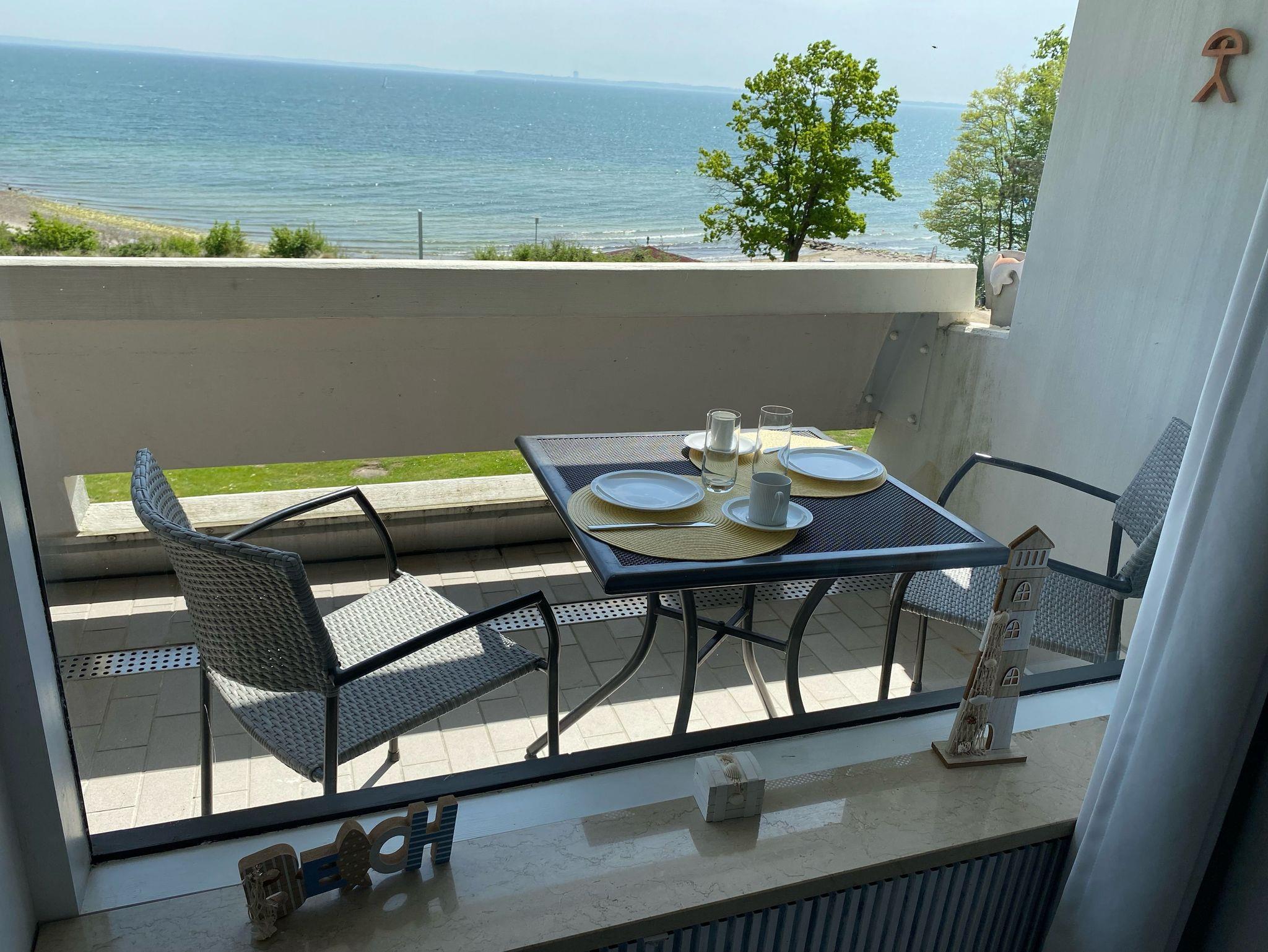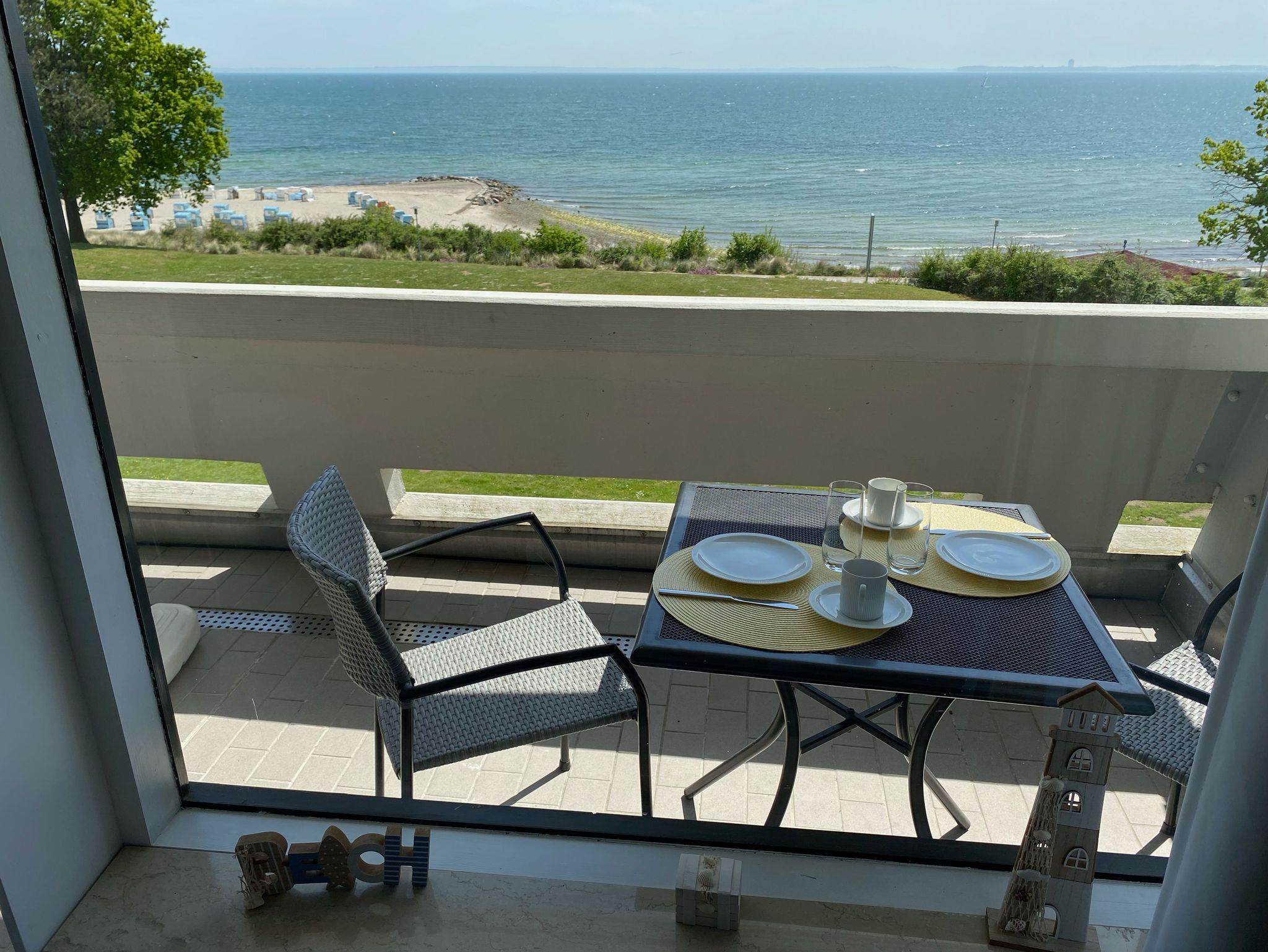 Diese Wohnung wurde im Frühjahr 2023 total renoviert und neu eingerichtet. Die helle, modern eingerichtete Wohnung ist über die gesamte Fläche mit einem hellgrauen Fliesenfußboden ausgestattet. Im Wohnzimmer befindet sich in einer Schlafnische das bequeme Doppel-Box-Spring-bett, von welchem man einen Blick auf die Ostsee genießen kann. Im separaten Schlafzimmer stehen zwei Einzelbetten. Das Duschbad ist ebenso neu gestaltet und vergrößert. Es hat eine bodengleiche Dusche. Die Küche ist in einem separaten Raum untergebracht und verfügt über Geschirrspüler, Backherd und Kühlschrank mit Gefrierfach. Von der Loggia haben Sie einen einzigartigen Panorama Meerblick über die Lübecker Bucht.