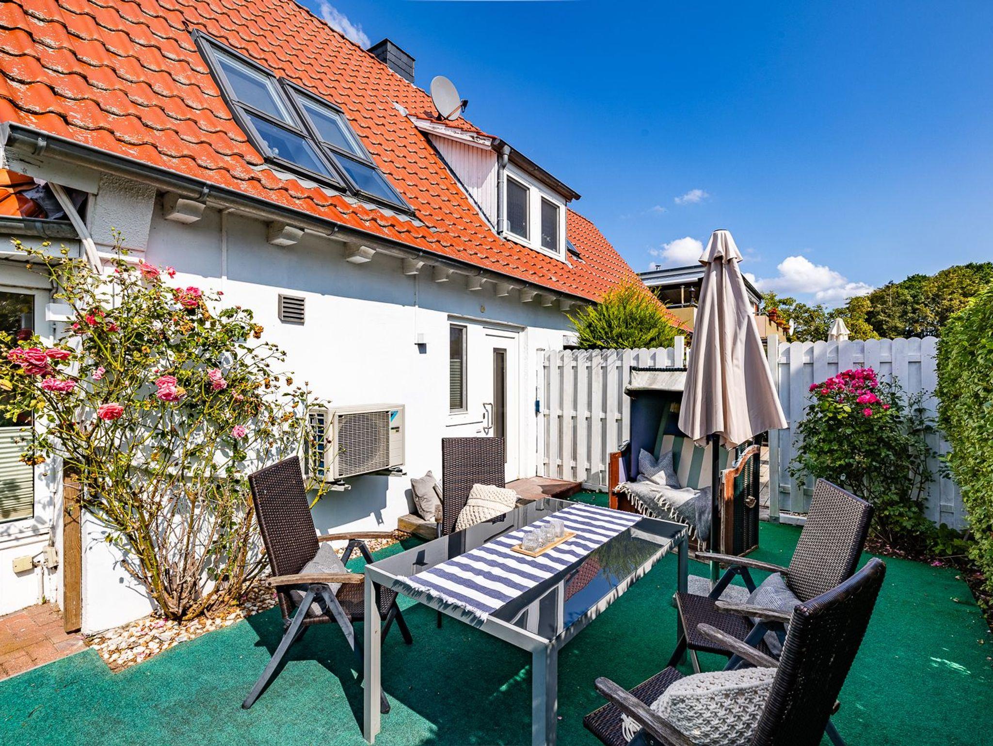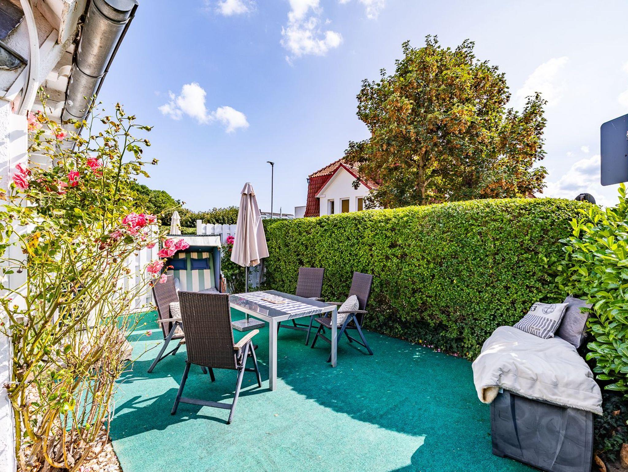 Zu guter Letzt bietet die Ferienwohnung „LUV“ noch eine schöne Terrasse mit einem hochwertigen Garten-Strandkorb und 2 weiteren Sitzgelegenheiten, in denen die Gäste die Urlaubstage entspannt ausklingen lassen können.