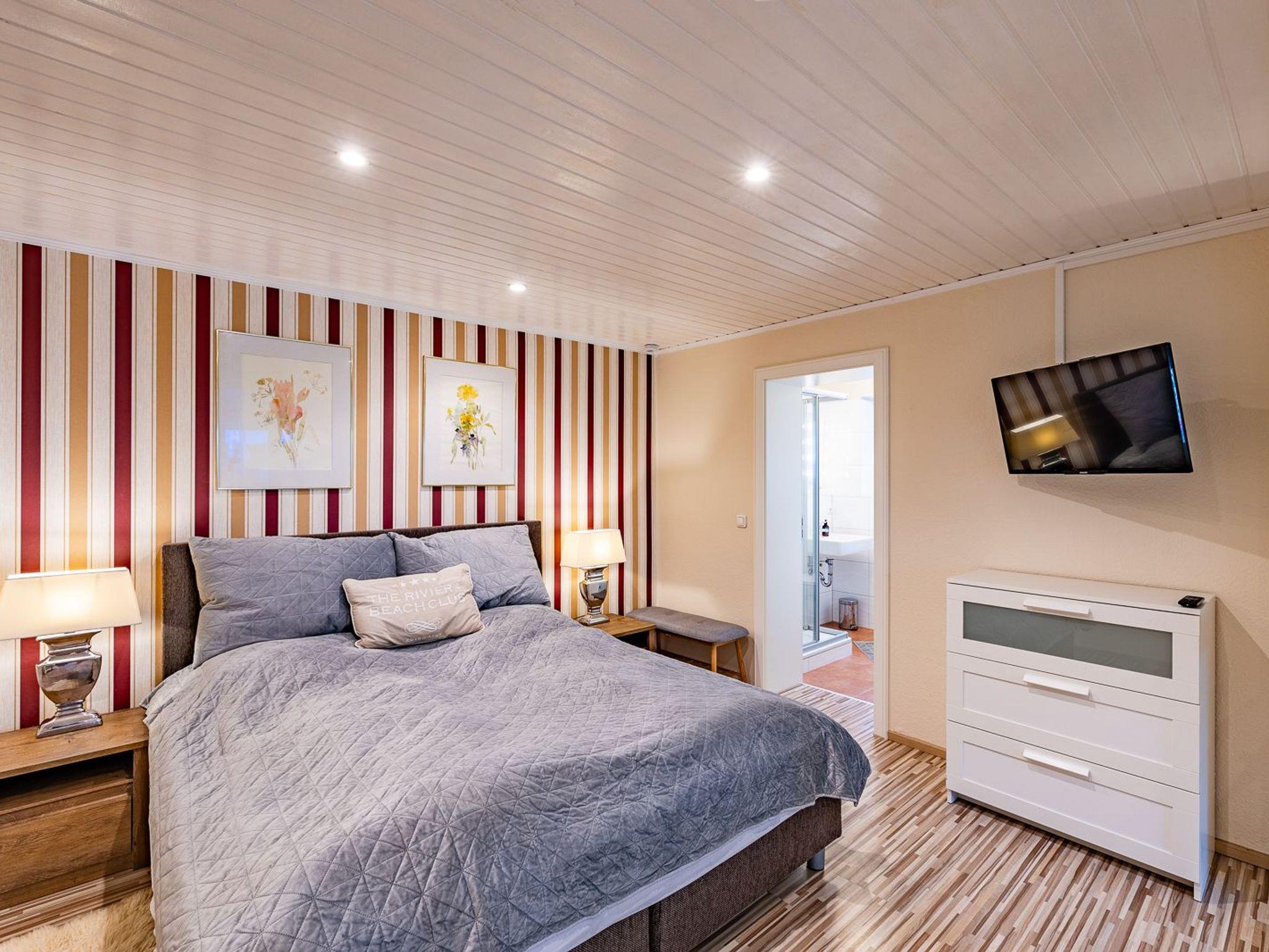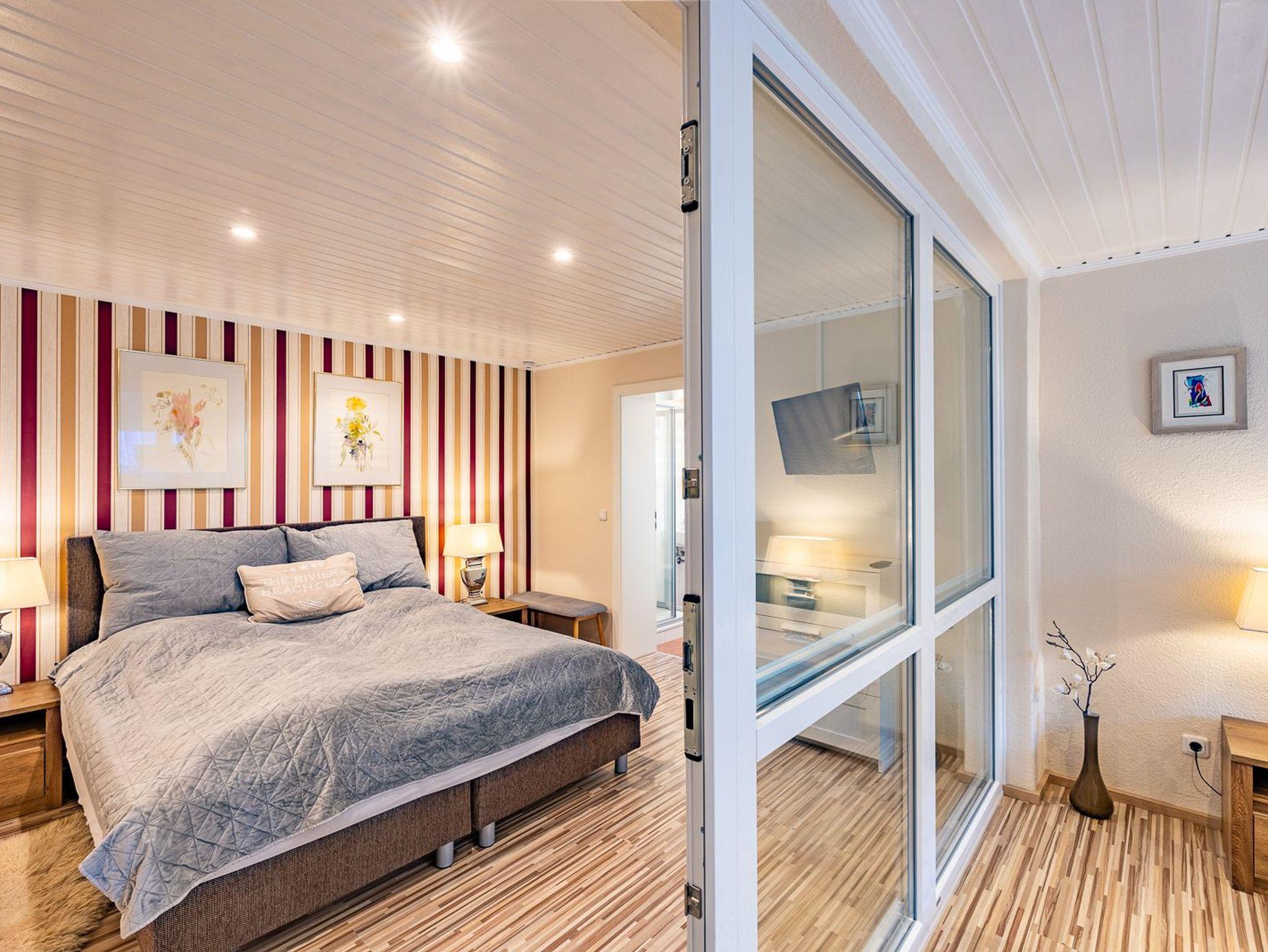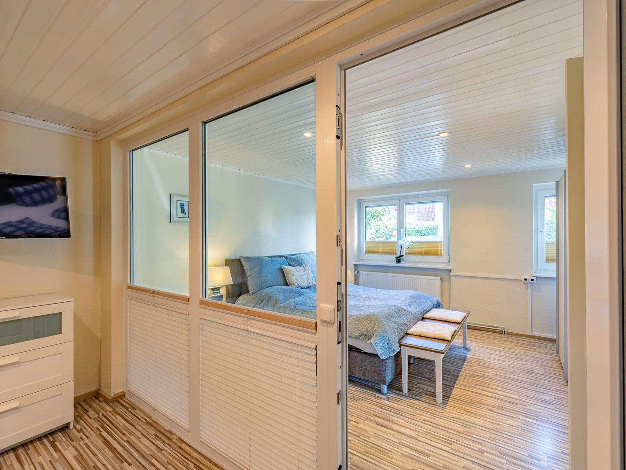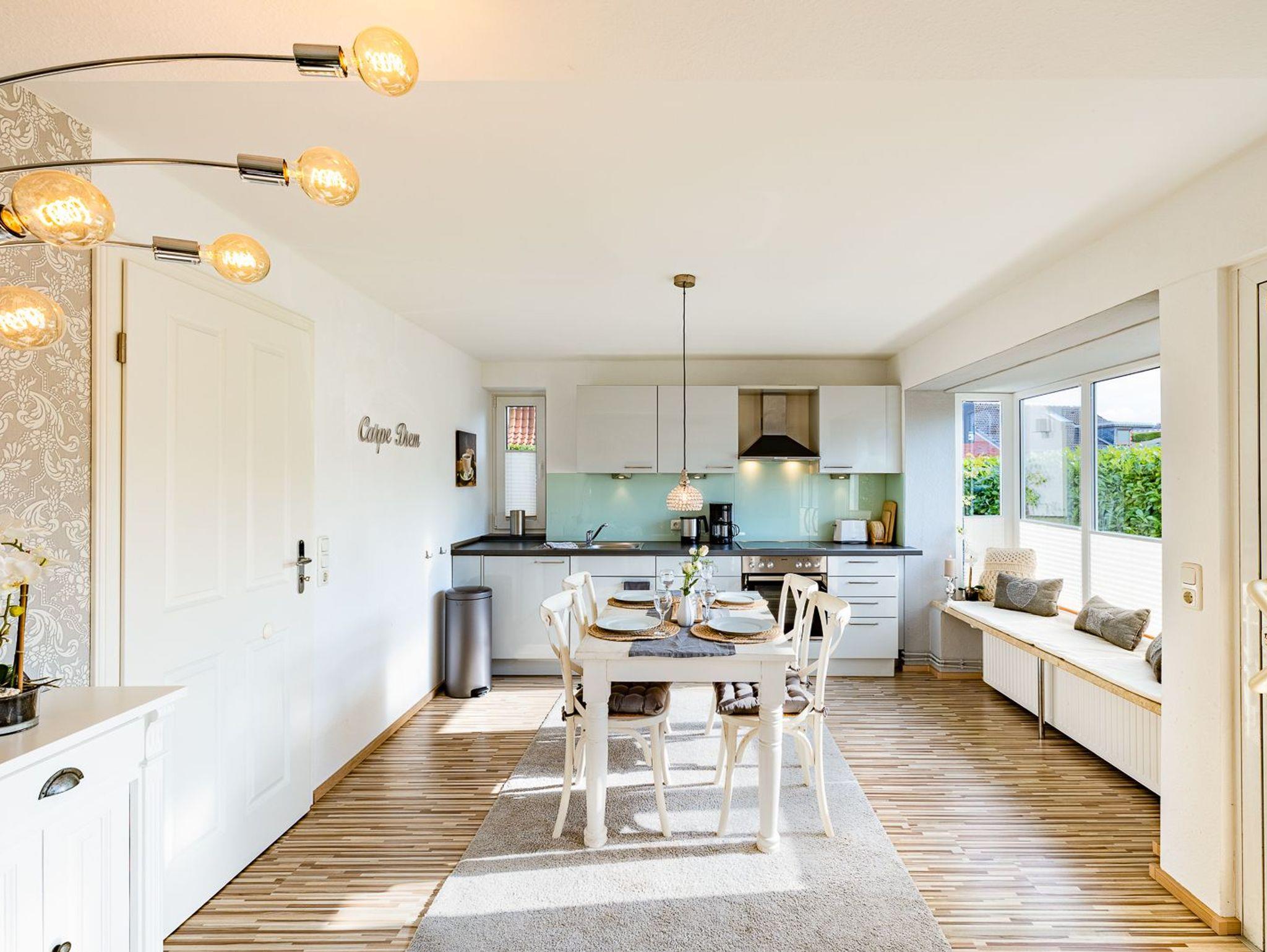 Neben dem großzügigen Eingangsbereich gibt es zwei Schlafzimmer, zwei vollausgestattete Bäder (davon ein Bad mit Waschmaschine) und einen gemütlichen Wohn-Essbereich, der im Winter 2023/24 neu möbliert wurde.