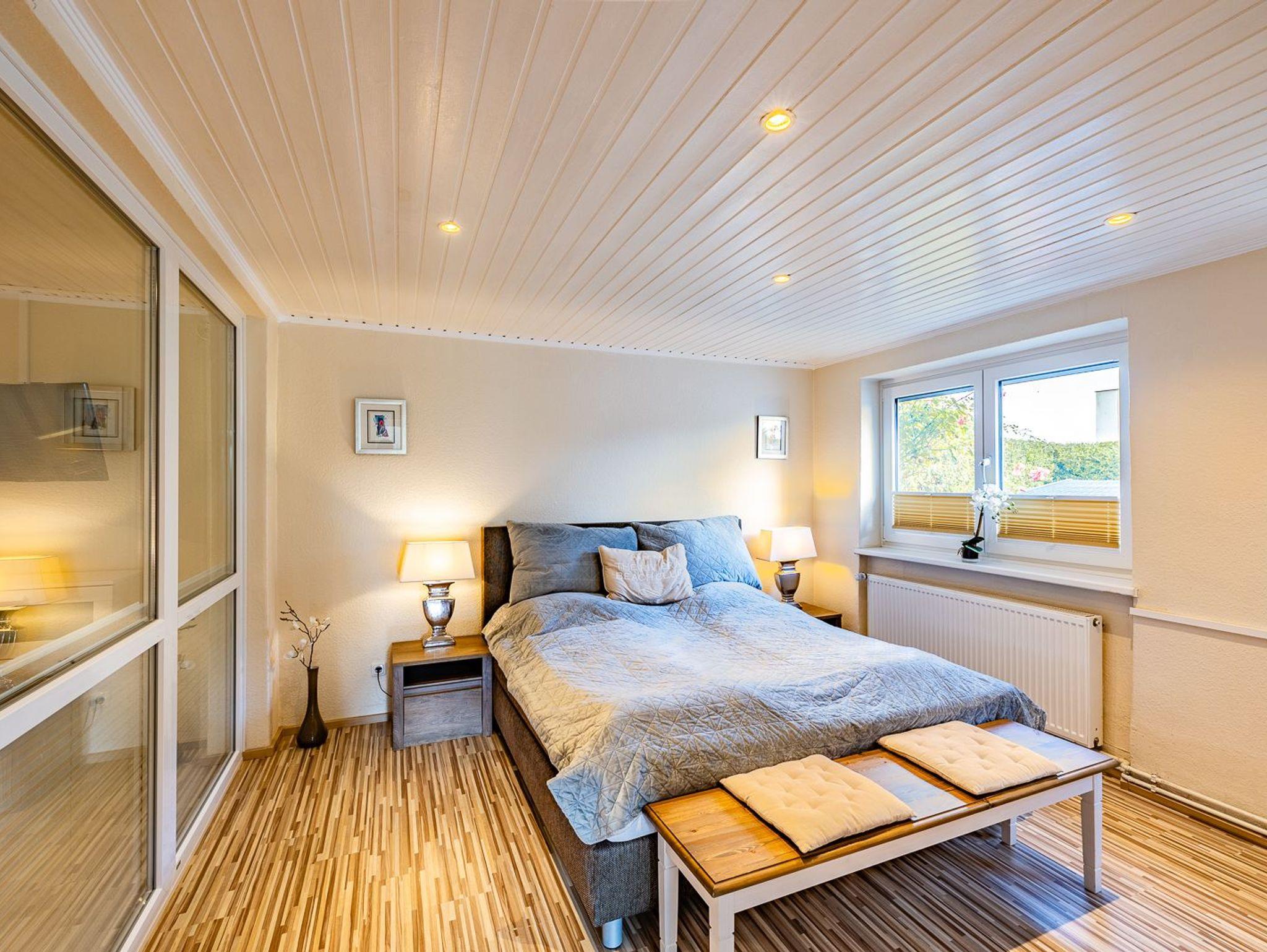 Für einen erholsamen Schlaf warten in beiden Schlafzimmern hochwertige Boxspringbetten.