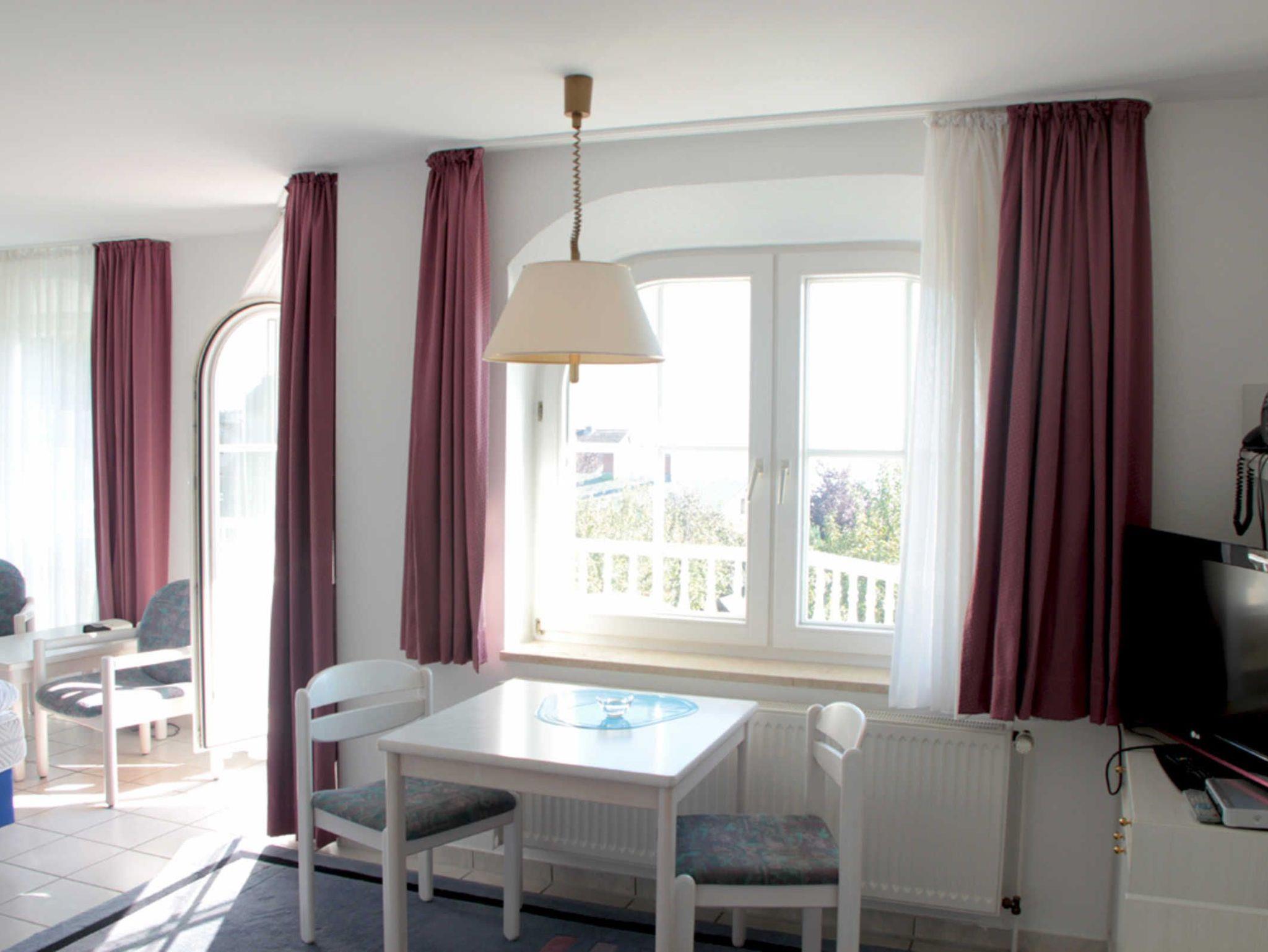 Das 1-Raum-Appartement-Studio befindet sich im 1. OG und besitzt 1 Wohn-Schlafraum, Duschbad, Küchenzeile, Balkon und Meerblick