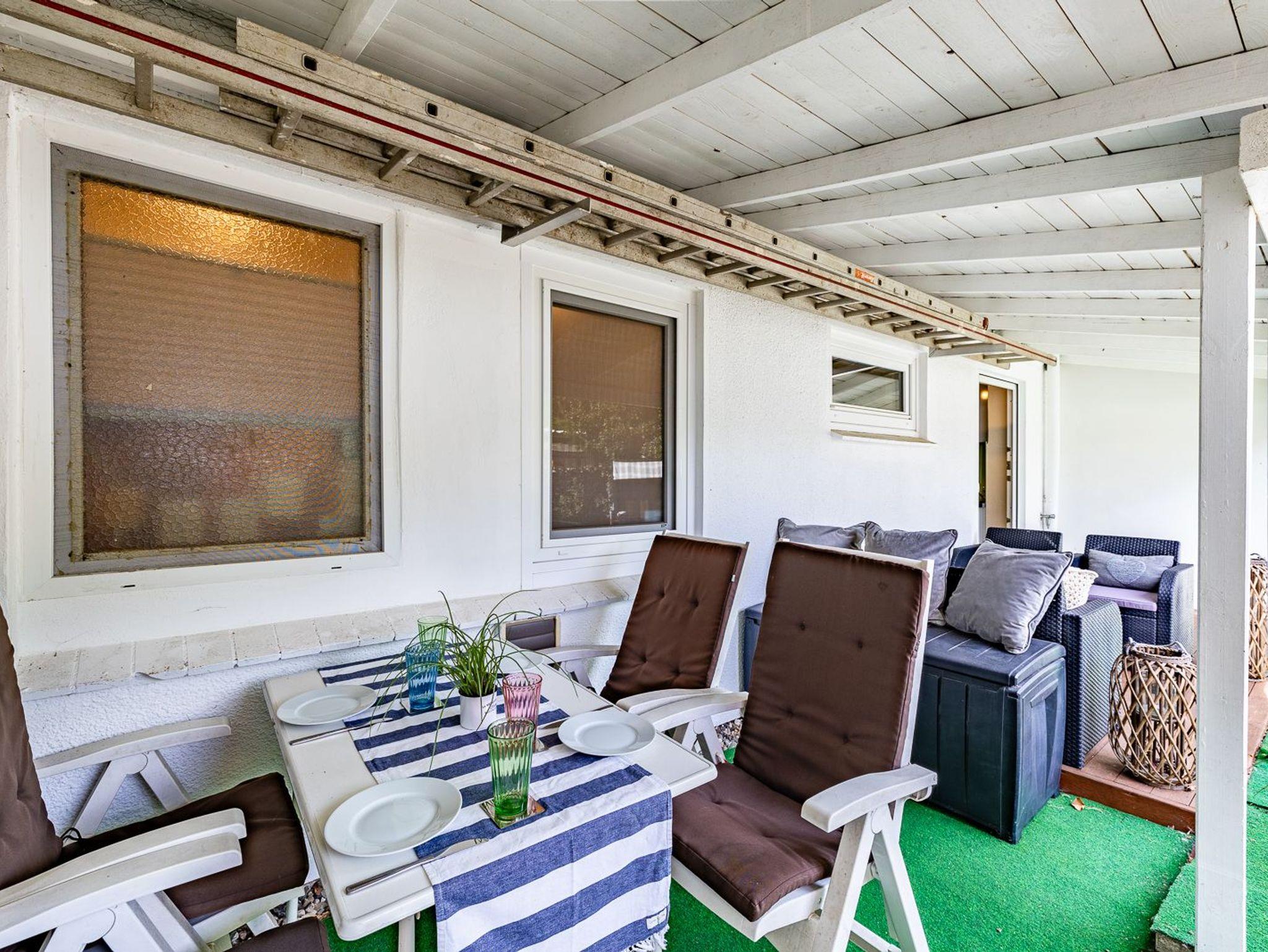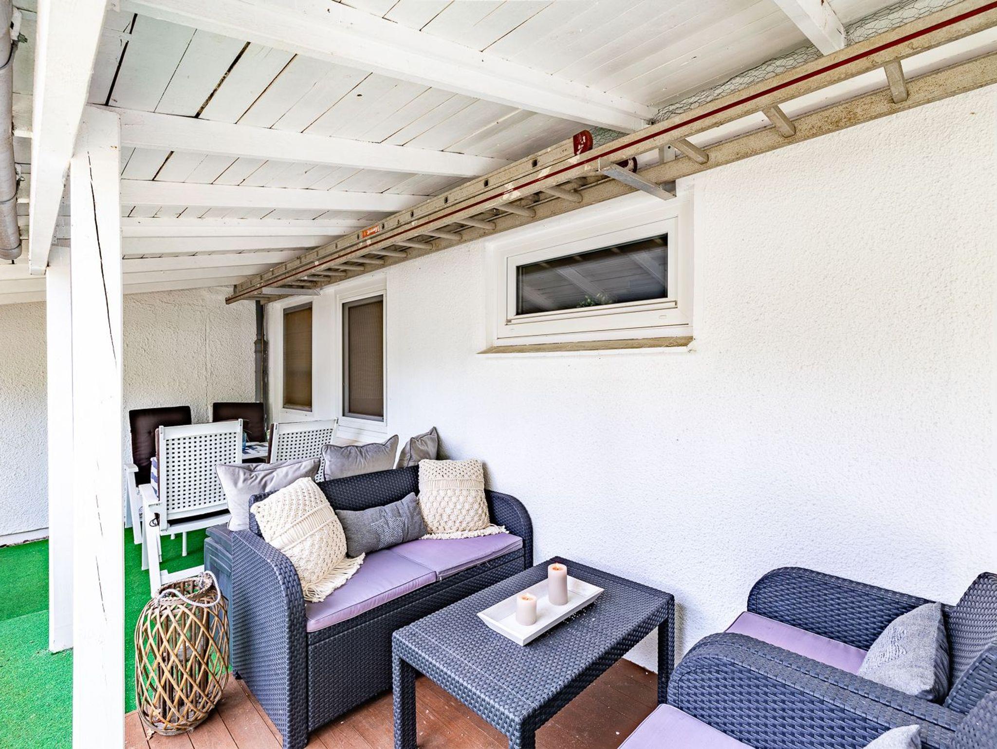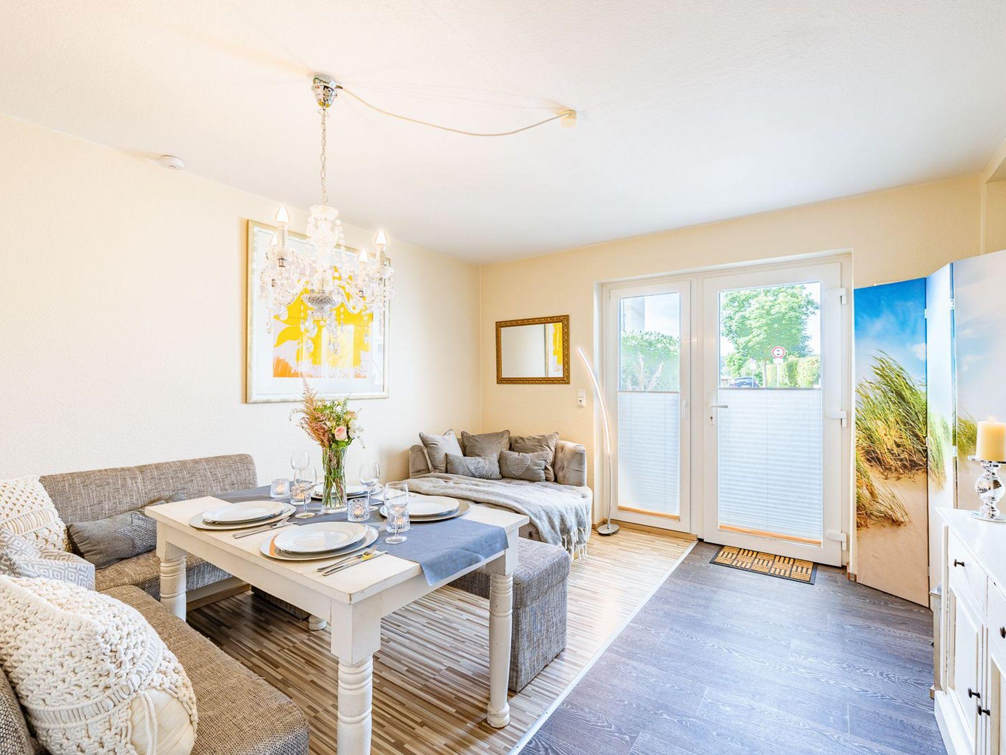 Zu guter Letzt bietet das Reihenhaus „LEE“ ein kleines Gartenstück mit Terrasse, das von der Küche aus zu erreichen ist. Dort befinden sich ein hochwertiger Garten-Strandkorb und 2 weiteren Sitzgelegenheiten, in denen die Urlaubstage entspannt ausklingen können.