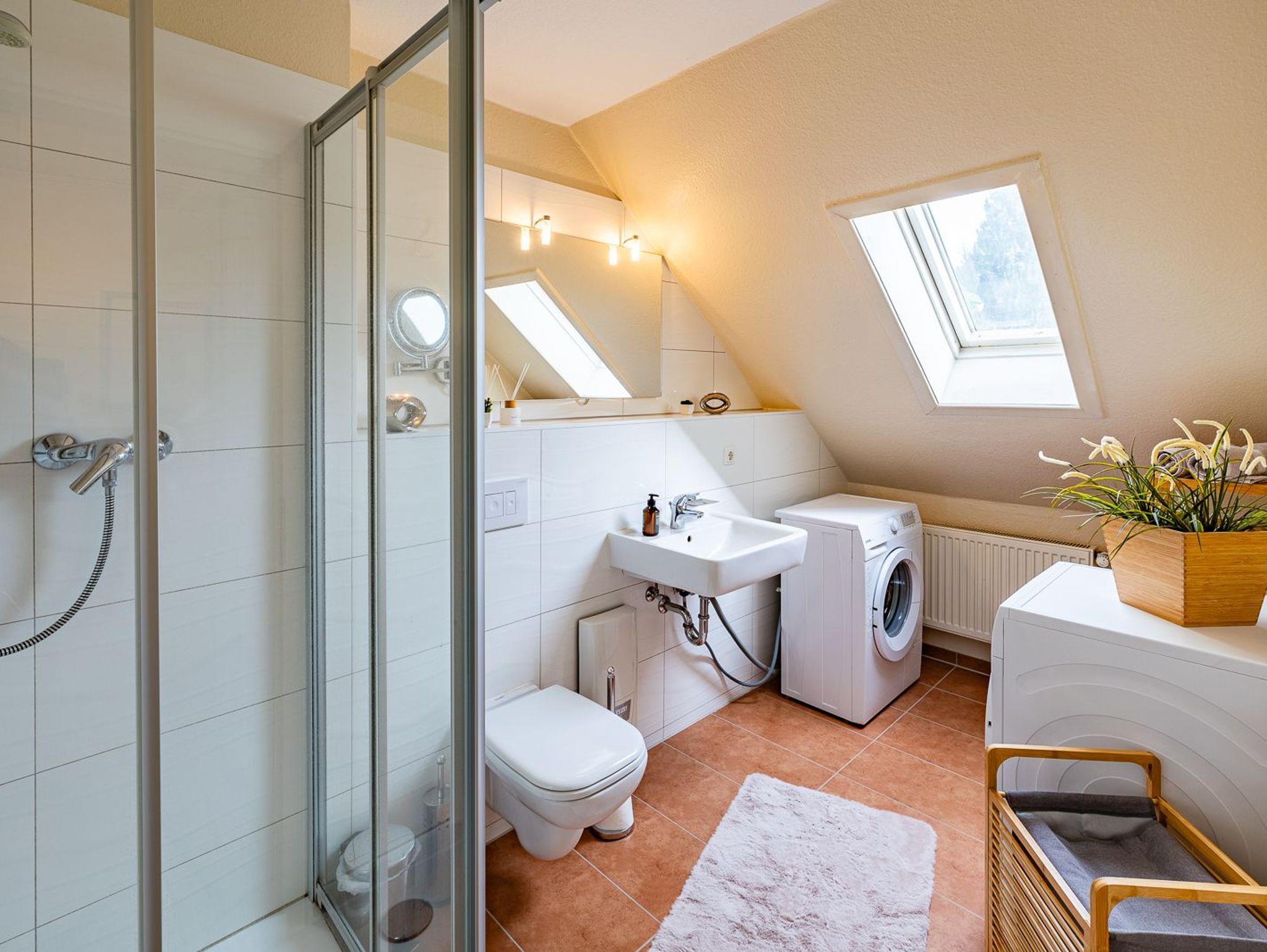 Das Reihenhaus „LEE“ ist eine schöne Maisonettewohnung und bietet neben einem Flur, zwei separaten Schlafzimmern, zwei Bädern (davon ein Bad mit Waschmaschine) eine geschmackvolle Küche und einen gemütlichen Wohnbereich. Für einen erholsamen Schlaf warten im Obergeschoss unsere hochwertigen Boxspringbetten. Beide Badezimmer befinden sich ebenfalls im Obergeschoss und verfügen jeweils über Dusche und WC. Im modern und zugleich gemütlich eingerichteten Wohnzimmer werden unsere Gäste amüsante Spielrunden oder spannende Stunden vor einem neuen Flatscreen Fernseher (104 cm Diagonale) verbringen.