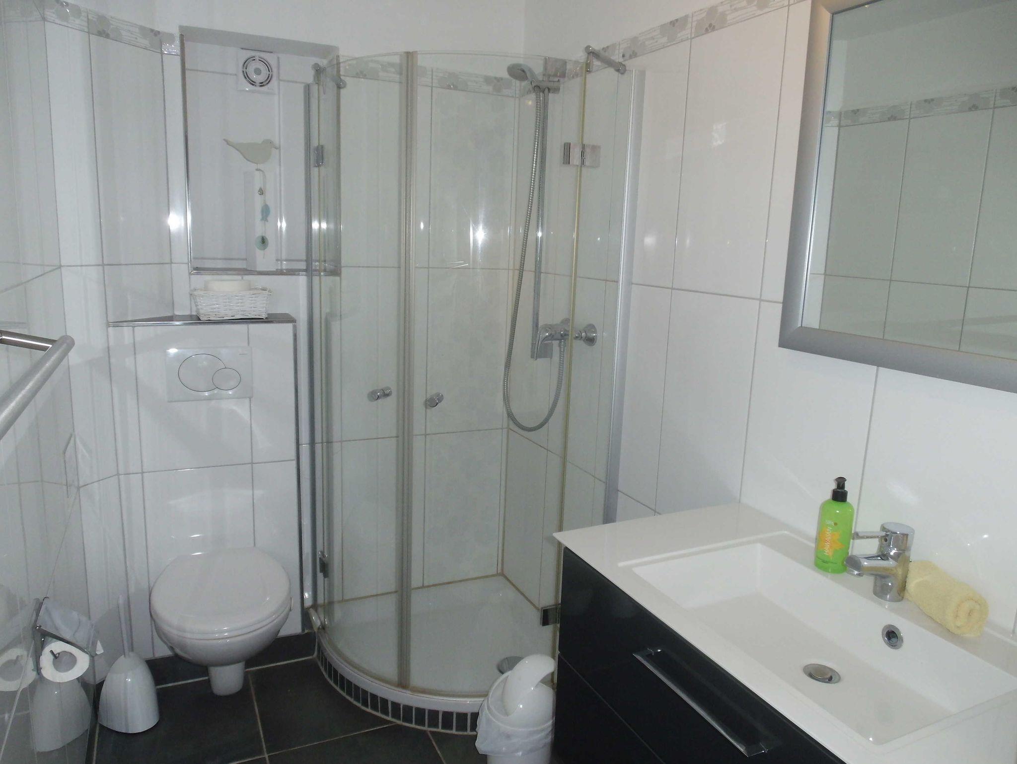 Die ca. 63 m² große Erdgeschosswohnung besitzt einen Wohn-Schlafraum mit moderner Schlafcouch, sowie zwei separate Schlafzimmer: eins mit einem Französischem Bett (140 x 200 cm) und zus. Einzelbett und eins mit zwei Einzelbetten. Ein Zustellbett für ein Kind (bis 3 Jahre) ist möglich. Die sep. Küche ist ausgestattet mit Spülmaschine, Mikrowelle und einer Einbauküche. Eine Terrasse lädt zum Verweilen am Abend ein.