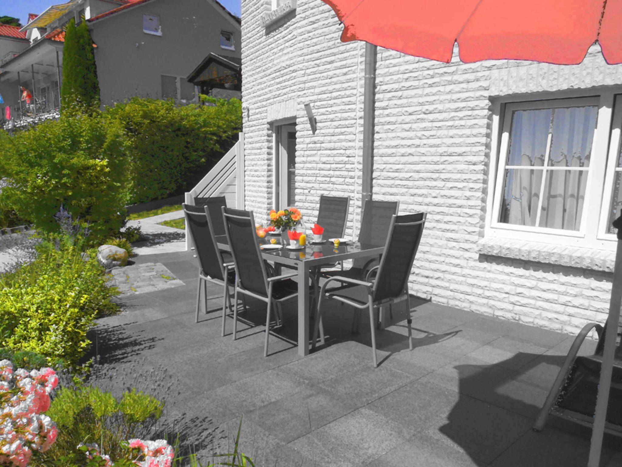 Hier genießen die Gäste den wunderschönen Blick auf die Lübecker Bucht von unserer großen Sonnenterrasse oder dem weitläufigen parkähnlichen Grundstück!