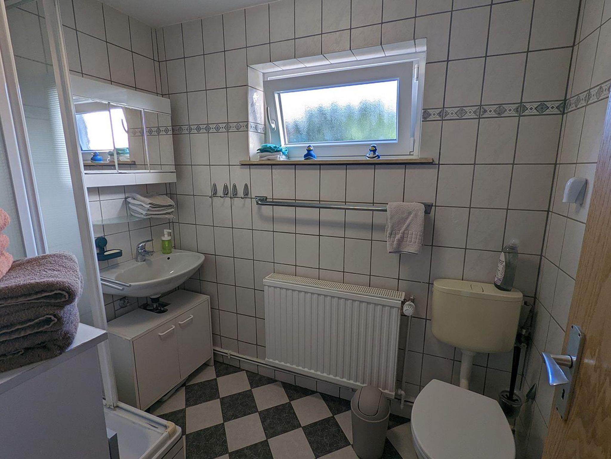 Die ca. 40 m² große Ferienwohnung mit Flur, Wohnzimmer, Duschbad/WC und zwei Schlafräumen ist für 3 Personen geeignet. Sie ist zentralbeheizt, die Böden sind gefliest, im Wohnzimmer liegt ein Teppich. Bad und Doppelzimmer grenzen an das Wohnzimmer. Durch das Doppelzimmer (Durchgangszimmer) erreicht man das zweite Schlafzimmer (Kinderzimmer). Im Kinderzimmer sind Teppichböden und ein Einzelbett (80x200 cm ausziehbar) . Handtücher, Küchentücher und Bettwäsche werden gestellt und wöchentlich gewechselt.