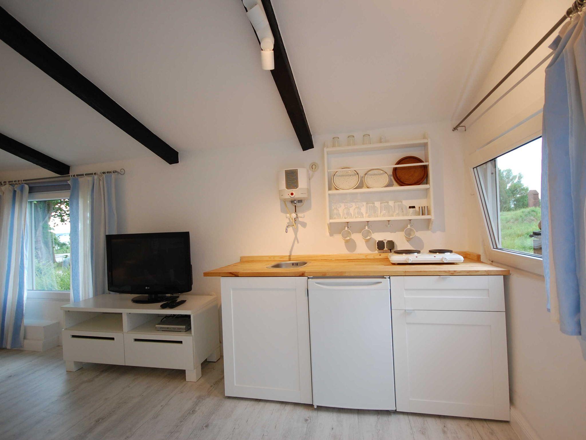 In der praktischen Küchenecke findest du alles, was du für eine kleine Auszeit am Meer brauchst: