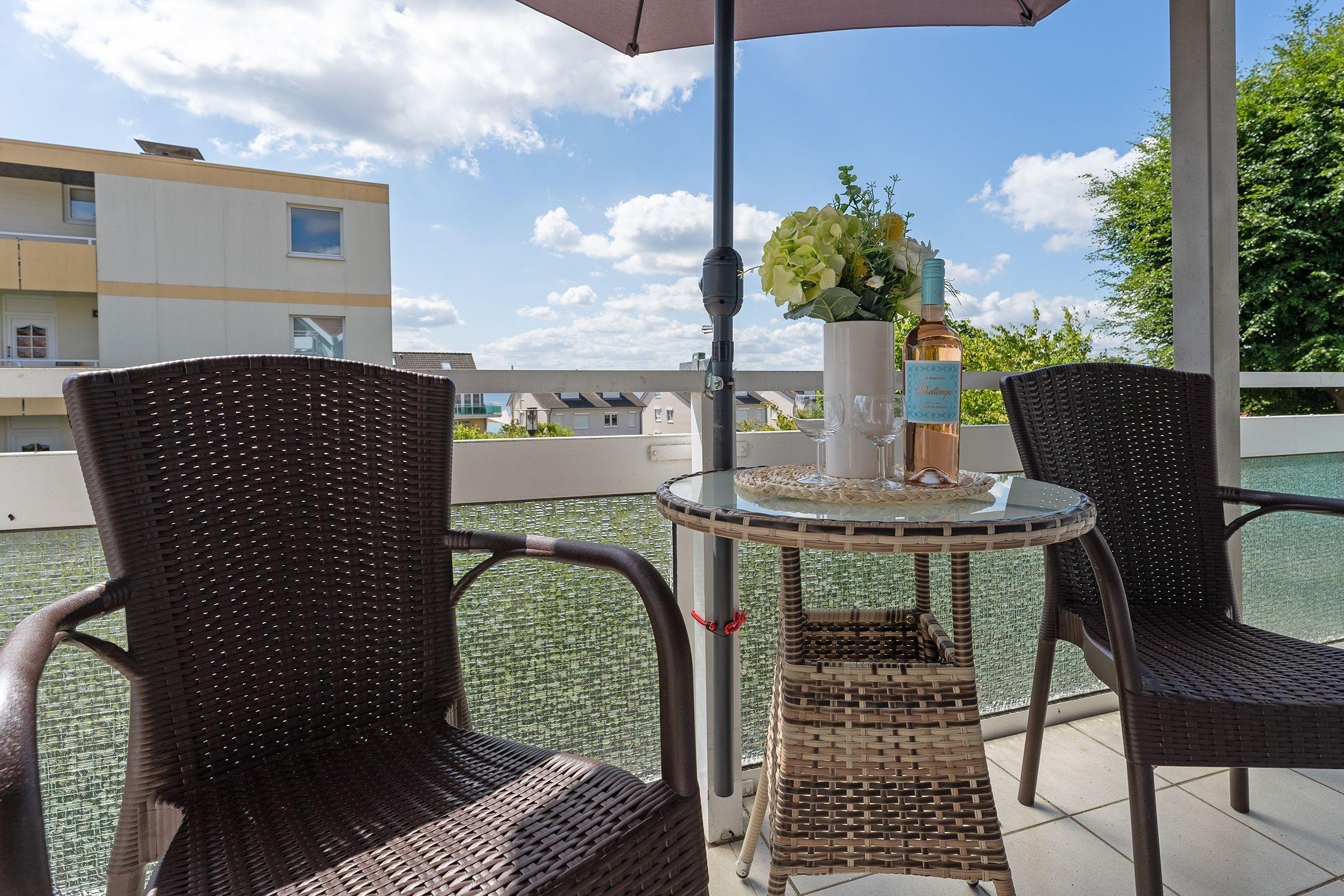 Das 2-Zimmer-Appartement hat ca. 36 m² und bietet Platz für bis zu 4 Personen. Es ist komplett gefliest und verfügt über einen Wohnraum mit: Schlafcouch für 2 Personen, TV-Gerät, Radio/CD-Player, Essplatz, integrierter Küchenzeile sowie einem Zugang zum großzügigen Balkon mit Gartenmöbeln und etwas Meerblick. Die moderne Küchenzeile ist ausgestattet mit: Induktionsherd (4 Kochplatten), Kühlschrank mit Gefrierfach, Mikrowelle, Geschirrspülmaschine, Wasserkocher, Kaffeemaschine und Toaster. Im Schlafzimmer befinden sich ein Doppelbett (2x 90x200 cm) und ein 2. Zugang zum Balkon. Duschbad mit Fön.
