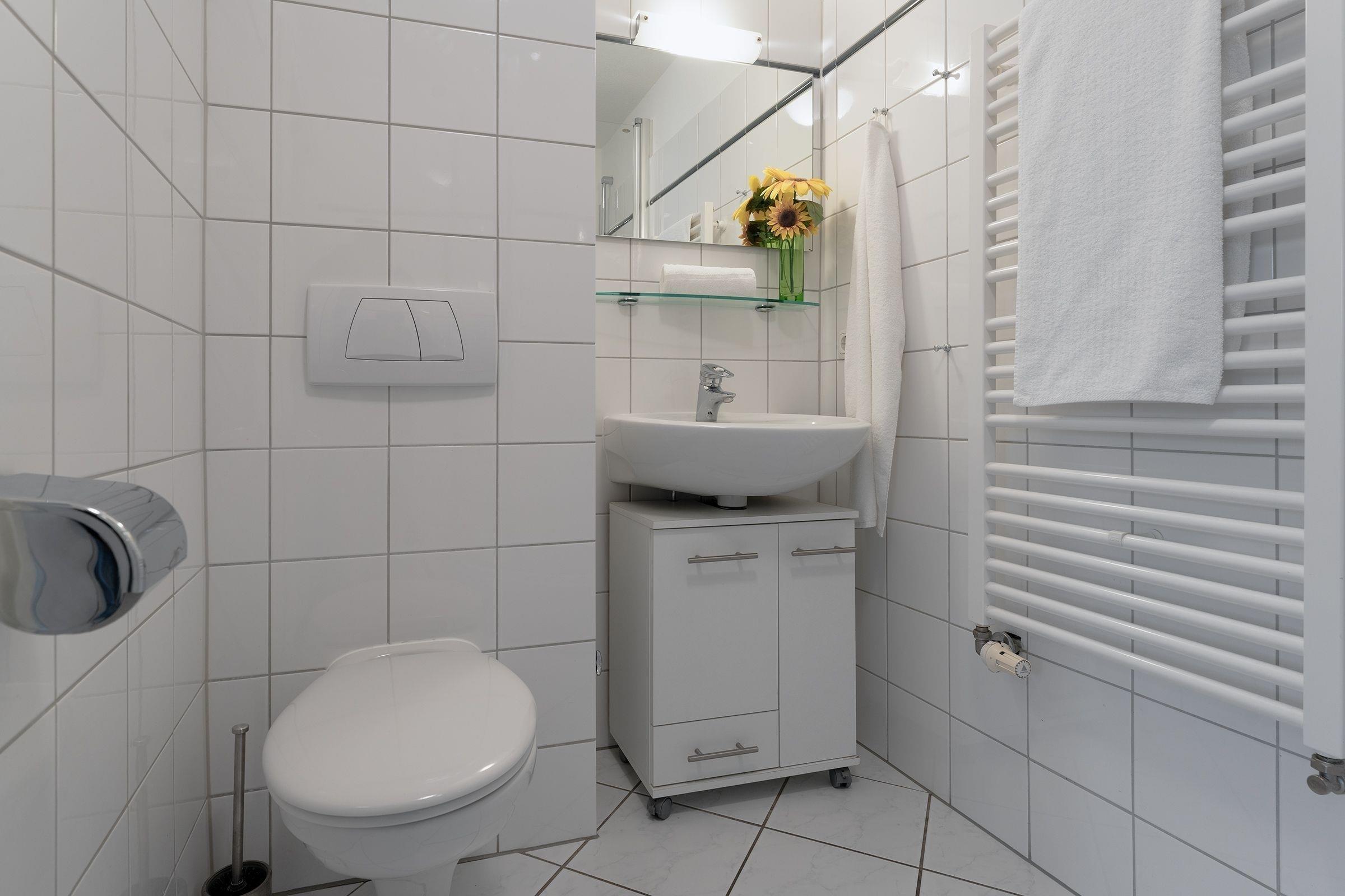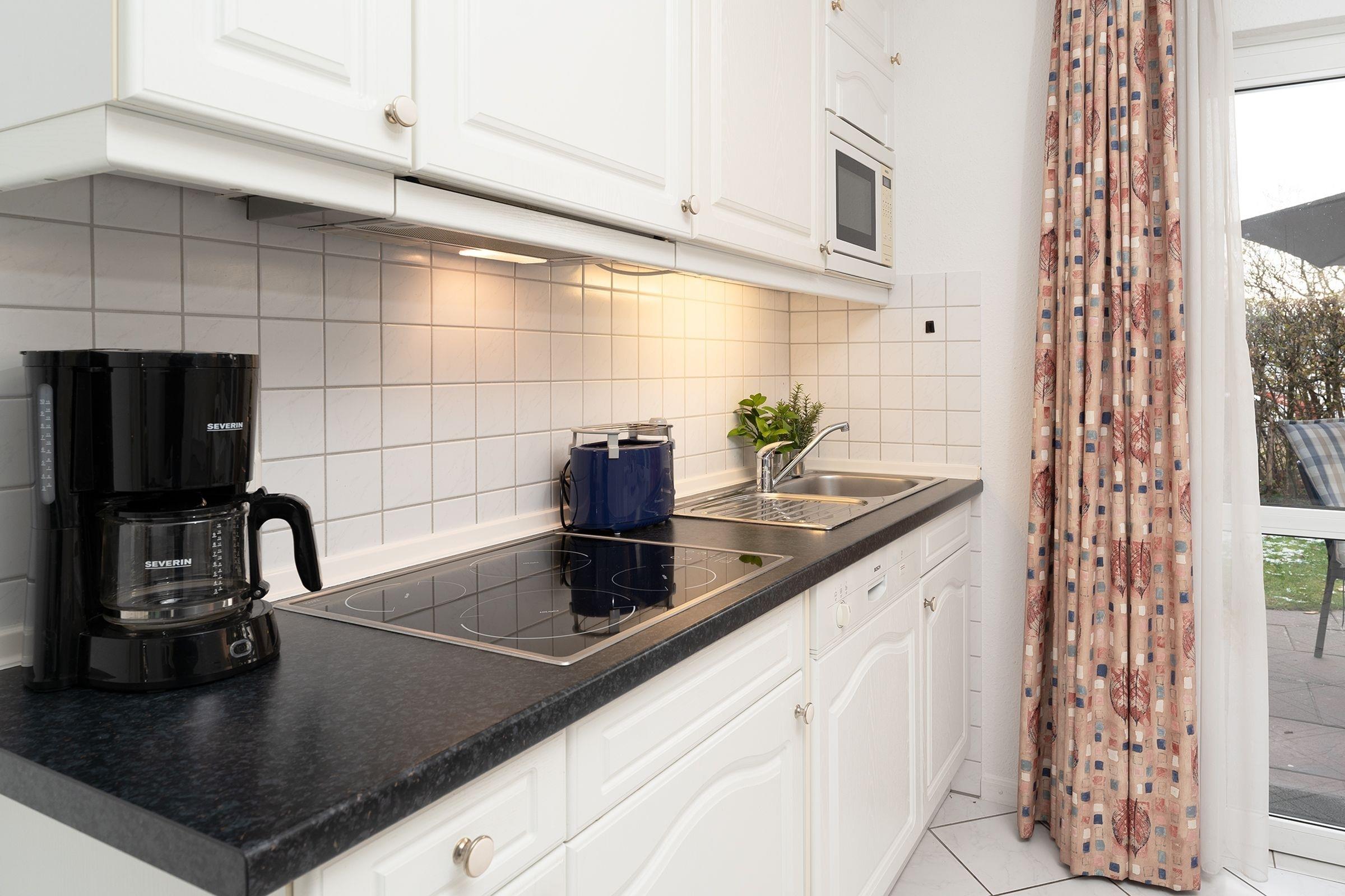 Das 1-Zimmer-Appartement hat ca. 23 m² und bietet Platz für bis zu 2 Personen. Es ist komplett gefliest und verfügt über einen Wohn-/Schlafraum mit einem Doppelbett (2x 90x200 cm), TV-Gerät, Radio/CD-Player, Essplatz, integrierter Küchenzeile sowie einem Zugang zur Terrasse mit Gartenmöbeln. Die moderne Küchenzeile ist ausgestattet mit: Induktionsherd (4 Kochplatten), Kühlschrank mit Gefrierfach, Mikrowelle, Geschirrspülmaschine, Wasserkocher, Kaffeemaschine und Toaster. Duschbad mit Fön.