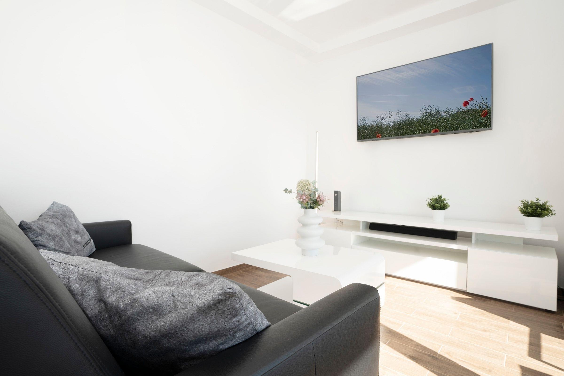 Wohnzimmer: 1 Schlafsofa (140x200 cm), TV, Verdunkelung: elektrische Rollläden