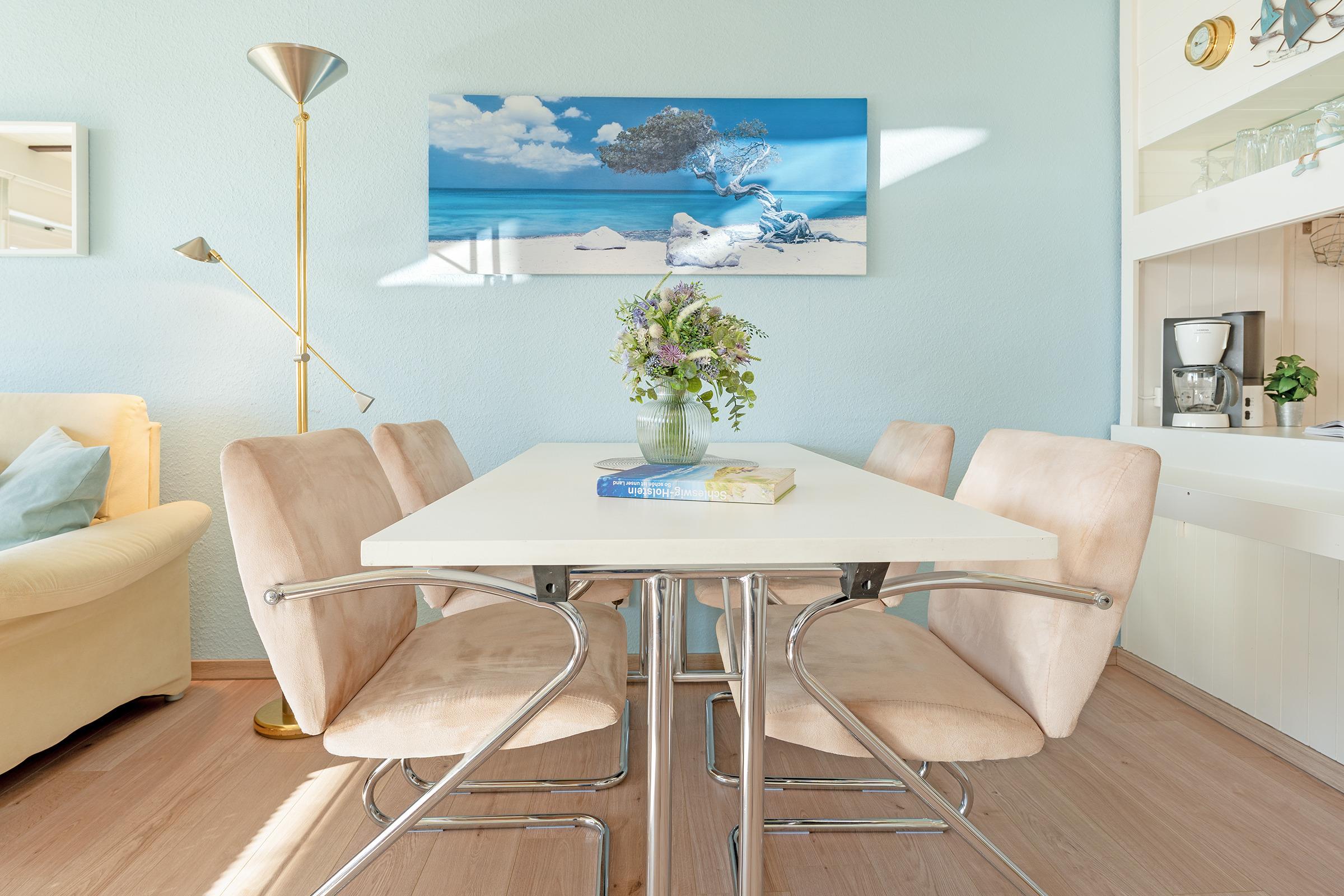 Die voll ausgestattete Küche verfügt über vielen Annehmlichkeiten zum Zubereiten Ihrer Mahlzeiten, die Sie anschließend am Esstisch gemeinsam einnehmen können. Im Badezimmer erwartet Sie eine Badewanne mit Duschfunktion, so starten Sie jeden Morgen erfrischt in den neuen Urlaubstag.