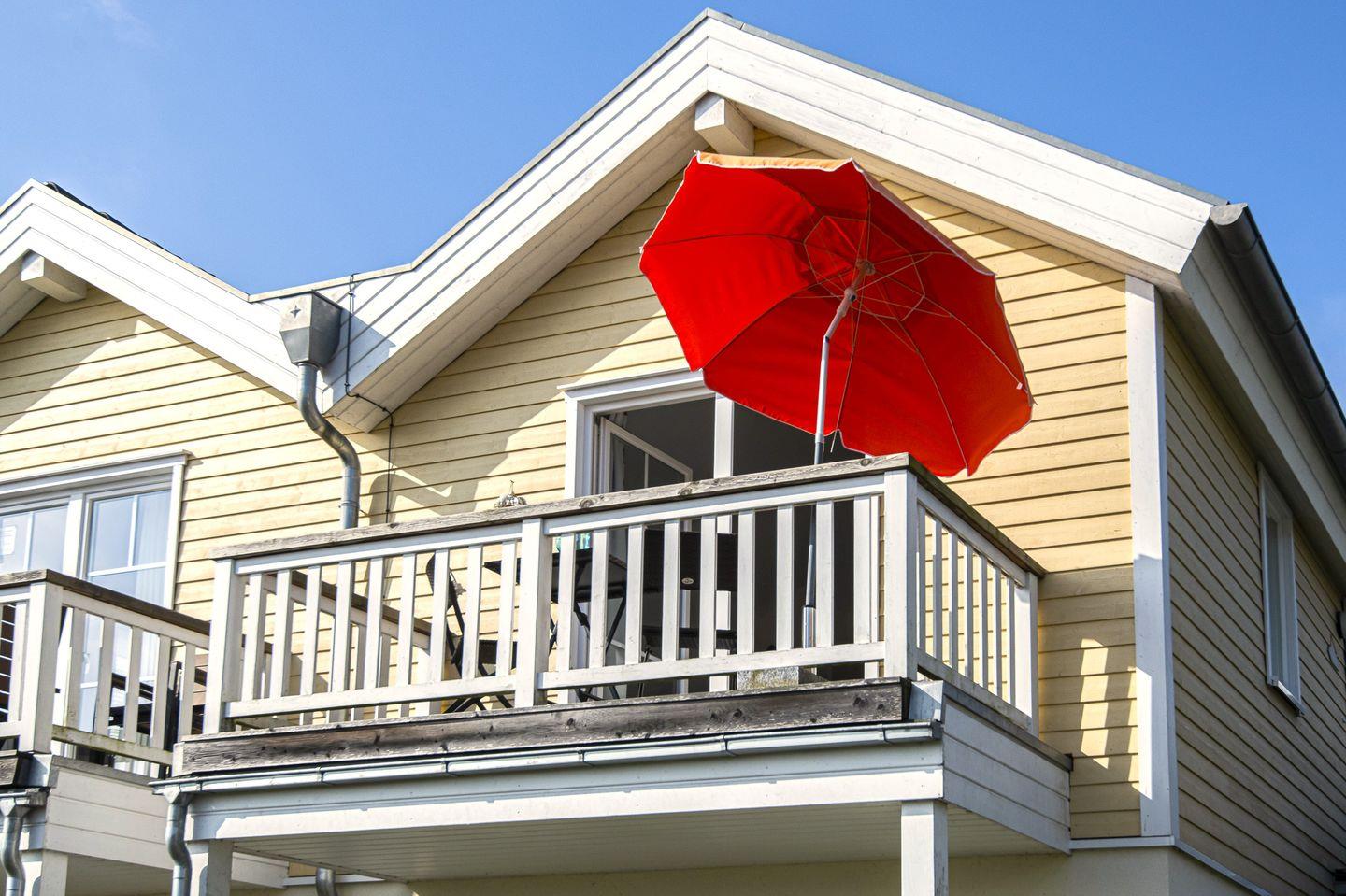 Die Wohnung hat einen eigenen Zugang über eine Außentreppe in einem Haus mit drei Wohnparteien.