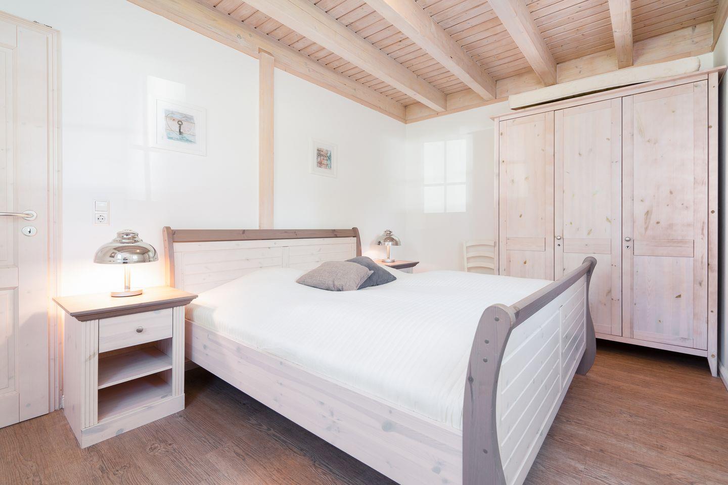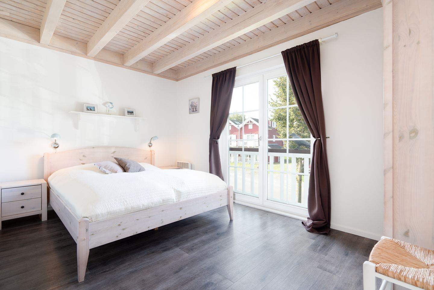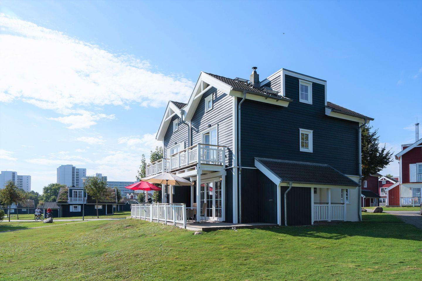 Hier empfängt Sie ein traumhafter Meerblick in einer maritimen Kulisse im skandinavischen Stil. In dieser Doppelhaushälfte befinden sich im Erdgeschoss der Küchen- und Essbereich mit Kamin, ein Schlafraum mit Doppelbett (2x 90 x 200 cm), sowie die Sauna mit Dusche und WC. Der Komfort einer eigenen Sauna wird sehr von unseren Wintergästen geschätzt. Die offene Küche ist mit Spülmaschine, Backofen und Herd voll ausgestattet. Vom Essbereich haben Sie Zugang zur Terrasse mit wunderbaren Blick auf die Ostsee. In der 1.Etage befindet sich ein zweiter Schlafraum mit Doppelbett (2x 80 x 200 cm) und der Wohnbereich mit Balkon und Ostseeblick, und das Bad mit WC, Whirlwanne und Waschmaschine. Zur offenen Galerie mit einem Sofa mit Schlaffunktion (140 x 200 cm) führt vom Wohnbereich in der 1.Etage aus eine steile Raumspartreppe. Die Beheizung erfolgt über Elektroheizungen und den Kamin. Unsere 80 qm großen Doppelhaushälften vom Typ "Klipper" bieten somit Wohlfühlkomfort über 3 Etagen. Das Ferienhaus ist für bis zu 6 Personen geeignet. Die farbenfrohen Häuser aus dem Land von Pipi Langstrumpf verbreiten gute Laune und gehobene Urlaubsstimmung. Lassen Sie sich davon anstecken und haben Sie eine schöne Zeit bei uns in Sierksdorf.