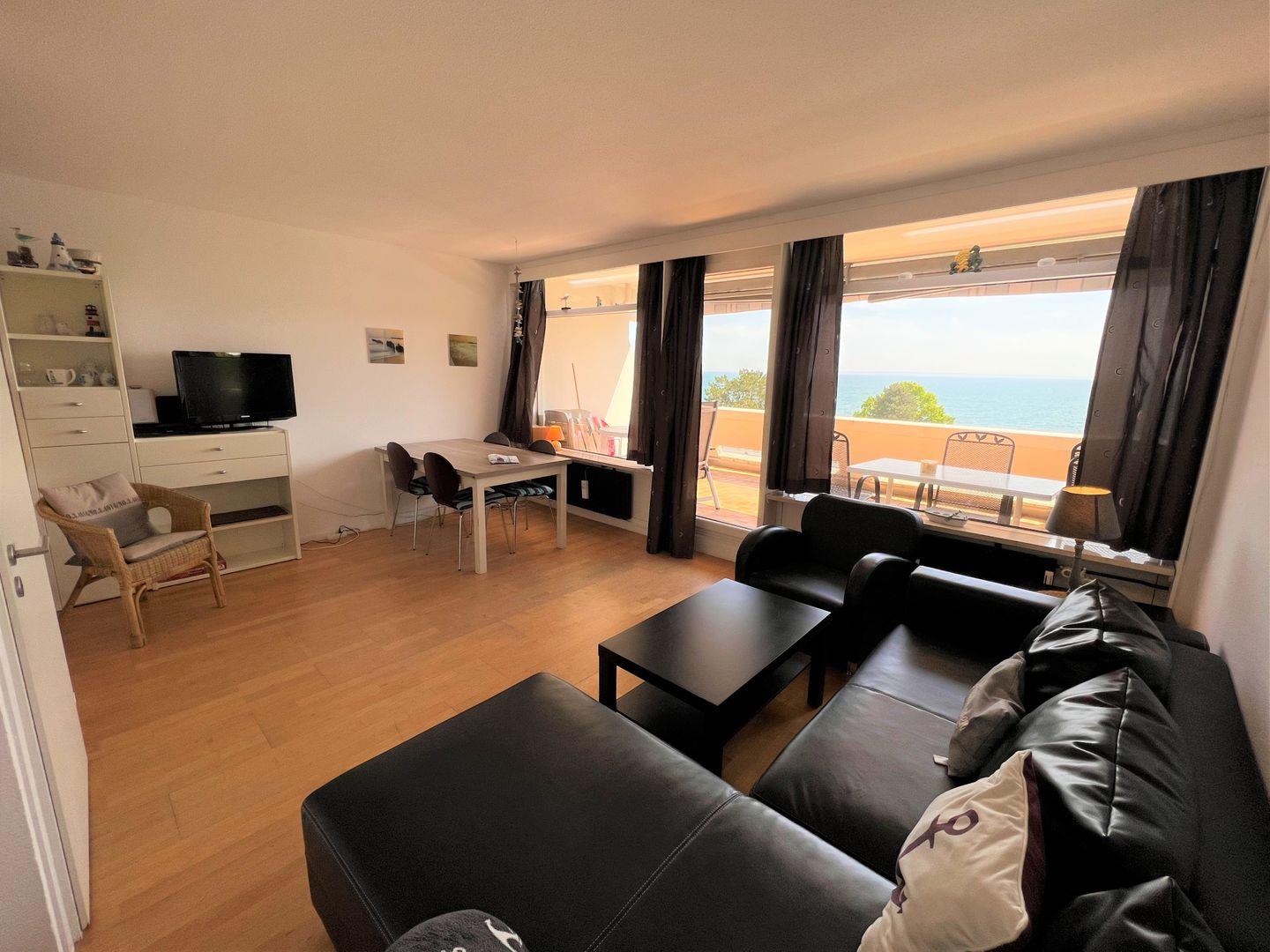 die Wohnung befindet sich in der 2. Etage mit großem Balkon in Süd-Ost-Lage und schönem Ostseeblick über die 1. Reihe hinweg. Im Elternschlafraum befindet sich ein franz. Bett (140 x 200 cm). Im Kinderschlafraum steht ein Etagenbett. Fenster in den Schlafräumen zum Öffnen. Es gibt ein innenliegendes, modernisiertes Duschbad und eine moderne Küchenzeile mit Spülmaschine, Backofen und Durchreiche zum kombinierten Wohn- und Essbereich. Zum Strand und zur Promenade sind es nur wenige Gehminuten. PKW-Stellplatz inklusive.