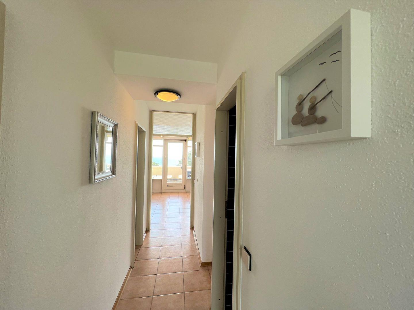 Willkommen in der 3-Raum-Ferienwohnung Nr. 205! Die Wohnung befindet sich in der 2. Etage mit Balkon in Süd-Ost-Lage und Blick auf die Ostsee. Vom kombinierten Wohn- und Essbereich haben Sie Zugang zum Balkon. Die Küche, mit Spülmaschine und Backofen ausgestattet, ist mit einer Durchreiche zum Essbereich offen. Im ersten Schlafraum stehen 2 Einzelbetten, im zweiten steht ein Etagenbett. Das innenliegende Duschbad wurde modernisiert. Zum Strand sind es nur wenige Gehminuten. WLAN ist inklusive.