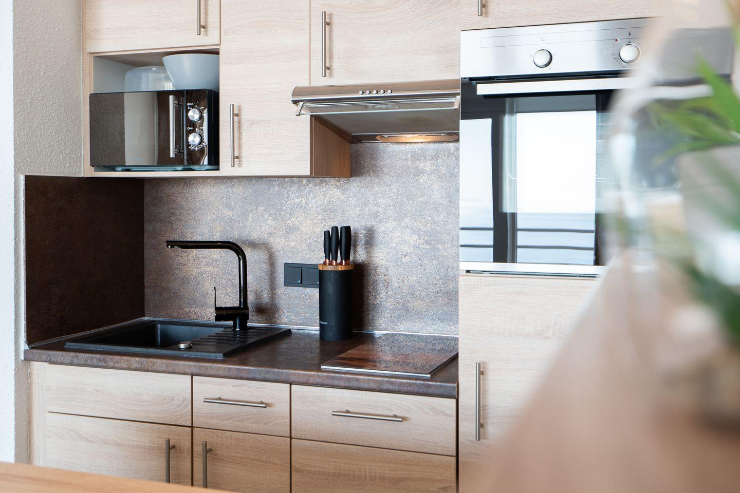 die komfortable und geschmackvoll eingerichtete Wohnung befindet sich in der 9. Etage mit Balkon in Süd-Ost-Lage und traumhaftem Ostseeblick über die Lübecker Bucht. Die moderne und mit Spülmaschine, Backofen und kleinem Kochfeld ausgestattete Küche ist mit einer Kücheninsel zum gemütlichen Wohn- und Essbereich offen. Im Schlafraum steht ein Doppelbett (180 cm x 200 cm). Im Wohnbereich steht zudem eine Schlafcouch (140 cm x 190 cm). Es gibt ein innenliegendes, modernisiertes Duschbad. Zum Strand sind es nur wenige Gehminuten. PKW-Stellplatz im Parkdeck, es führen Treppen von dort aus zur Wohnung. Über einen Seiteneingang gelangt man zum Fahrstuhl für ebenerdiges Be-und Entladen.