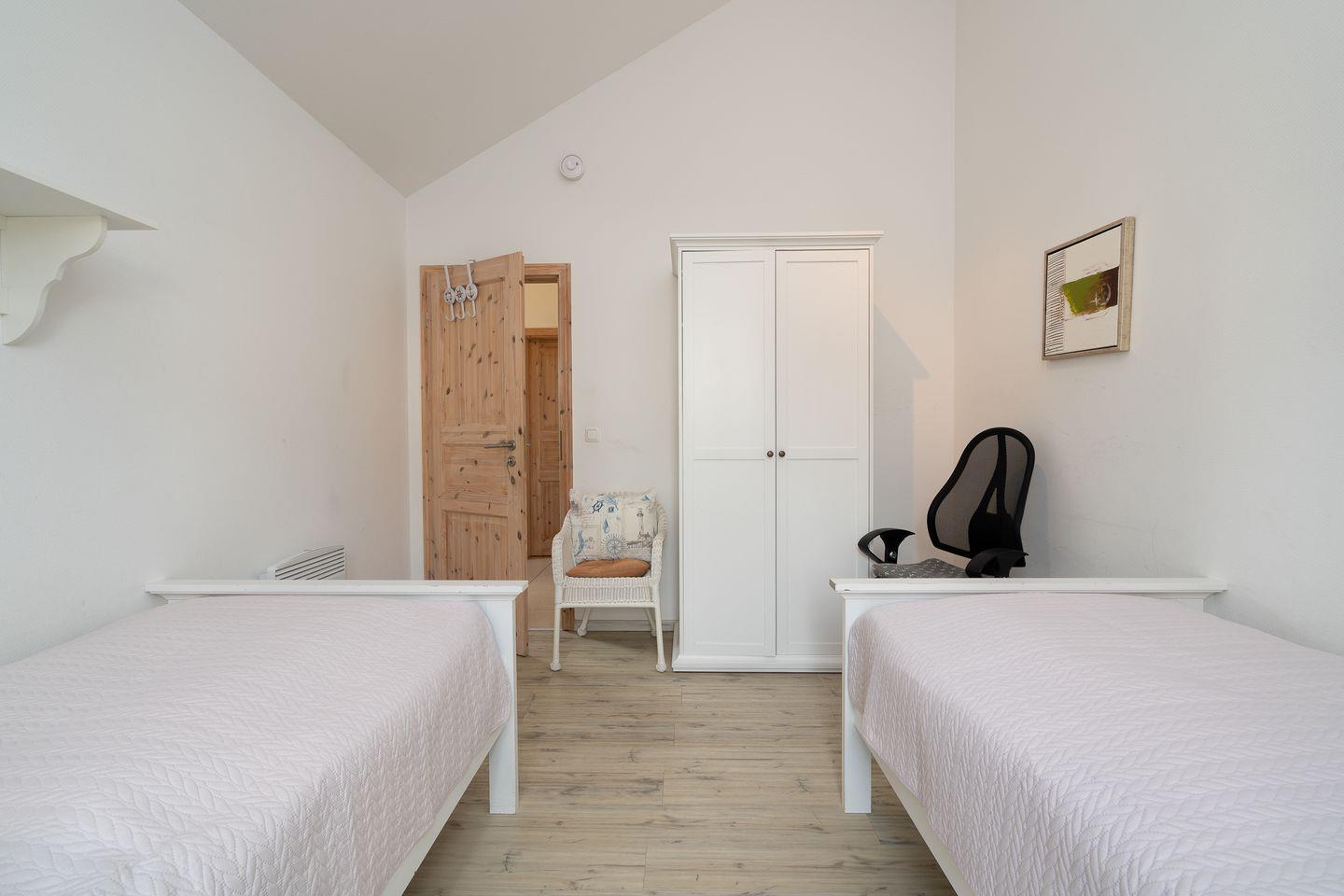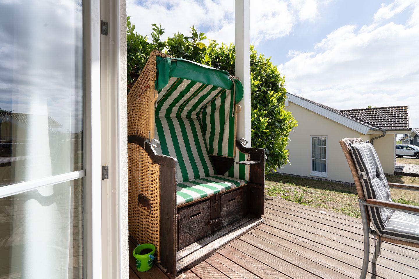 Die gemütliche Bungalowhälfte „Seemuschel“ Nr. 52 liegt in der Strandpark-Anlage und ist für 4 Personen geeignet. Vom geräumigen Wohnraum mit Pelletofen und offener Küche haben Sie Zugang zur Terrasse. Die Küche ist mit Spülmaschine, Backofen und Herd ausgestattet. Im ersten Schlafraum steht ein Doppelbett, im zweiten Schlafraum stehen zwei Einzelbetten. Das Bad verfügt über Badewanne, Sauna und Waschmaschine. WLAN ist inklusive.