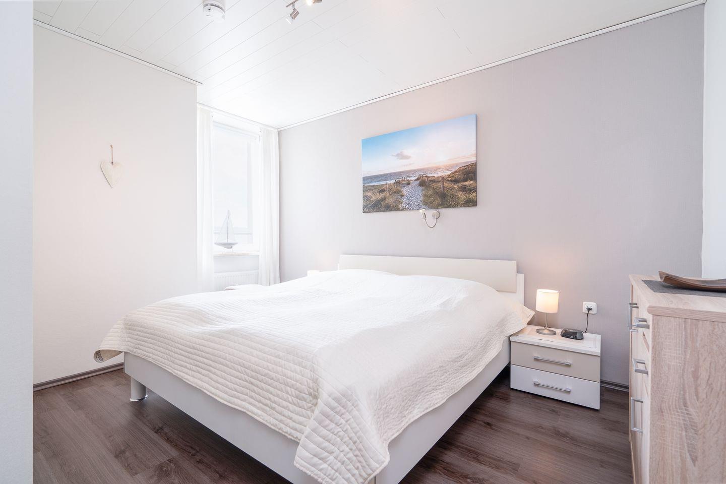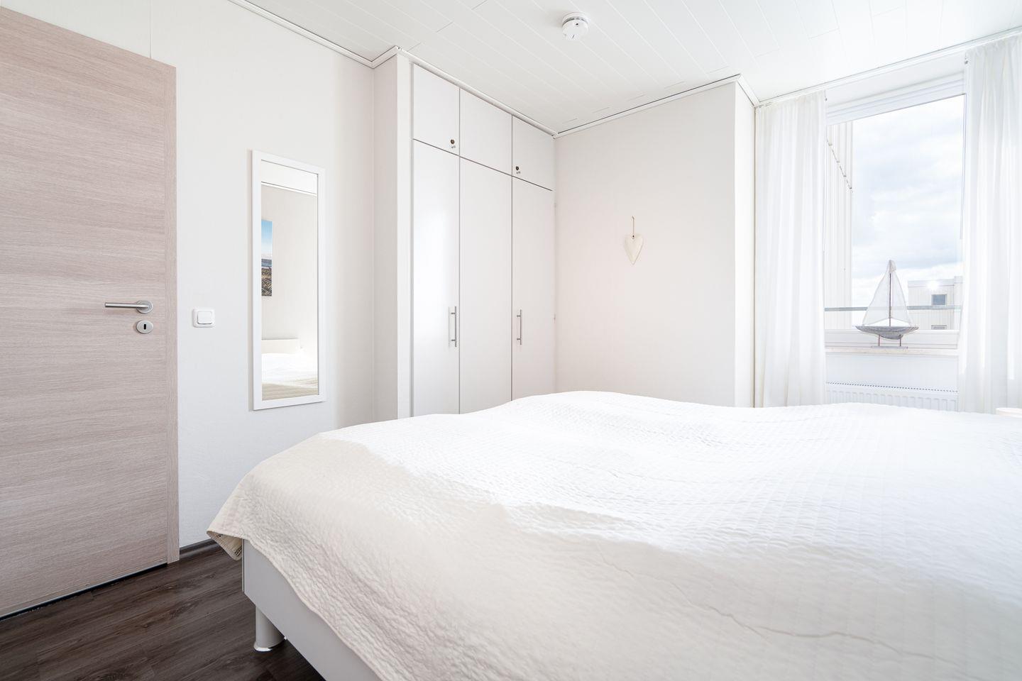 Im Schlafraum mit Fenster und Meerblick befindet sich ein Doppelbett und im Wohnraum zudem eine Schlafcouch. Es gibt ein modernes innenliegendes Duschbad.