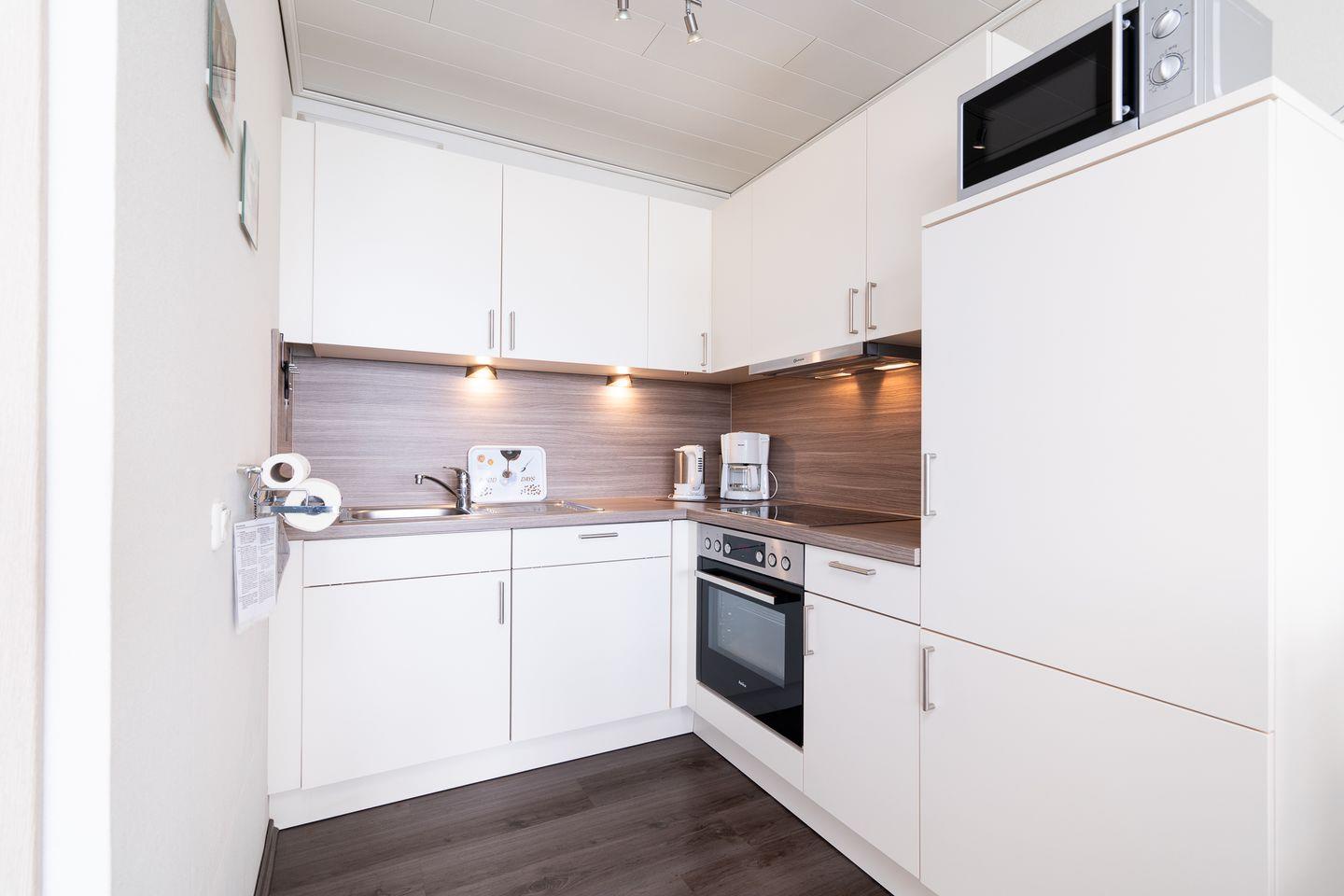 Die schöne, helle 2-Raum-Ferienwohnung Nr. 464 befindet sich in der 11. Etage mit Balkon in Süd-Ost-Lage und Ostseeblick. Vom kombinierten Wohn- und Essbereich mit offener Küche haben Sie Zugang zum Balkon. Die Küche ist mit Geschirrspüler, Backofen und Herd ausgestattet. ein Handmixer, Backformen und Küchenwaage sind ebenfalls vorhande.