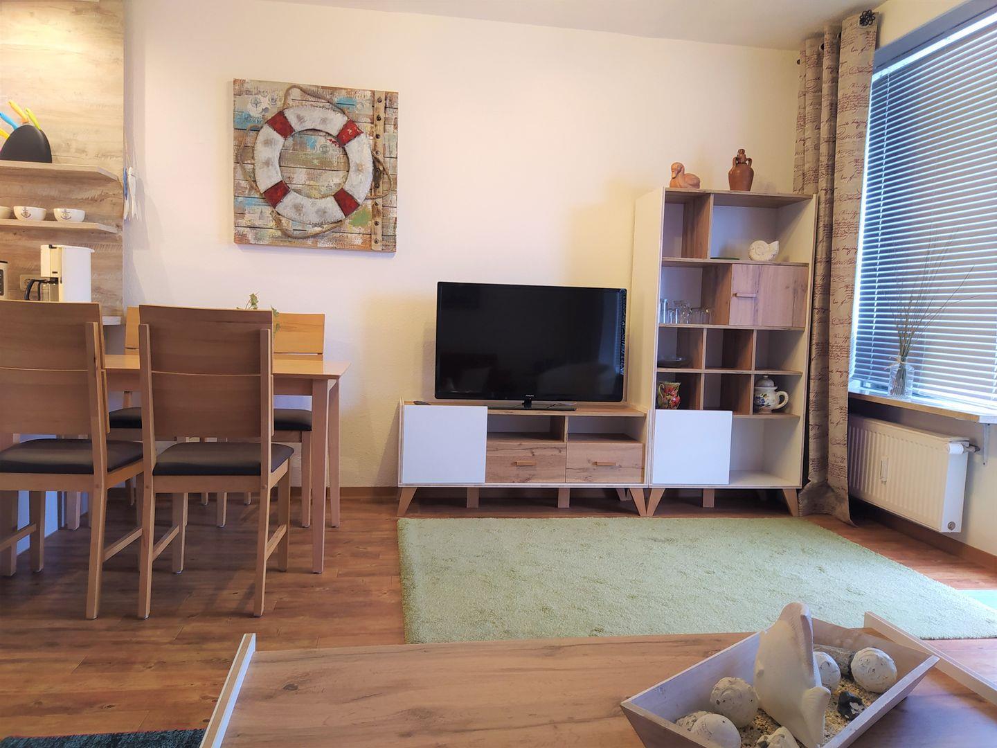 Die liebevoll eingerichtete 1-Raum-Ferienwohnung ist für 2-4 Personen geeignet. Vom kombinierten Wohn- und Essbereich haben Sie Zugang zum Balkon mit Ostseeblick in sonniger Süd-West-Lage. Die Küche ist mit Spülmaschine, Backofen und Herd ausgestattet und hat eine Durchreiche zum Essbereich. Zum Wohnraum hin ist der Schlafraum offen. Dort steht ein Doppelbett (2 x 90 cm x 200 cm), im Wohnbereich befindet sich zudem eine hochwertige Schlafcouch (160 cm x 200 cm). Es gibt ein innenliegendes, modernes Duschbad. Zum Strand sind es nur wenige Fußschritte. PKW-Stellplatz inklusive.