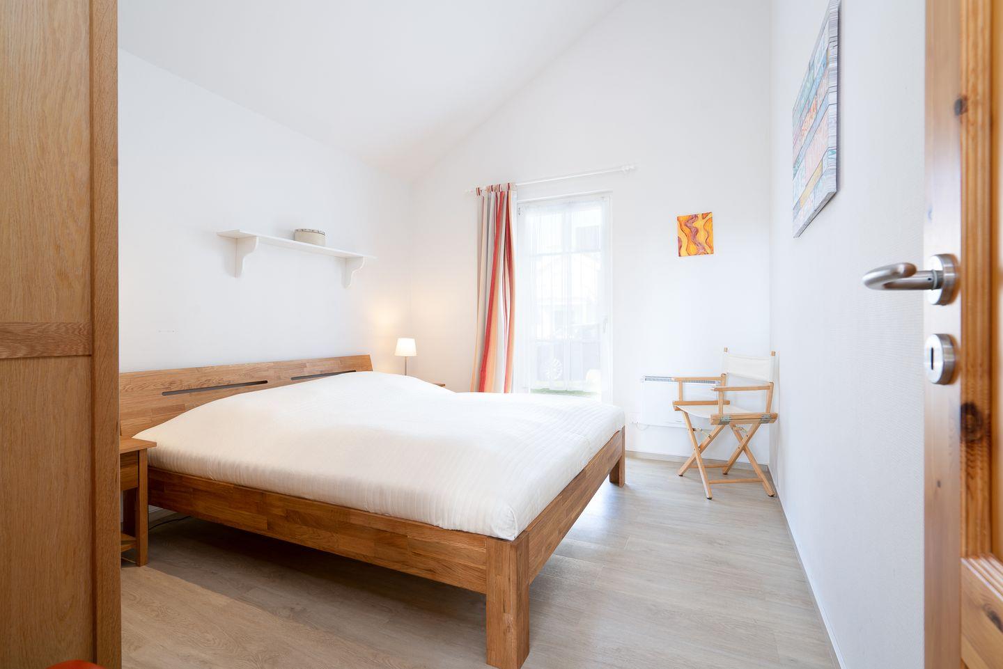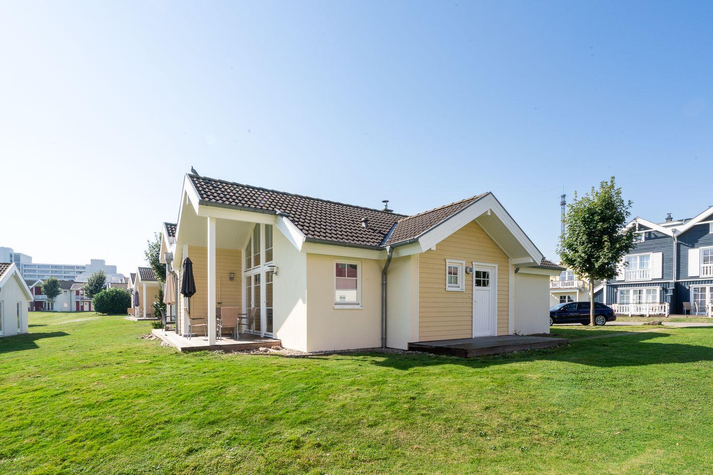 Die komfortable Bungalowhälfte "Waterkant" Nr.60 liegt in der Strandpark-Anlage und ist für 4 Personen geeignet. Vom geräumigen Wohnraum mit Kamin und offener Küche haben Sie Zugang zur Terrasse. Von hier können Sie durch die anderen Häuser hindurch die Ostsee sehen. Die Küche ist mit Spülmaschine, Backofen und Herd ausgestattet. Im ersten Schlafraum steht ein Doppelbett, im zweiten stehen zwei Einzelbetten. Das Bad ist mit Badewanne, Sauna und Waschmaschine ausgestattet. WLAN ist inklusive.
