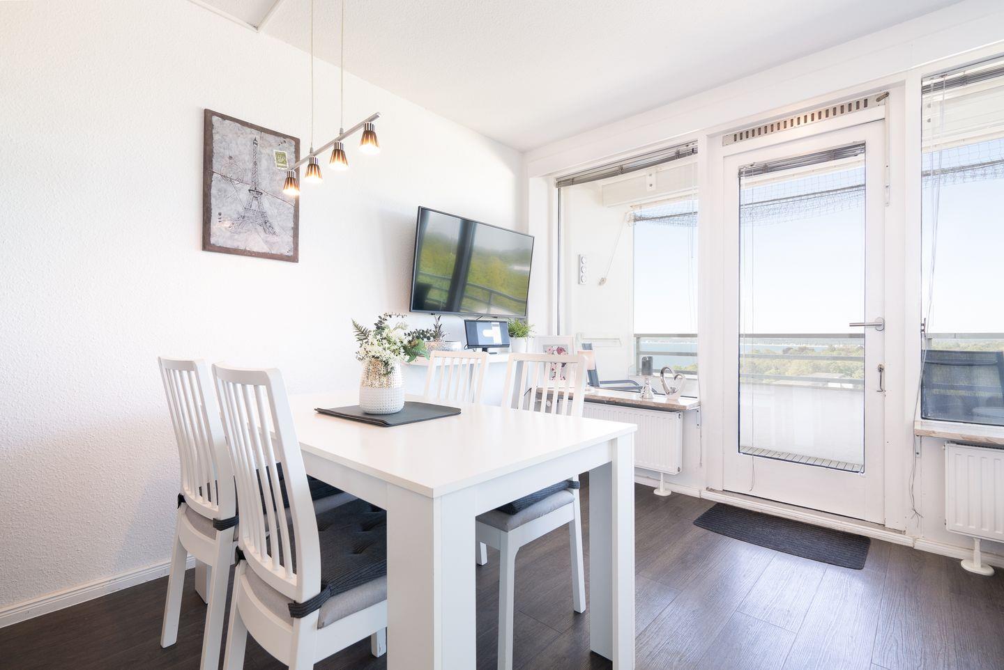 Die 3-Raum-Ferienwohnung befindet sich in der 10. Etage mit Balkon in Süd-West-Lage und schönem Ostseeblick. Im ersten Schlafraum befindet sich ein Doppelbett und im zweiten ein franz. Bett. Im Wohnbereich befindet sich zudem eine Schlafcouch. Die Küche ist zum Wohn- und Essbereich hin offen und ist mit Geschirrspüler, Herd und Backofen ausgestattet. Das moderne Duschbad ist inneliegend. Der Strand ist fußläufig max. 5 min. entfernt.