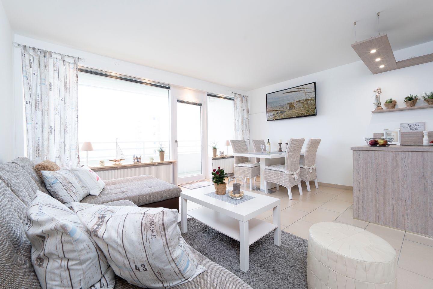 diese freundliche und helle Wohnung befindet sich in der 9. Etage und ist für 2 Personen ausgestattet. Vom Balkon in Süd-Ost-Lage haben Sie einen wunderbaren Blick auf die Ostsee. Die schöne Küche ist in den Wohn- und Essraum integriert und mit Geschirrspüler, Backofen und Herd ausgestattet. Im Schlafraum befindet sich ein franz. Bett (140 cm x 190 cm). Es gibt ein modernes Duschbad mit Oberlicht zum Lüften. Zum Strand sind es nur wenige Gehminuten. PKW-Stellplatz inklusive.