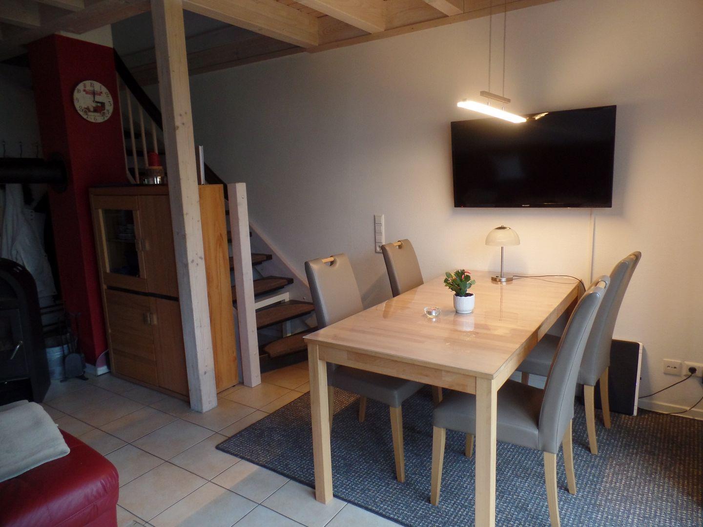Hier finden Sie ein komfortables Endreihenhaus in der Strandpark-Feriendorfanlage in Sierksdorf. Den Wohn- und Essbereich mit Kamin und offener Küche mit Geschirrspülmaschine, Backofen und Waschmaschine finden Sie im Erdgeschoss. Von hier aus haben Sie auch Zugang zur Terrasse. Der Holzkamin sorgt für gemütliche Stunden mit Freunden und Familie. Im EG befindet sich ebenfalls ein Duschbad mit Sauna. Der Komfort einer eigenen Sauna wird sehr von unseren Wintergästen geschätzt.