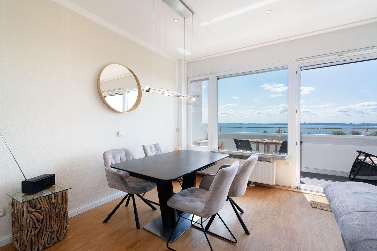 Die helle und gemütliche 2,5-Raum-Ferienwohnung liegt in der 9. Etage mit Balkon in Südlage und wunderbaren Blick auf die Ostsee. Die Küche ist komplett ausgestattet und hat eine Durchreiche zum kombinierten Ess- und Wohnbereich. Im Schlafraum steht ein komfortables Doppelbett. Das moderne Duschbad ist innenliegend und mit einer Waschmaschine ausgestattet. Die Nutzung des Schwimmbads in der Anlage ist inklusive.