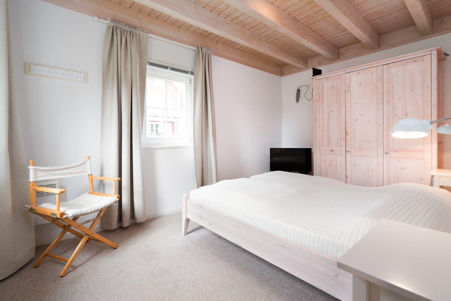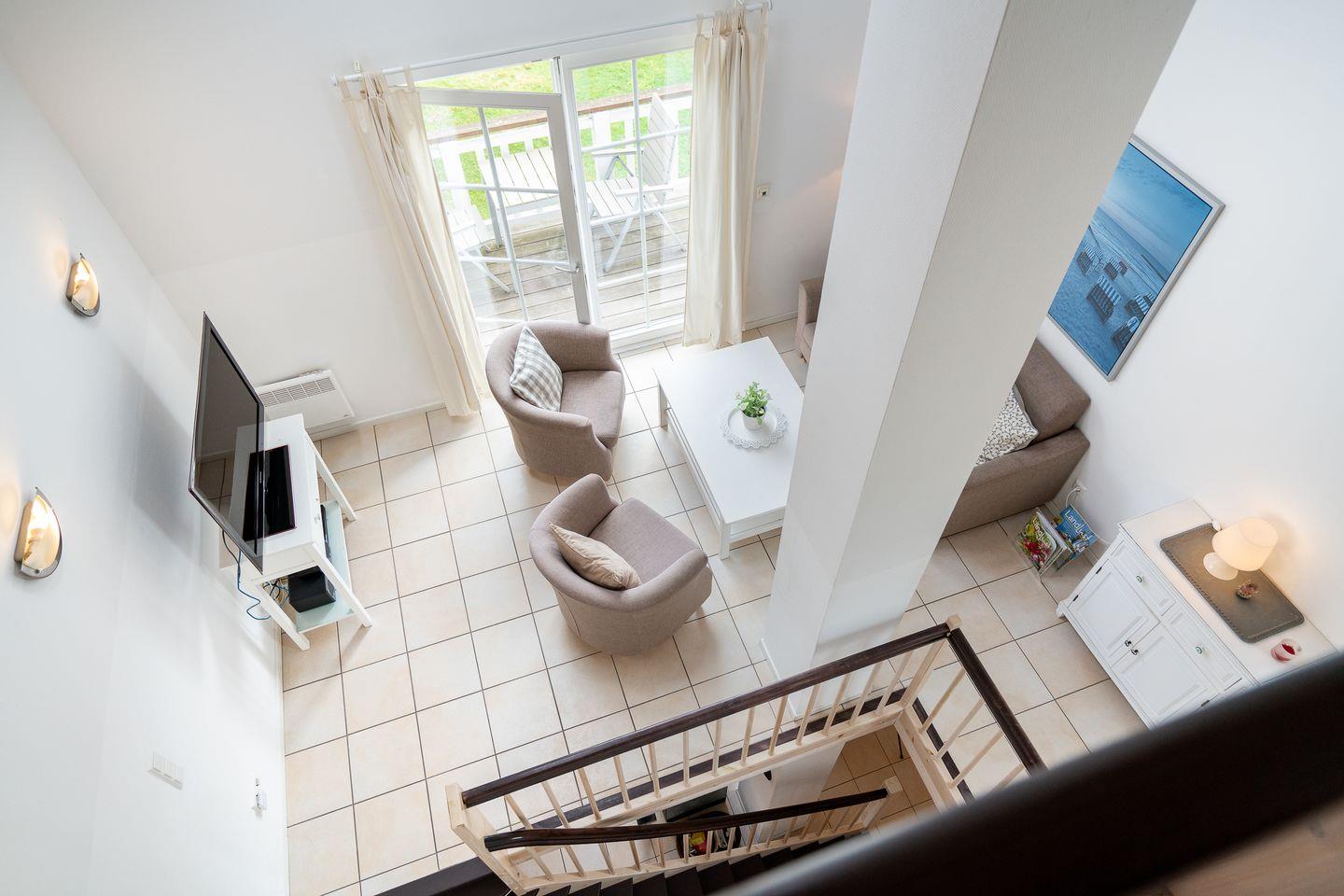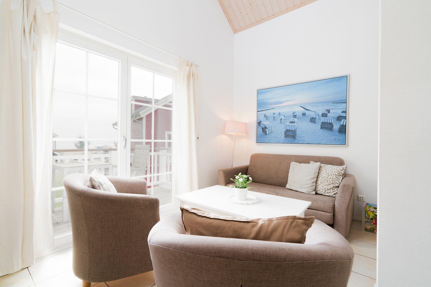 Die große Doppelhaushälfte "Strandgut" Nr. 75 bietet viel Platz und Komfort über 3 Etagen und Blick auf die Ostsee. Küchen- und Essbereich mit Kamin, ein Schlafraum mit Doppelbett, sowie Sauna mit Dusche und WC befinden sich im Erdgeschoss. In der 1. Etage befindeen sich ein zweiter Schlafraum mit Doppelbett, der Wohnbereich und das Bad mit Whirlwanne und Waschmaschine. Zur offenen Schlafgalerie mit ausklappbaren Einzelbett führt von der 1. Etage aus eine steile Sprossenwand. WLAN ist inklusive.