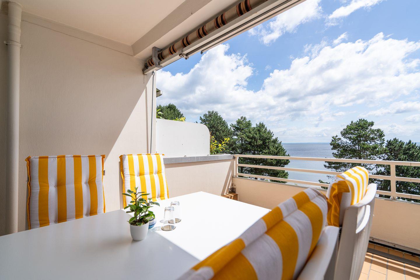 Willkommen in der 2-Raum-Ferienwohnung Nr. 269. In der 1. Reihe gelegen, bietet der große Balkon mit Süd-Ost-Lage einen tollen, direkten Meerblick. Die Wohnung ist für 4 Personen geeignet. Vom kombinierten Wohn- und Essbereich haben Sie Zugang zum Balkon. Die Küche, mit Spülmaschine, Herd und Backofen ausgestattet, ist in den Wohn-/Essbereich integriert. Im Schlafraum stehen zwei Einzelbetten (90 x 200 cm), die man nicht zusammenschieben kann. Das Sofa mit Schlaffunktion (125 x 200 cm) bietet zwei weitere Schlafmöglichkeiten. Das modernisierte Duschbad hat ein Fenster. Zum Strand und zur Promenade sind es nur wenige Minuten zu Fuß. Der PKW-Stellplatz ist nur über eine Treppen zu erreichen, aber über einen Seiteneingang geht es zum Fahrstuhl, der ebenerdiges Be-und Entladen ermöglicht.