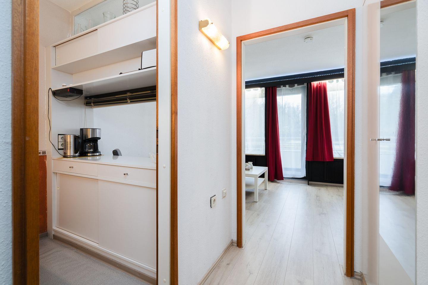 Die 33 qm große Wohnung befindet sich im Hochhaus im Hochparterre mit Balkon in Nord-West-Lage und Blick auf den Hansapark. Im Wohnbereich befindet sich ein bequemes Boxspringbett mit Topper (2x 90 x 200 cm). Die kleine Küchenzeile ist zum Wohnbereich mit einer Durchreiche hin offen und mit Backofen und Herd ausgestattet. Es gibt ein innenliegendes Duschbad. PKW-Stellplatz inklusive. Zum Strand sind es nur wenige Gehminuten.